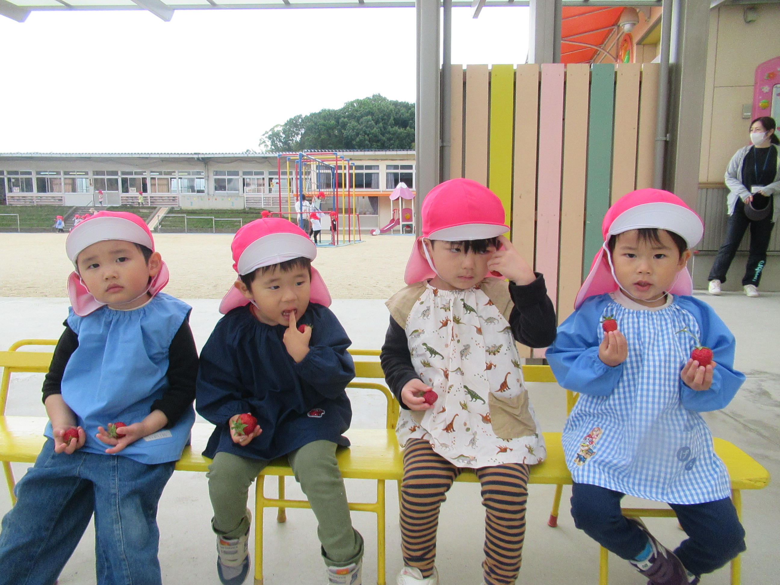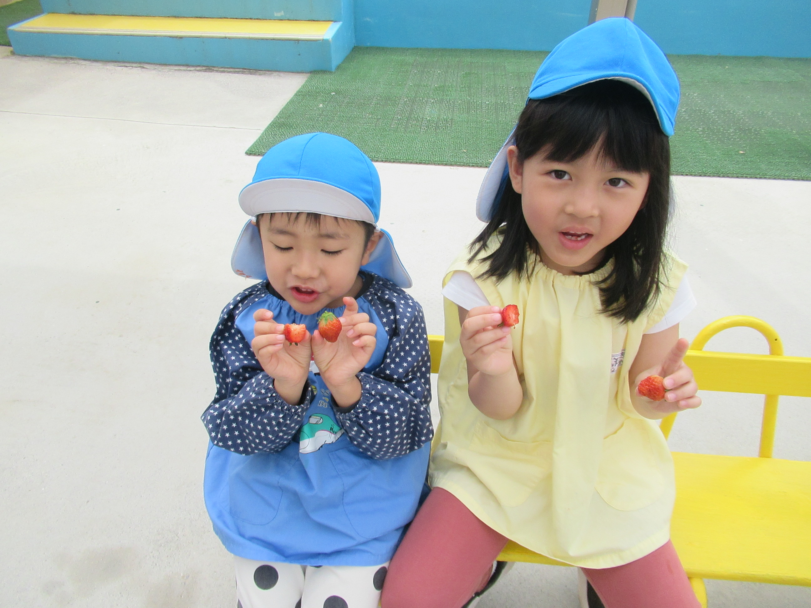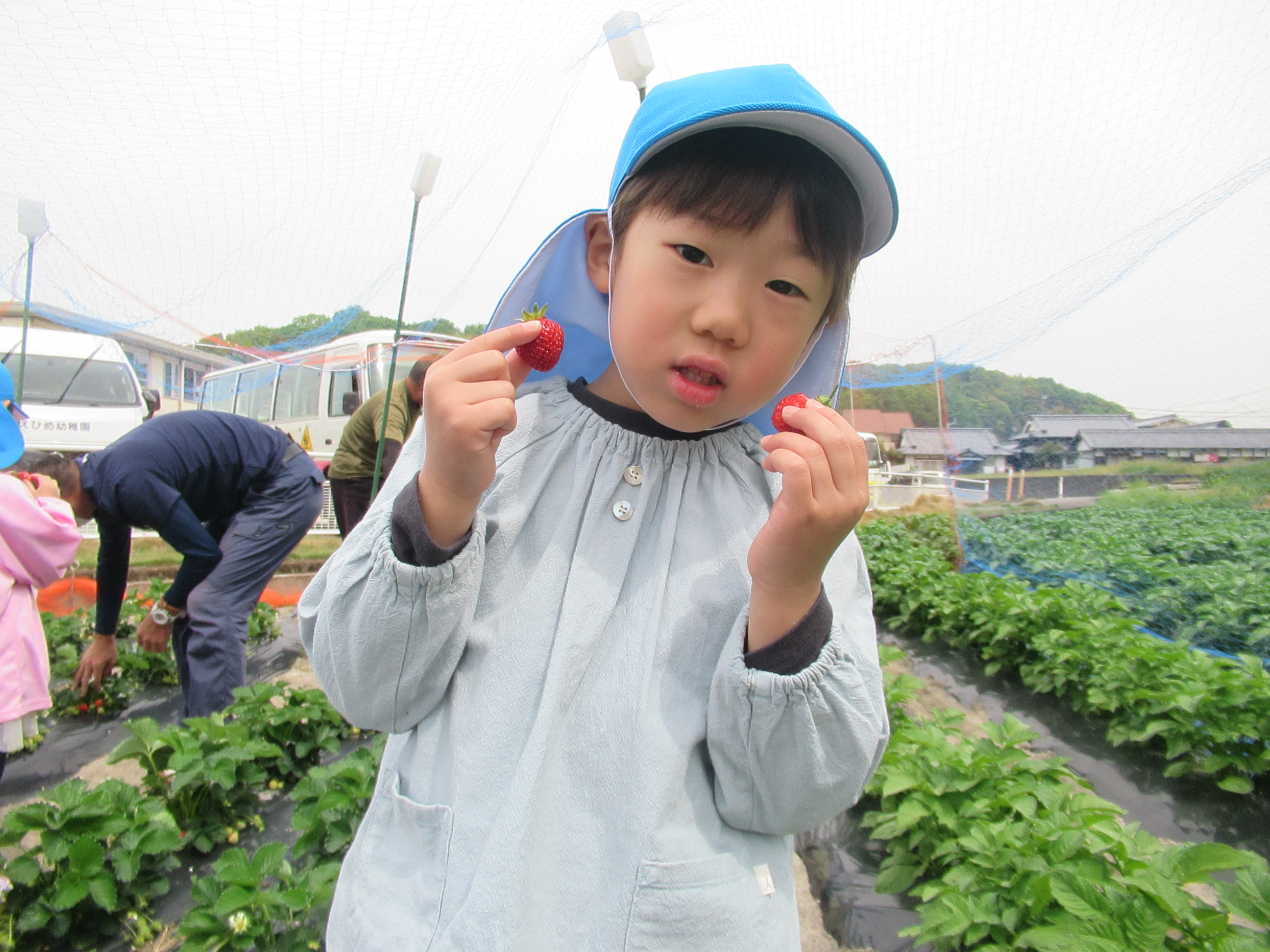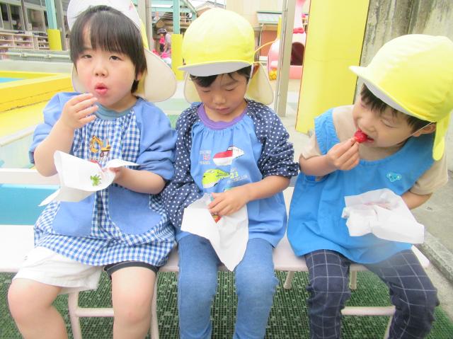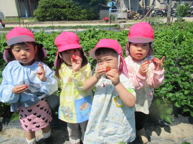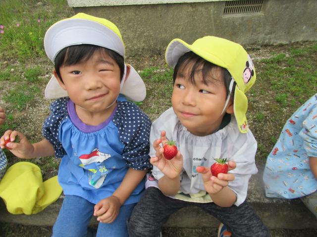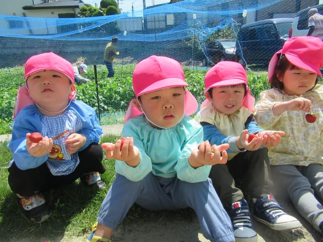イチゴをつんだり、たべたり、楽しかった!