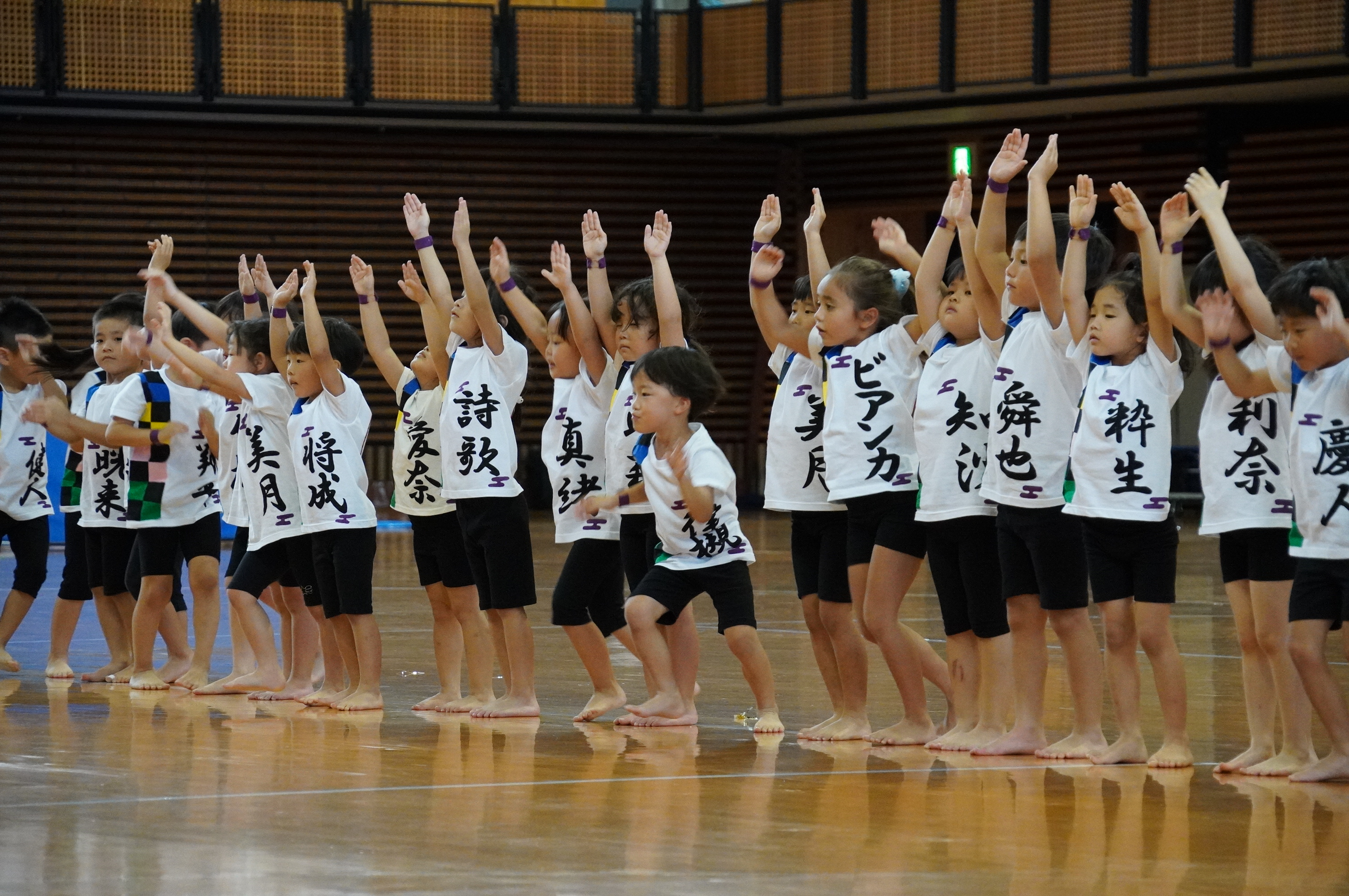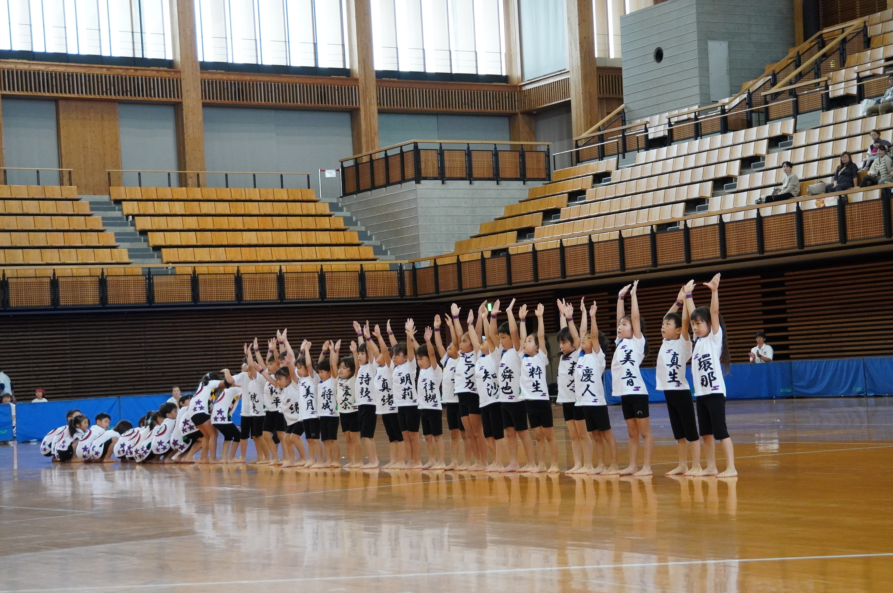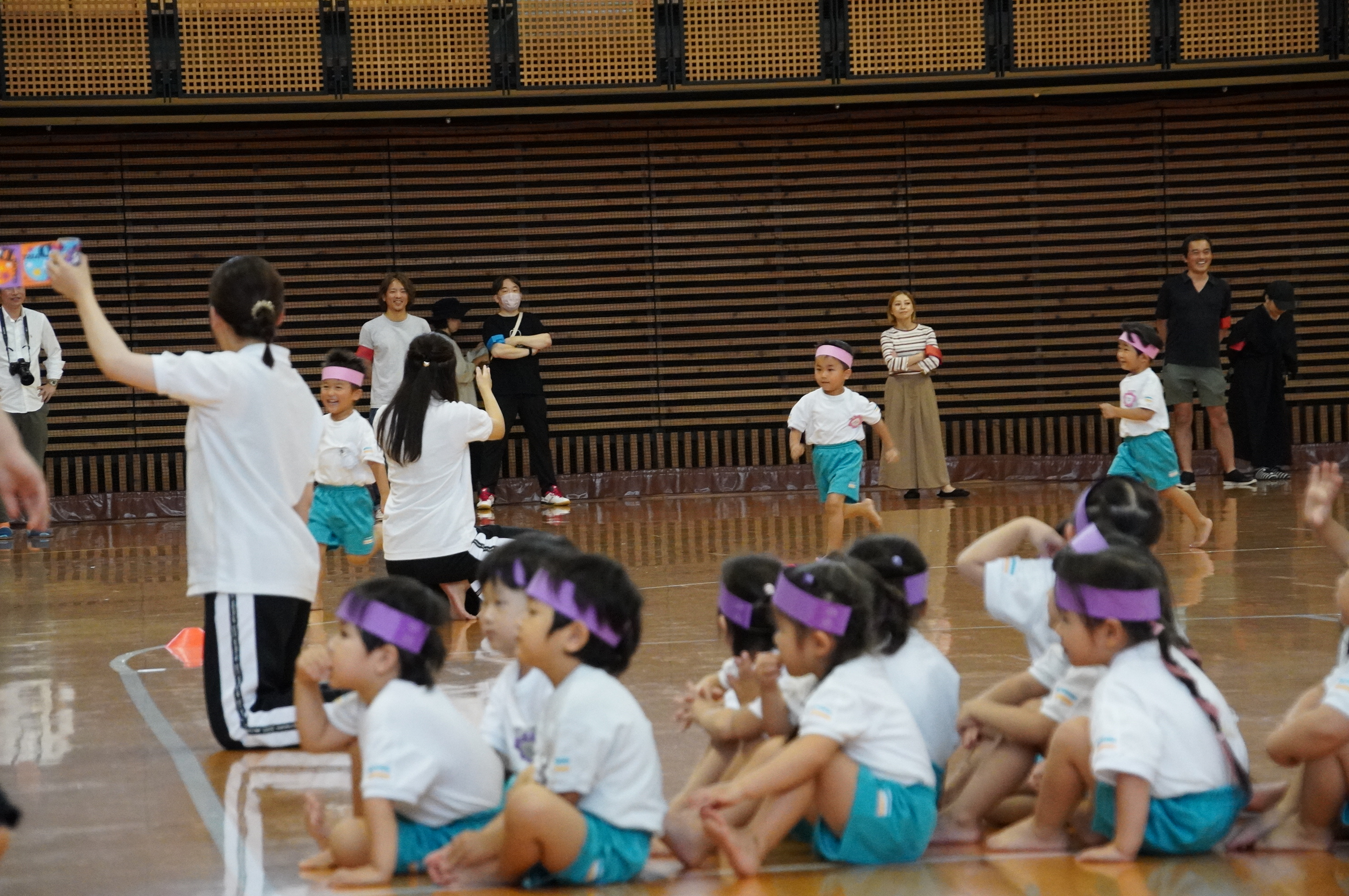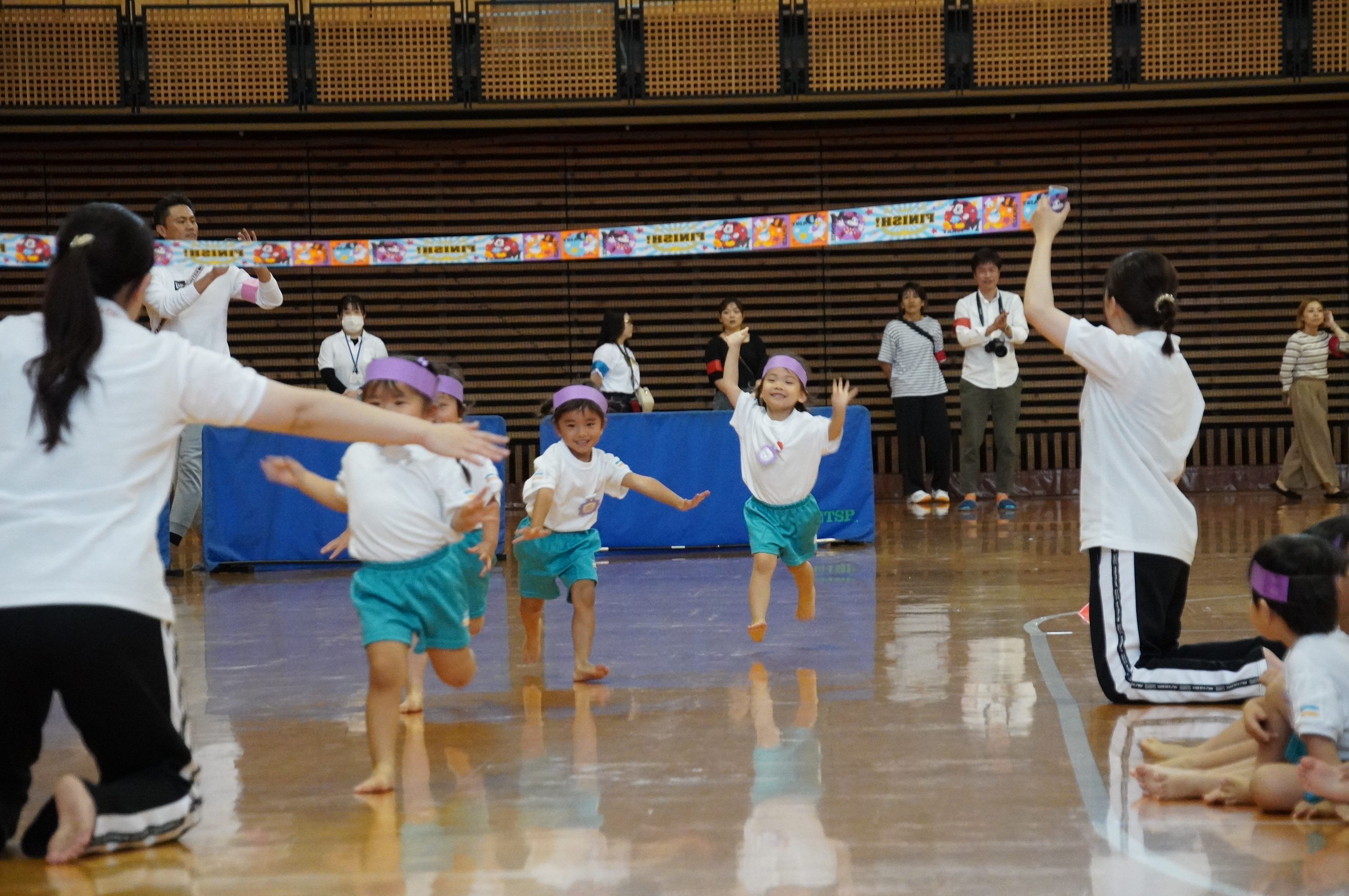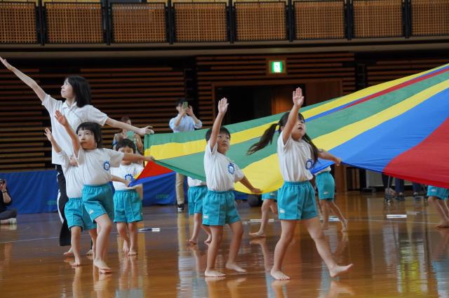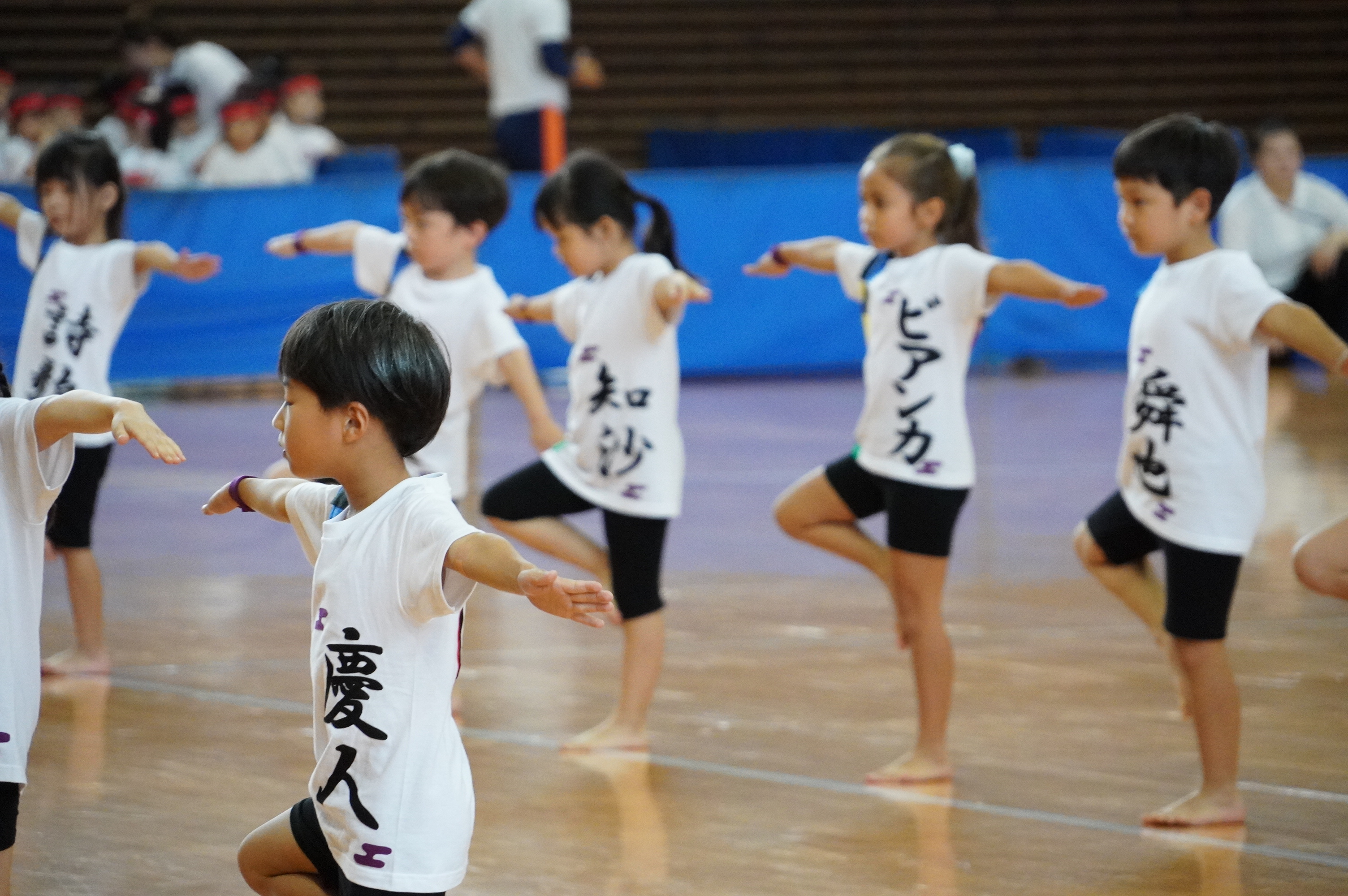 広い武道館でおもいっきり走ったり、踊ったり、みんな頑張りました!