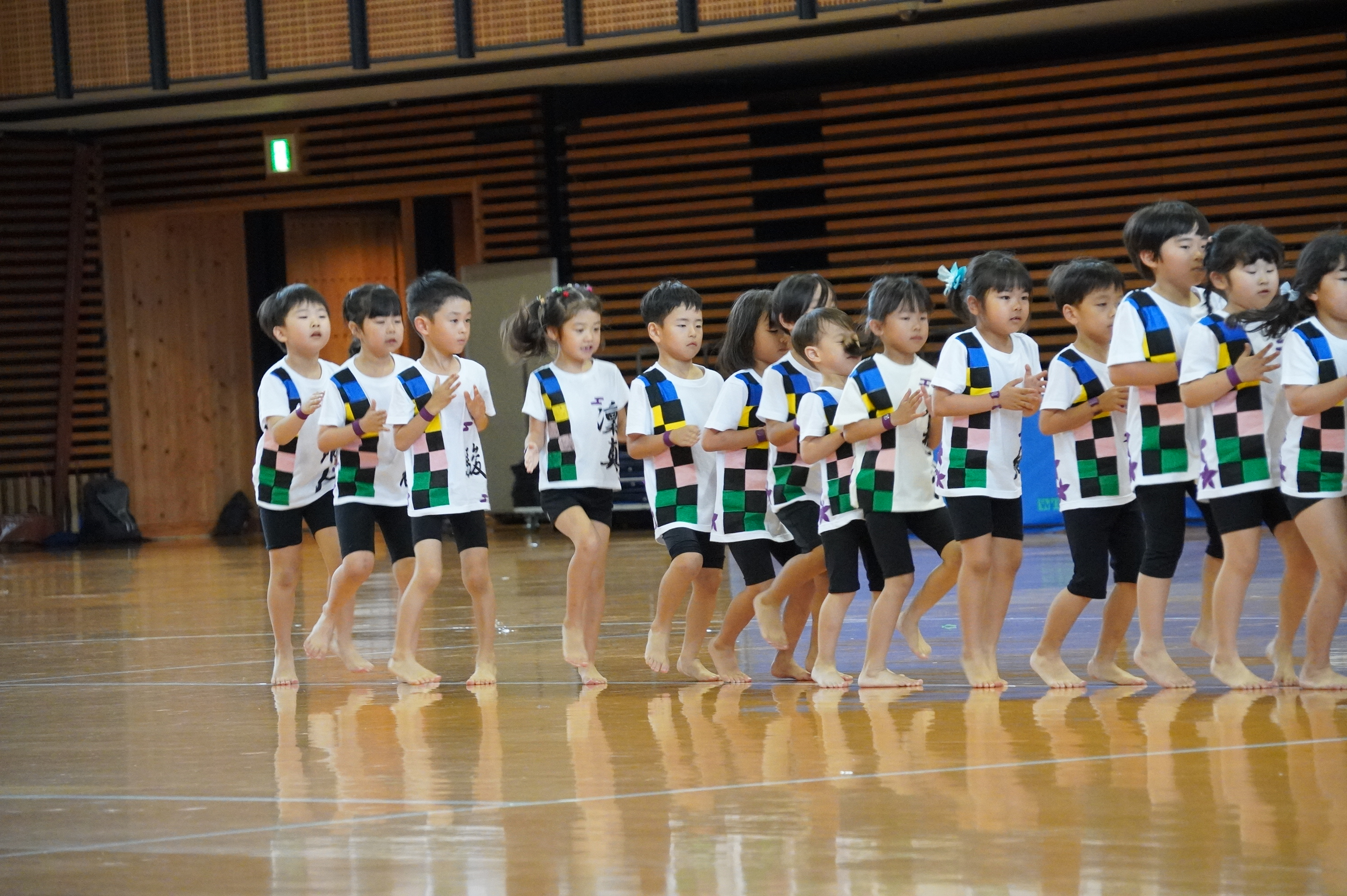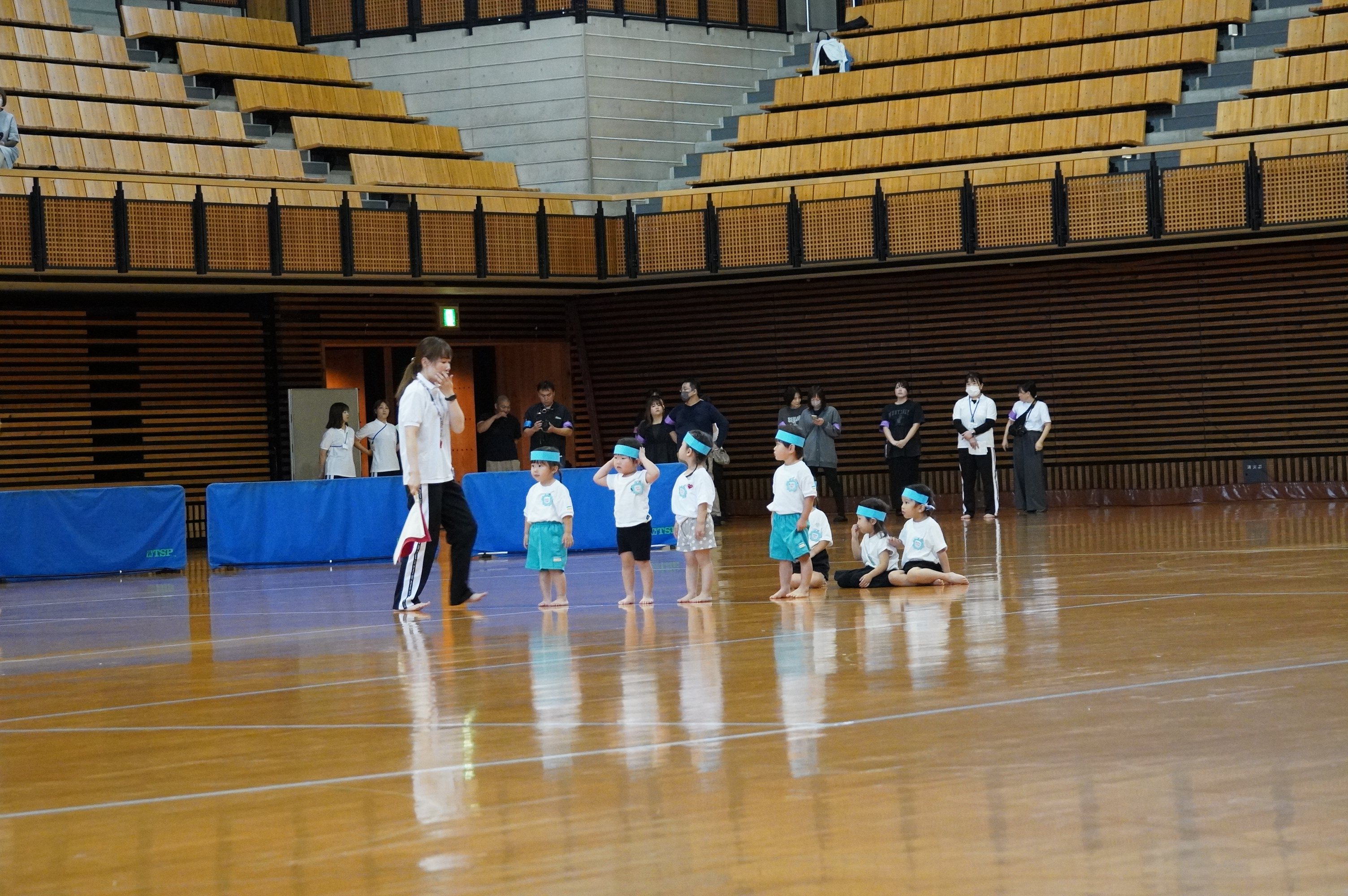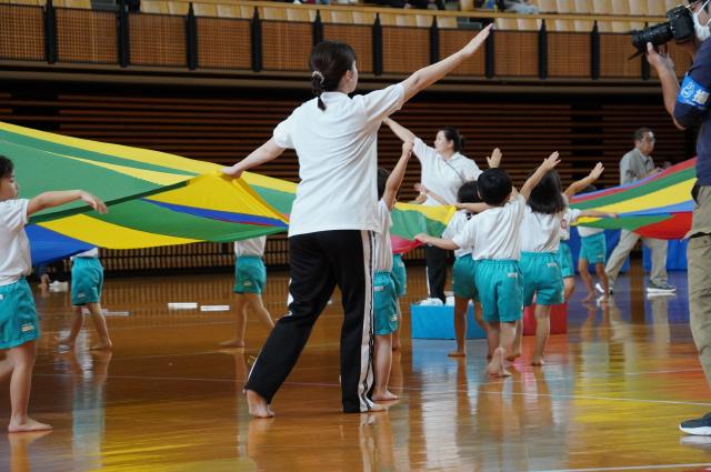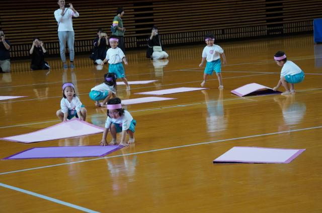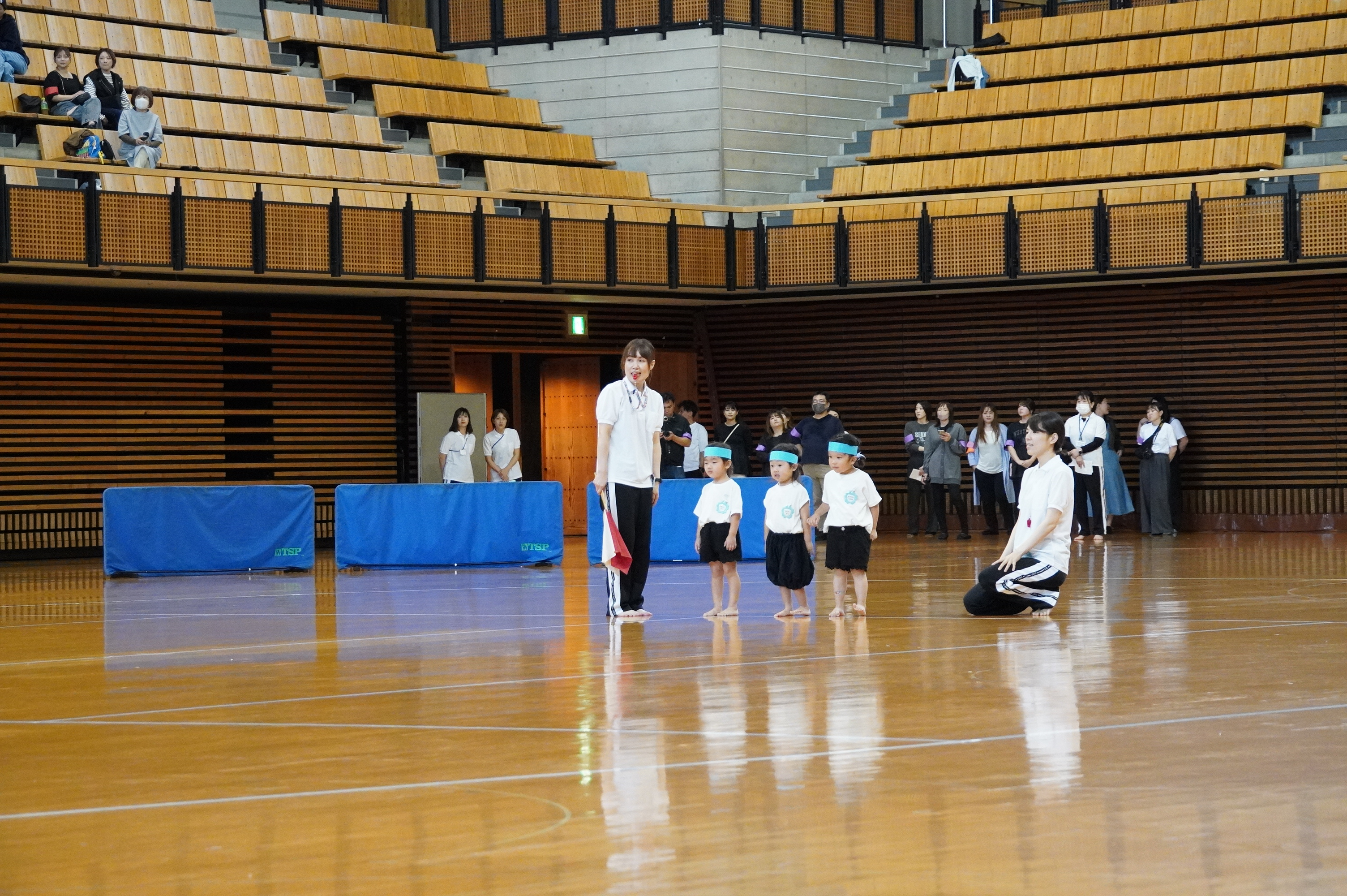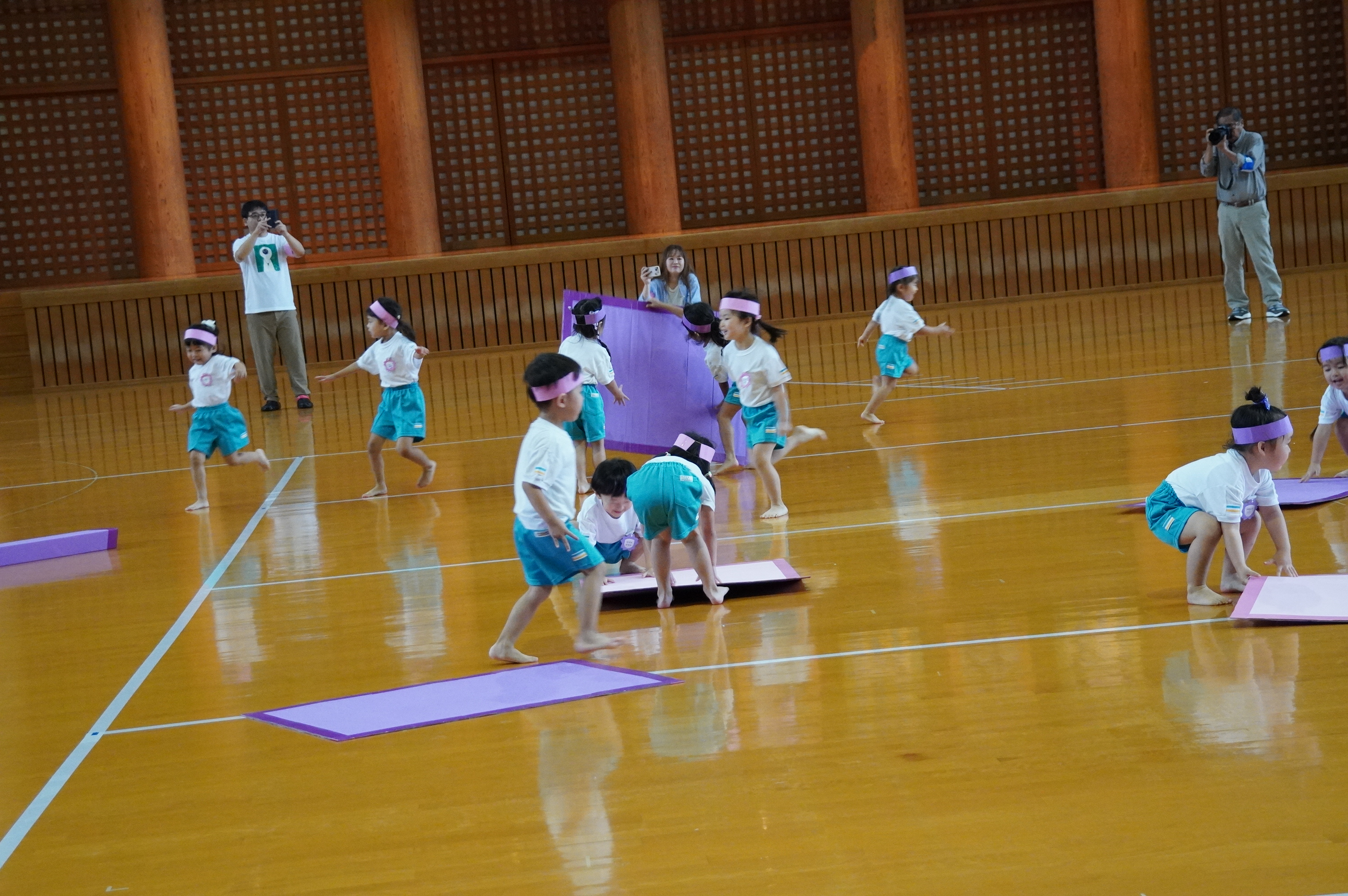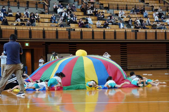 広い武道館でおもいっきり走ったり、踊ったり、みんな頑張りました!