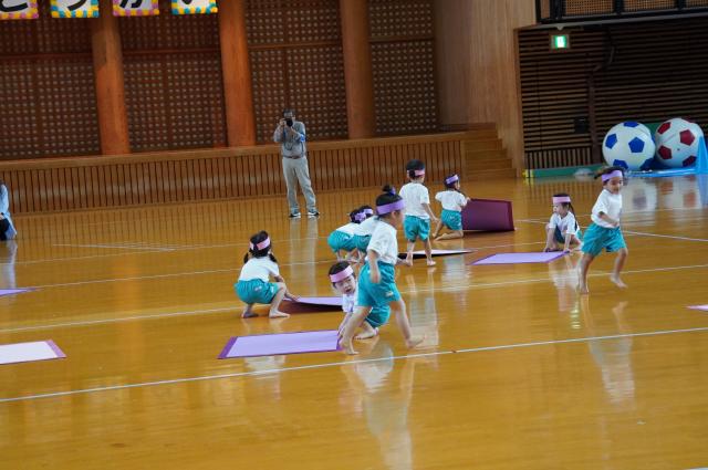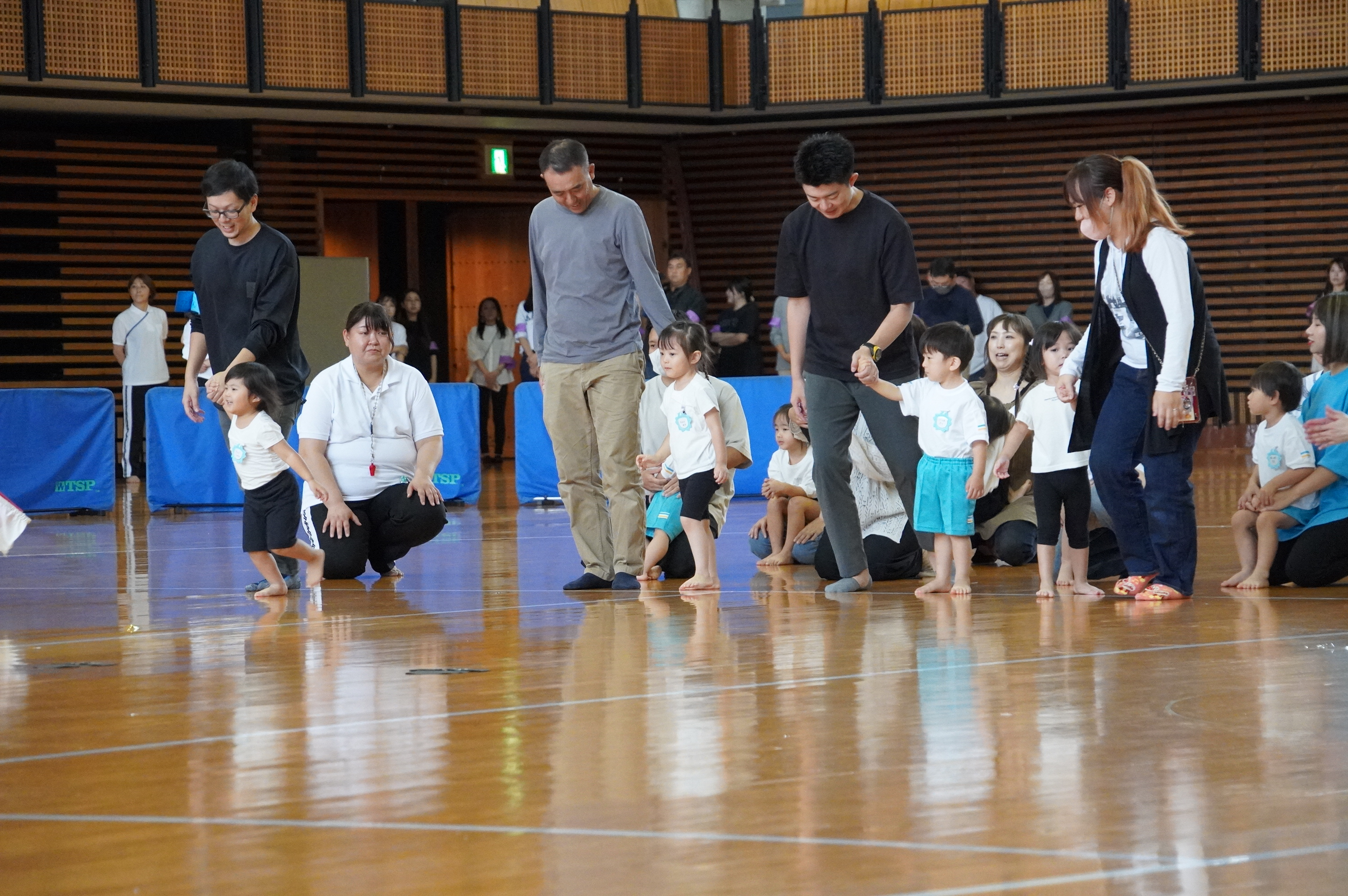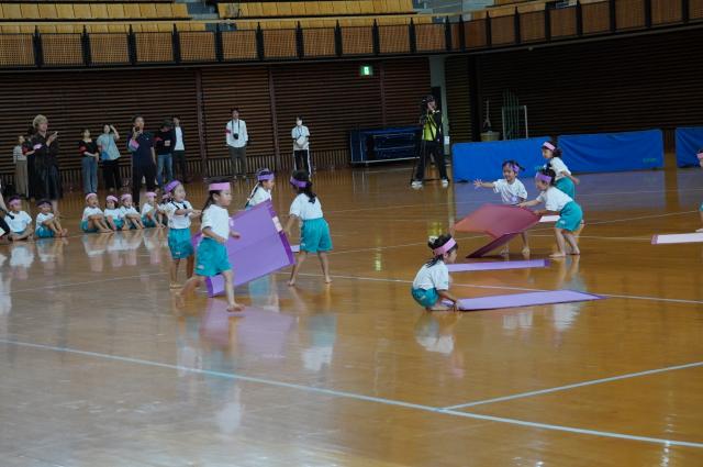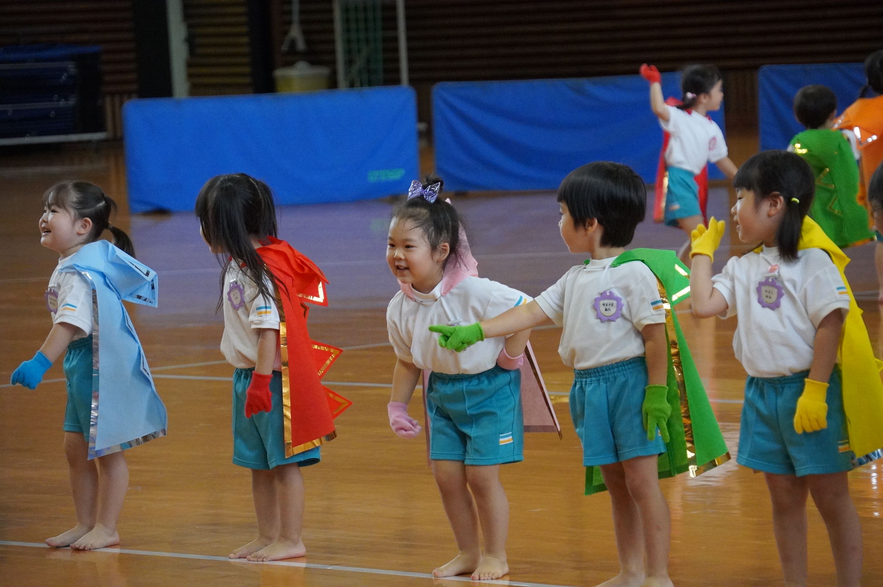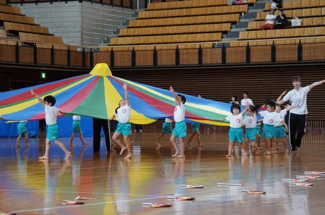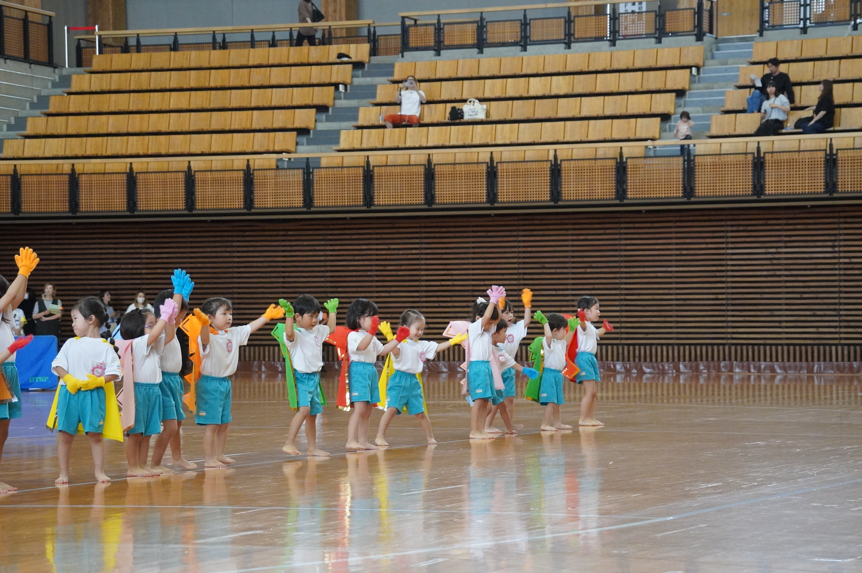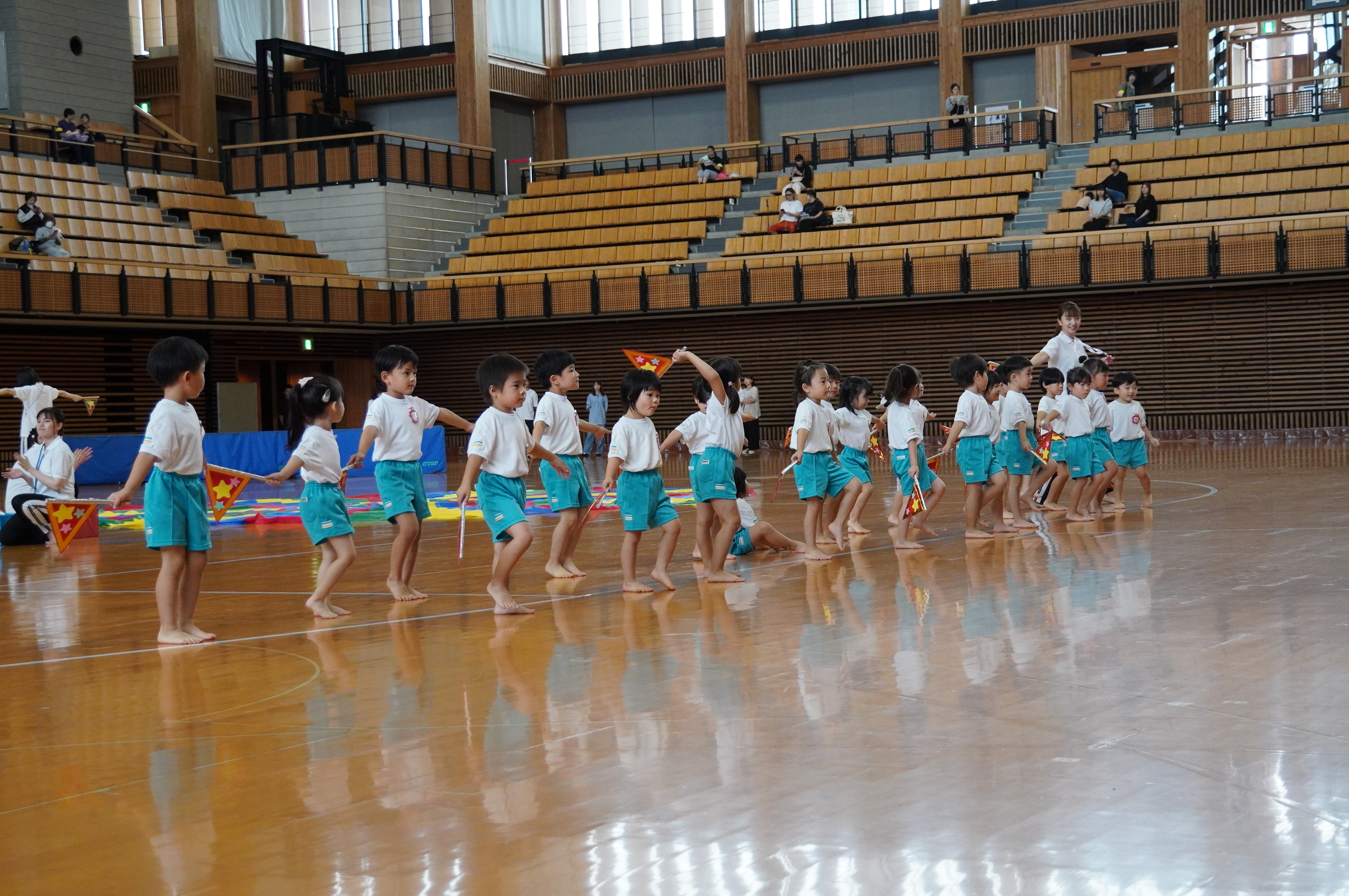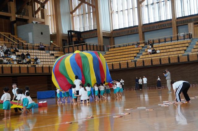 広い武道館でおもいっきり走ったり、踊ったり、みんな頑張りました!