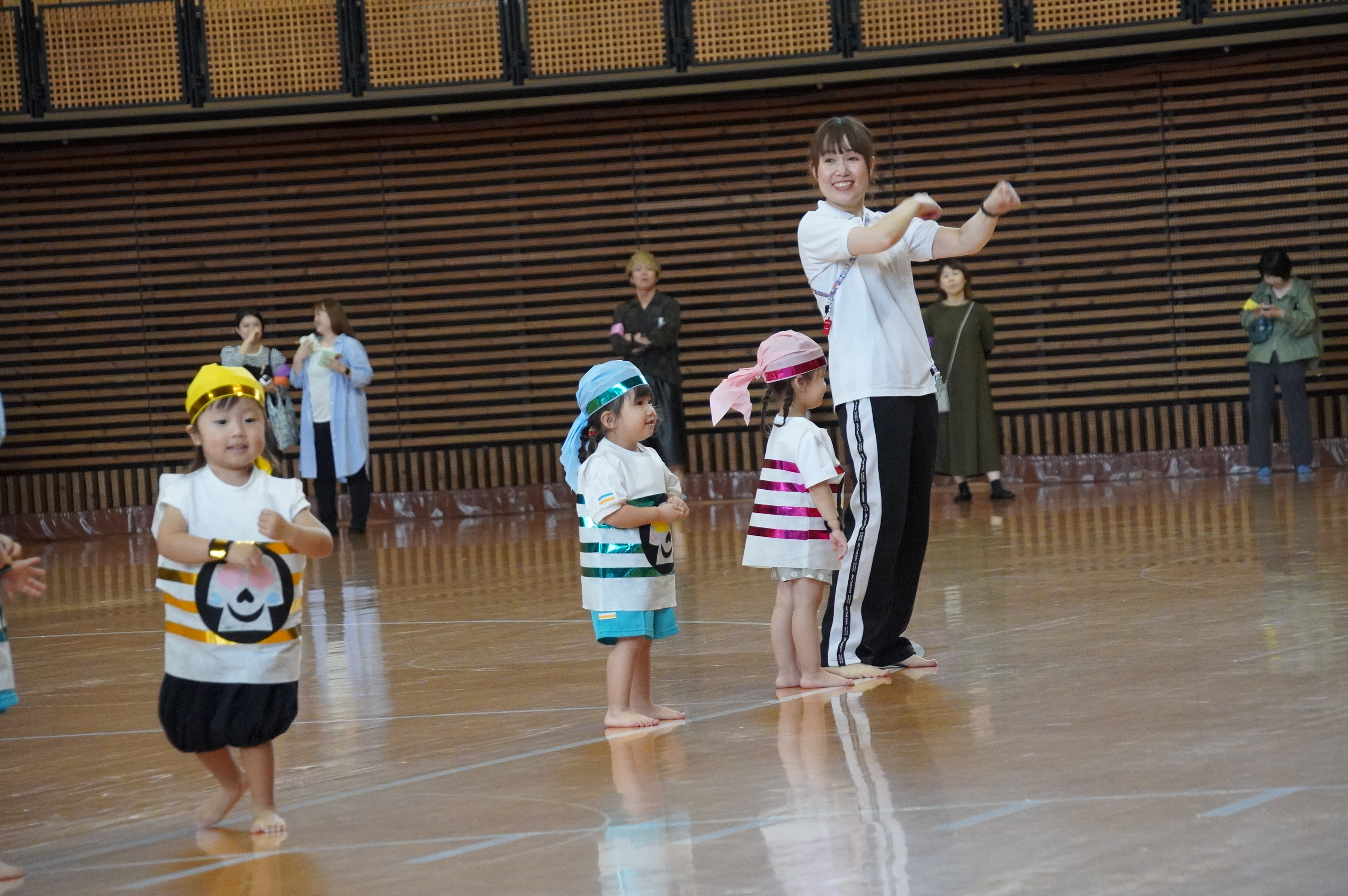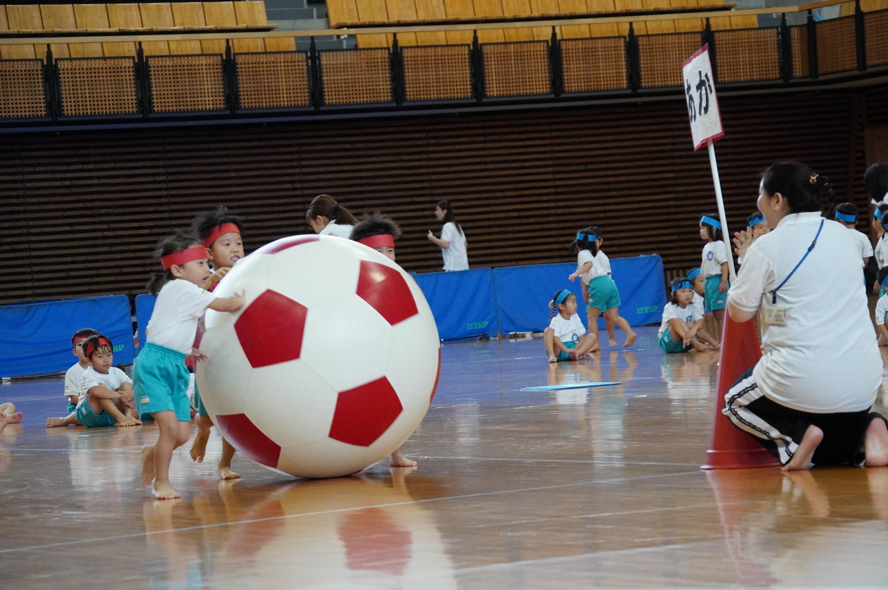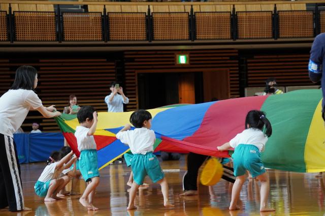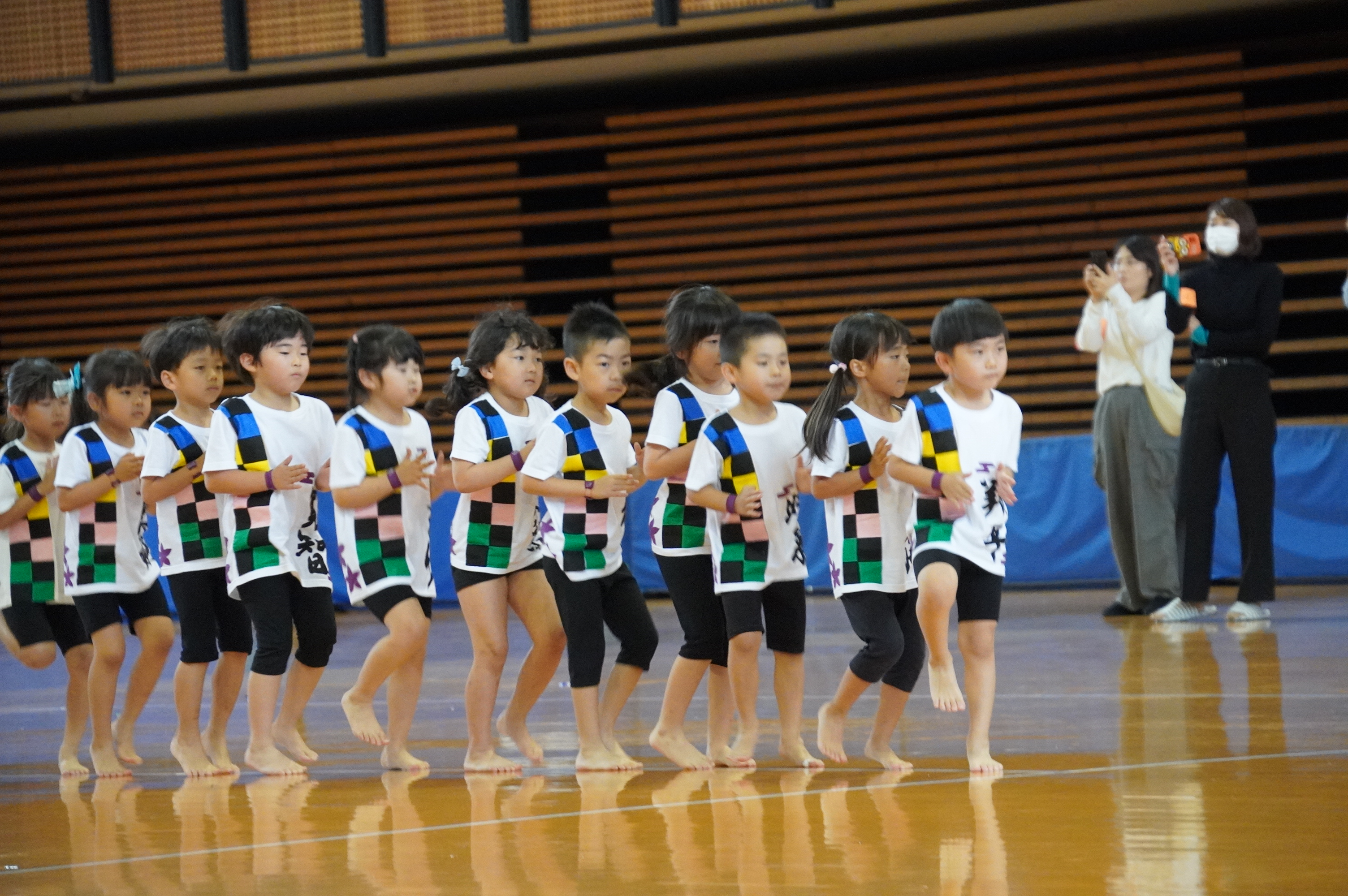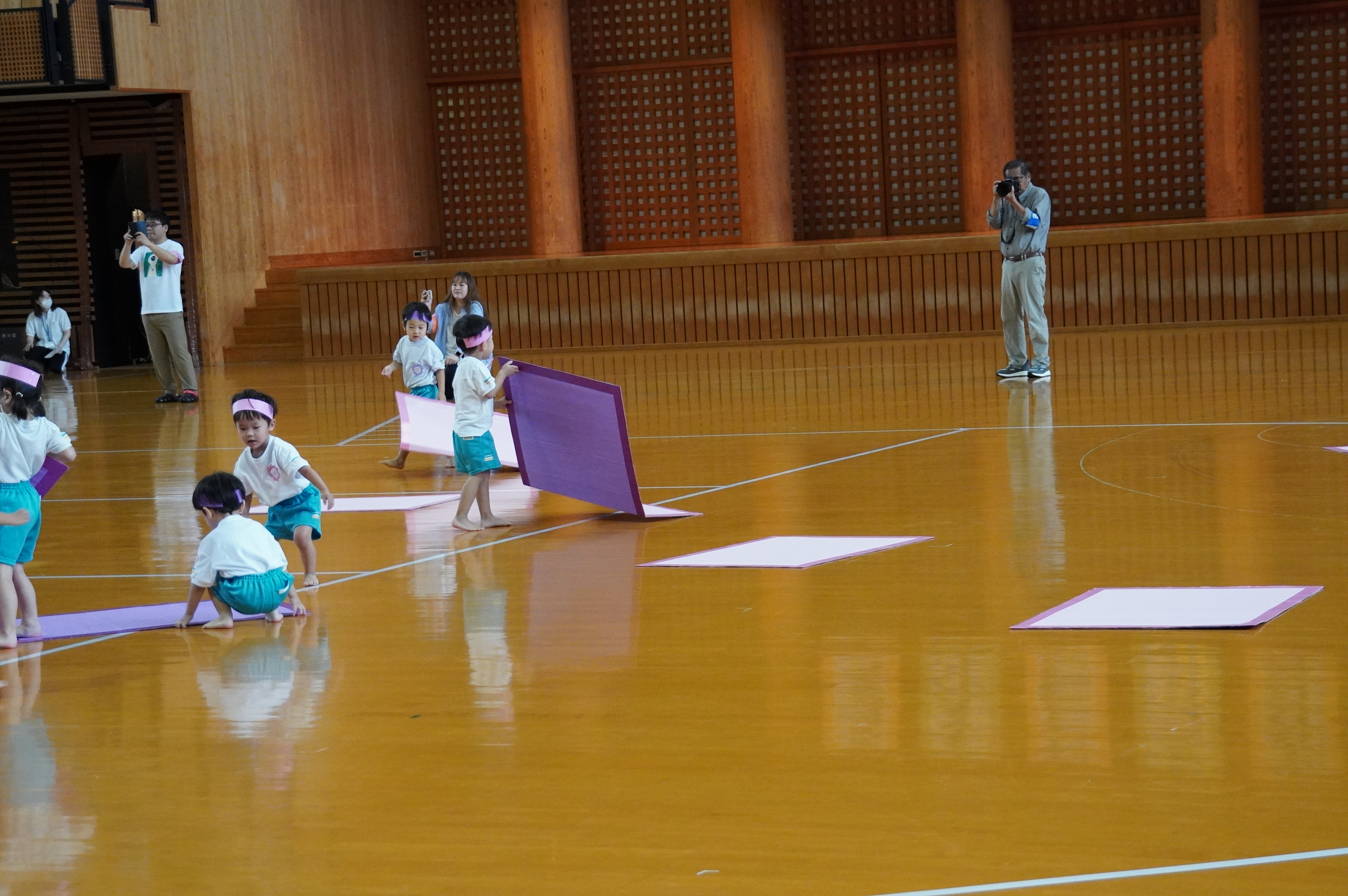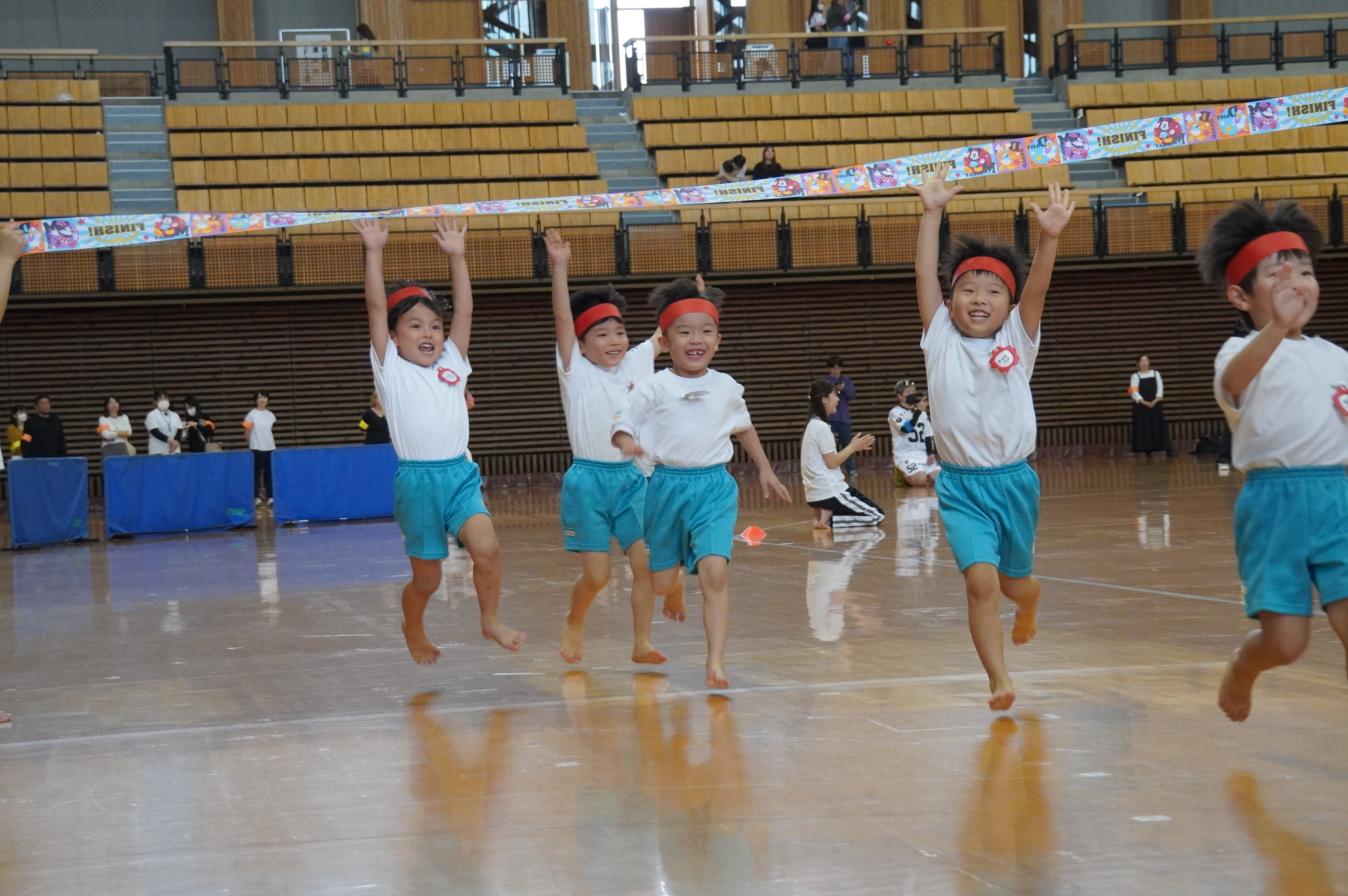 広い武道館でおもいっきり走ったり、踊ったり、みんな頑張りました!