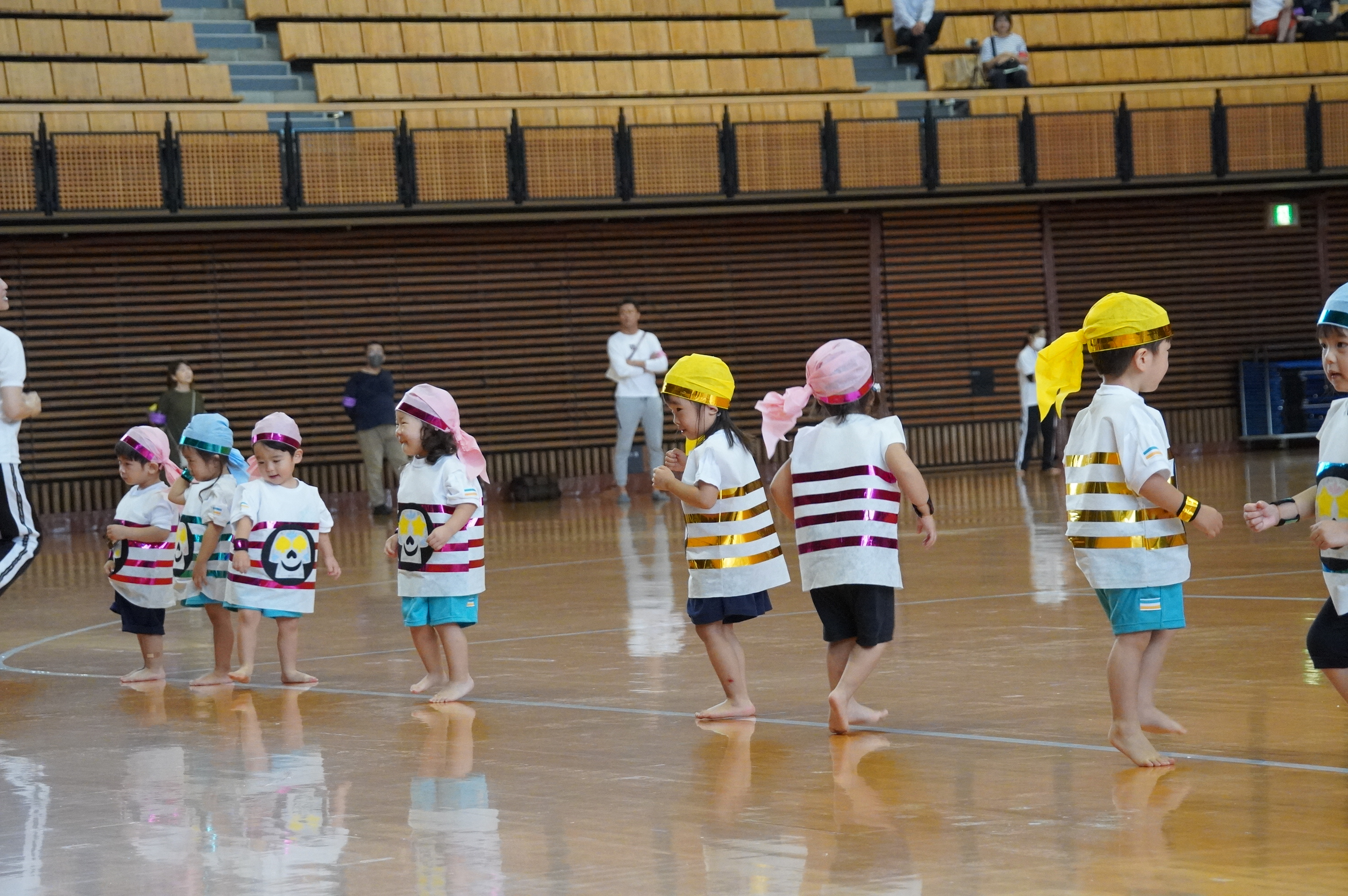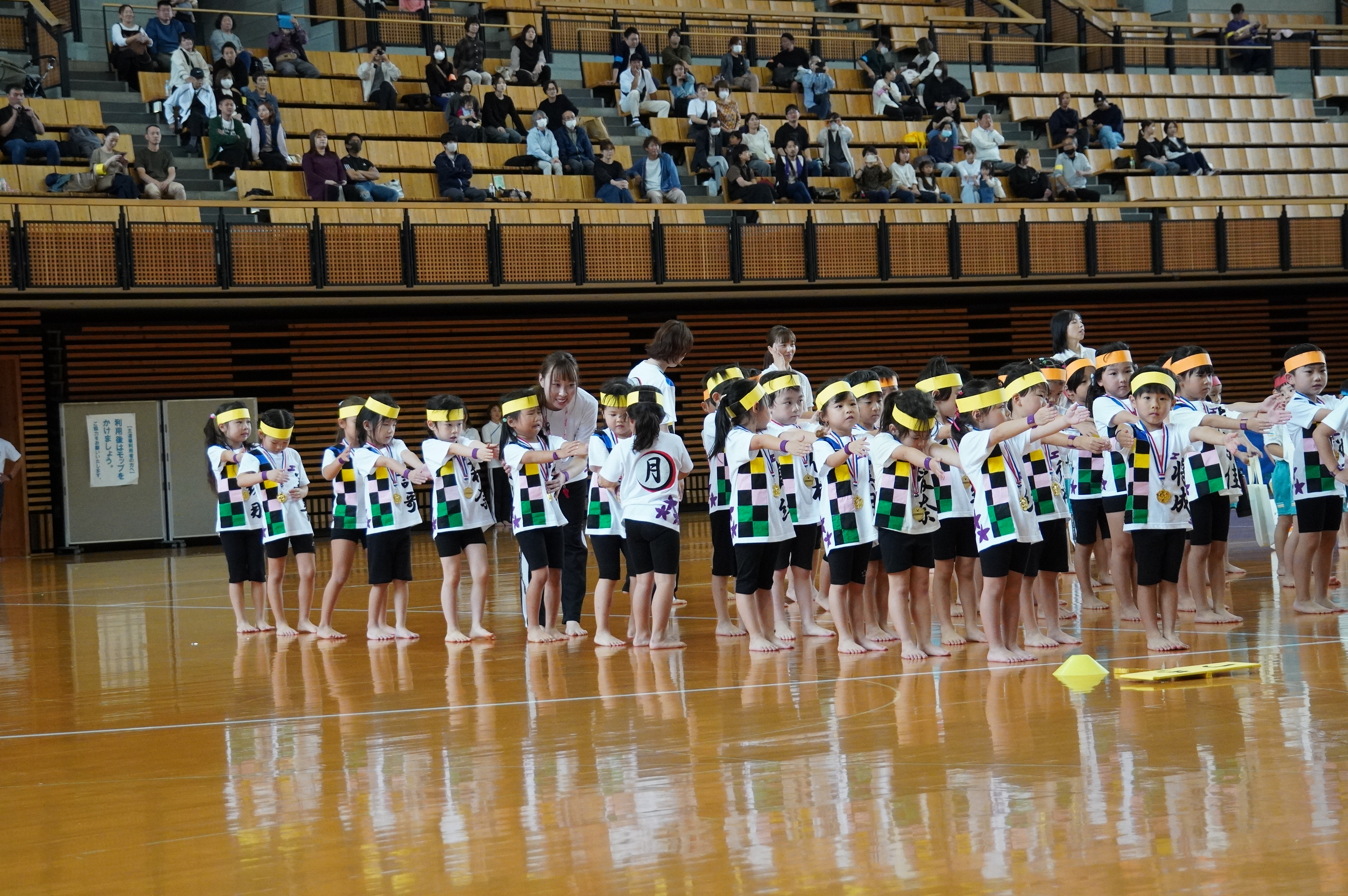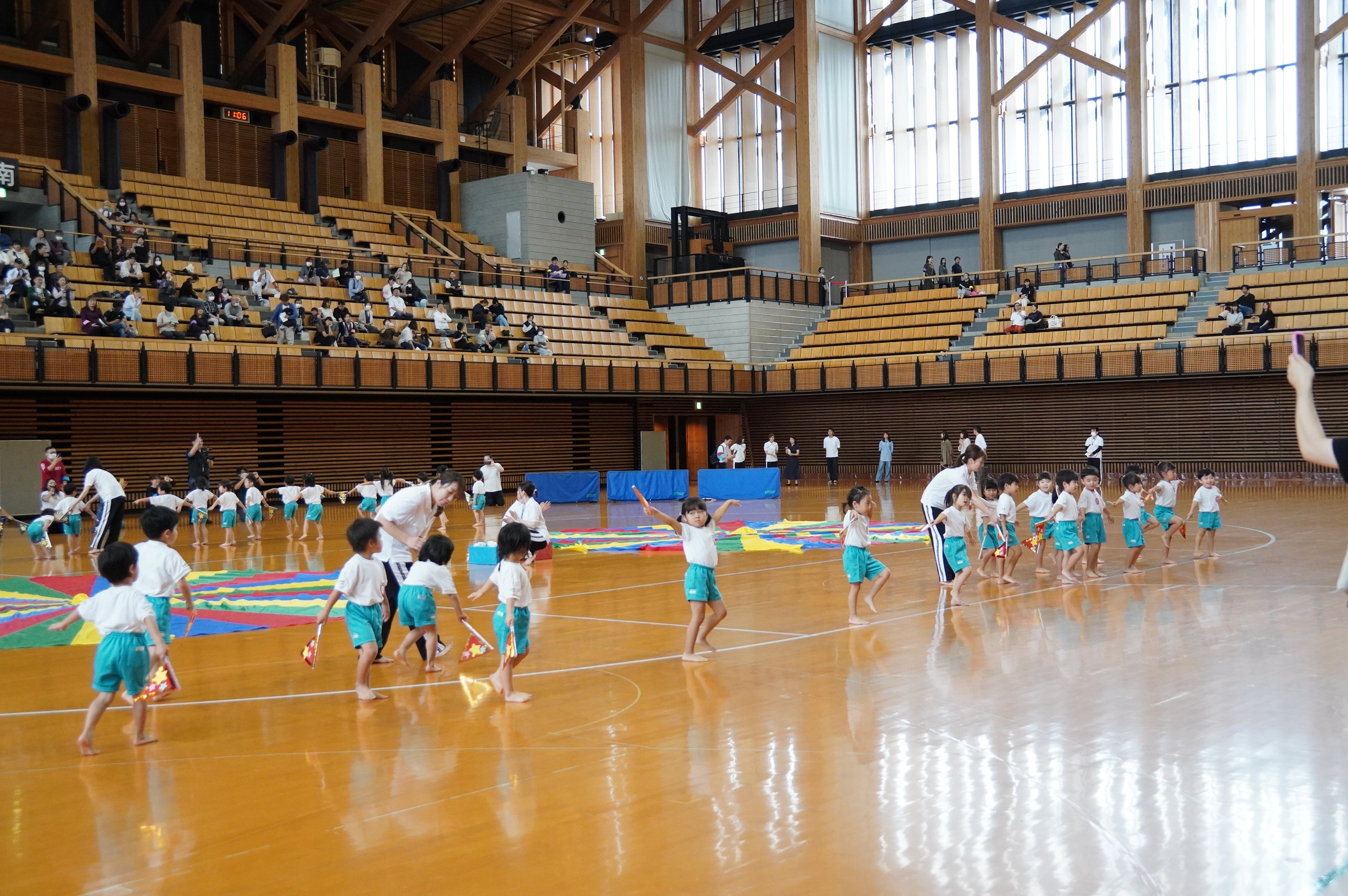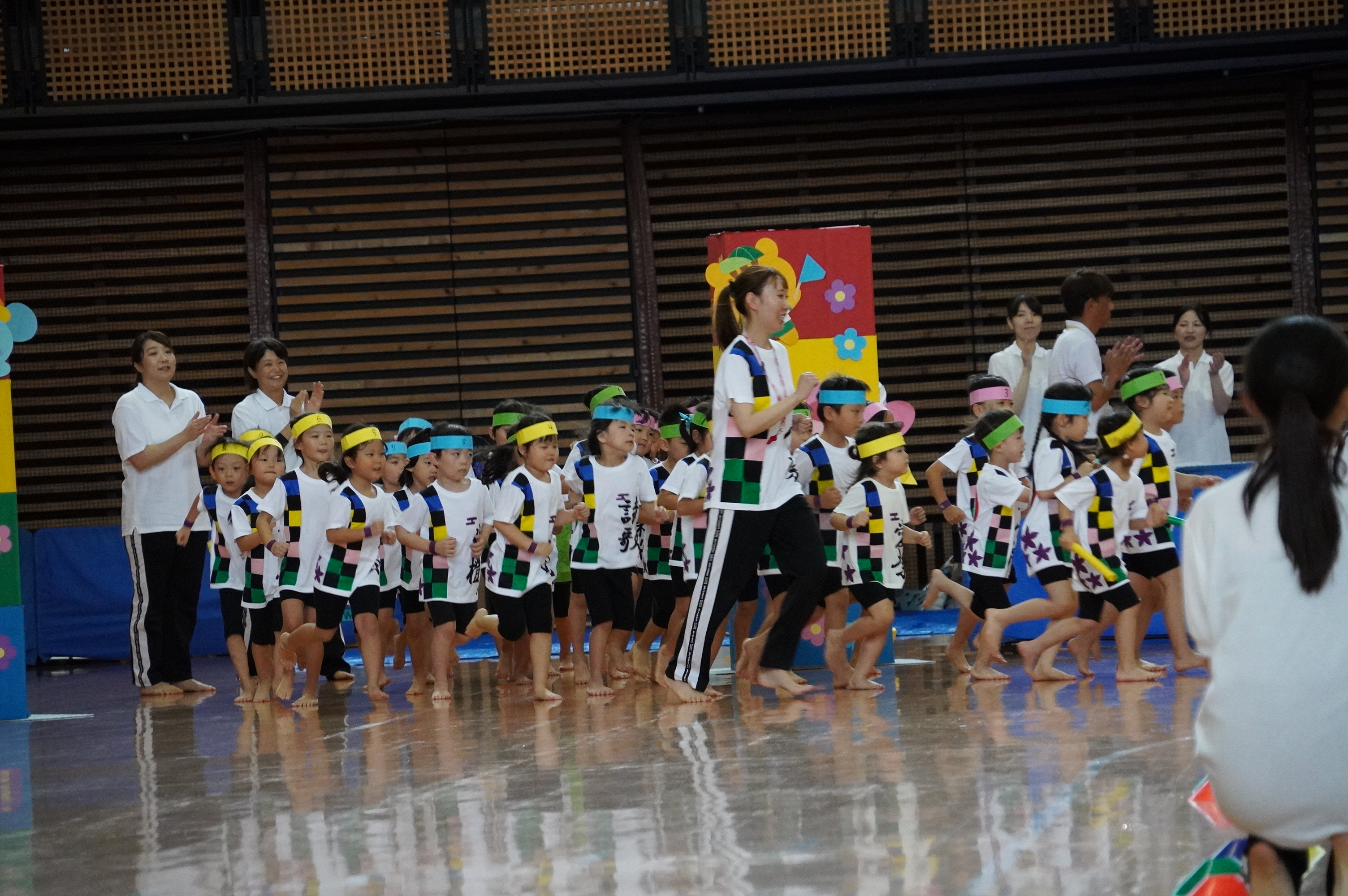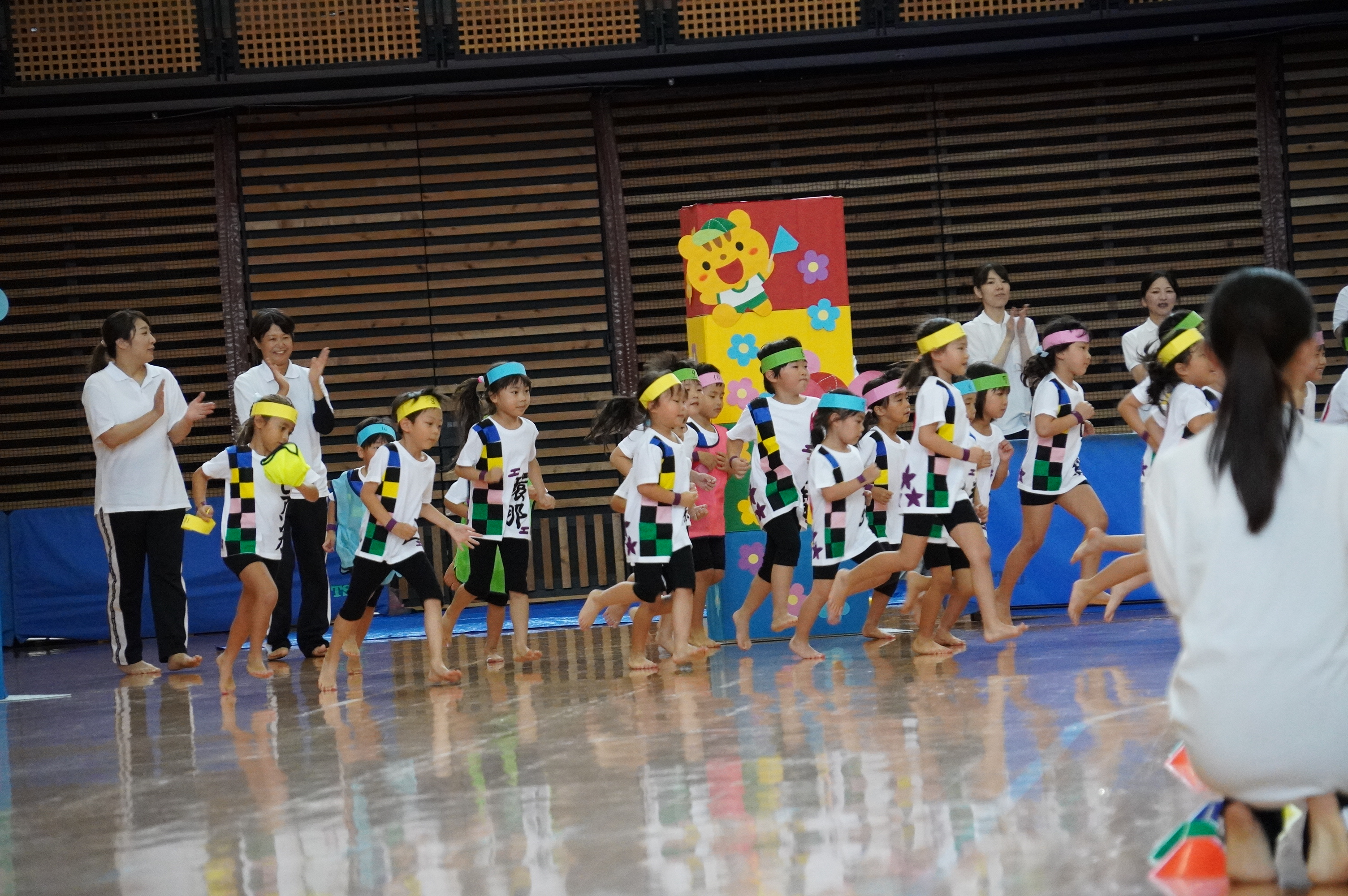 広い武道館でおもいっきり走ったり、踊ったり、みんな頑張りました!