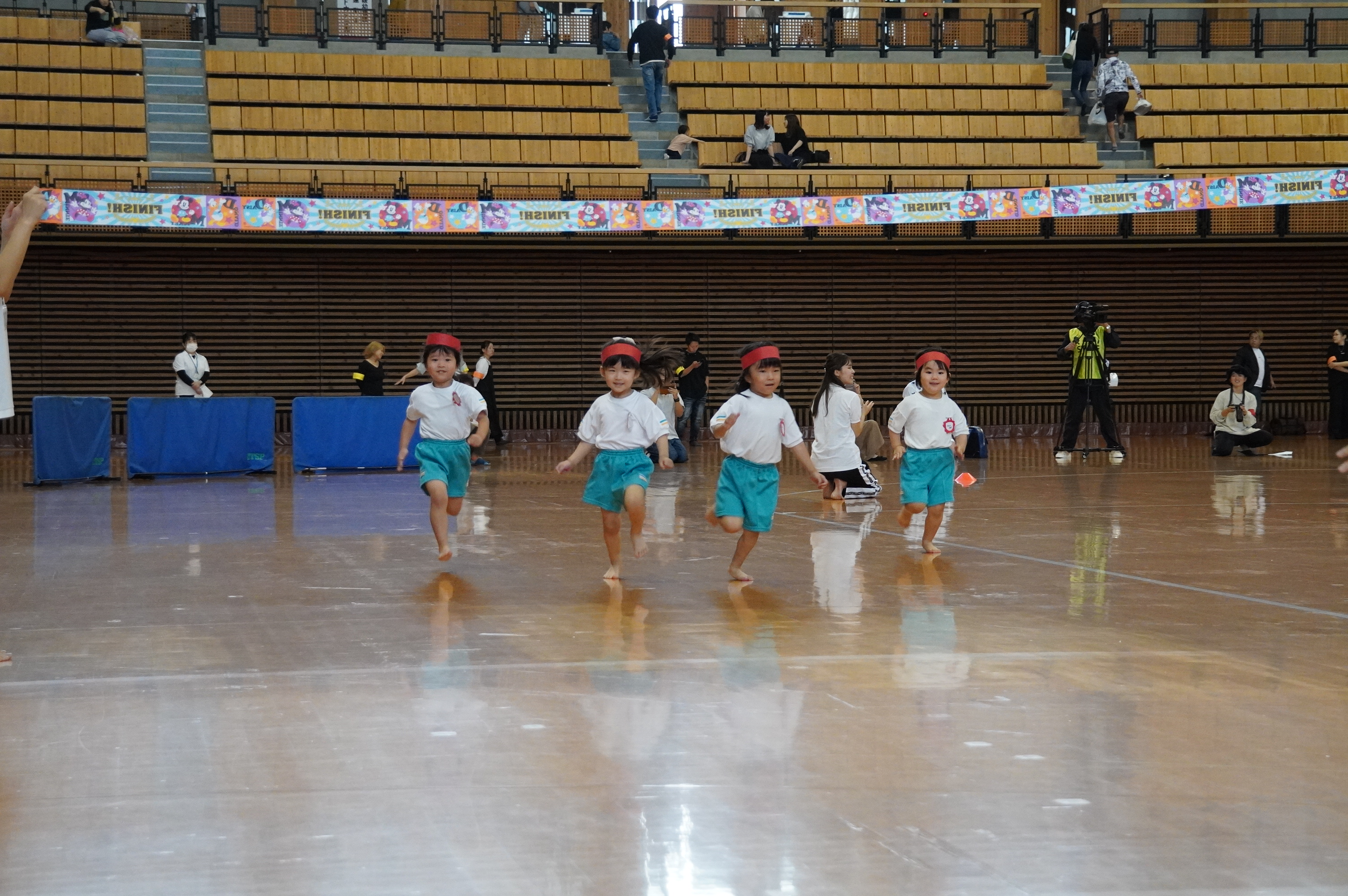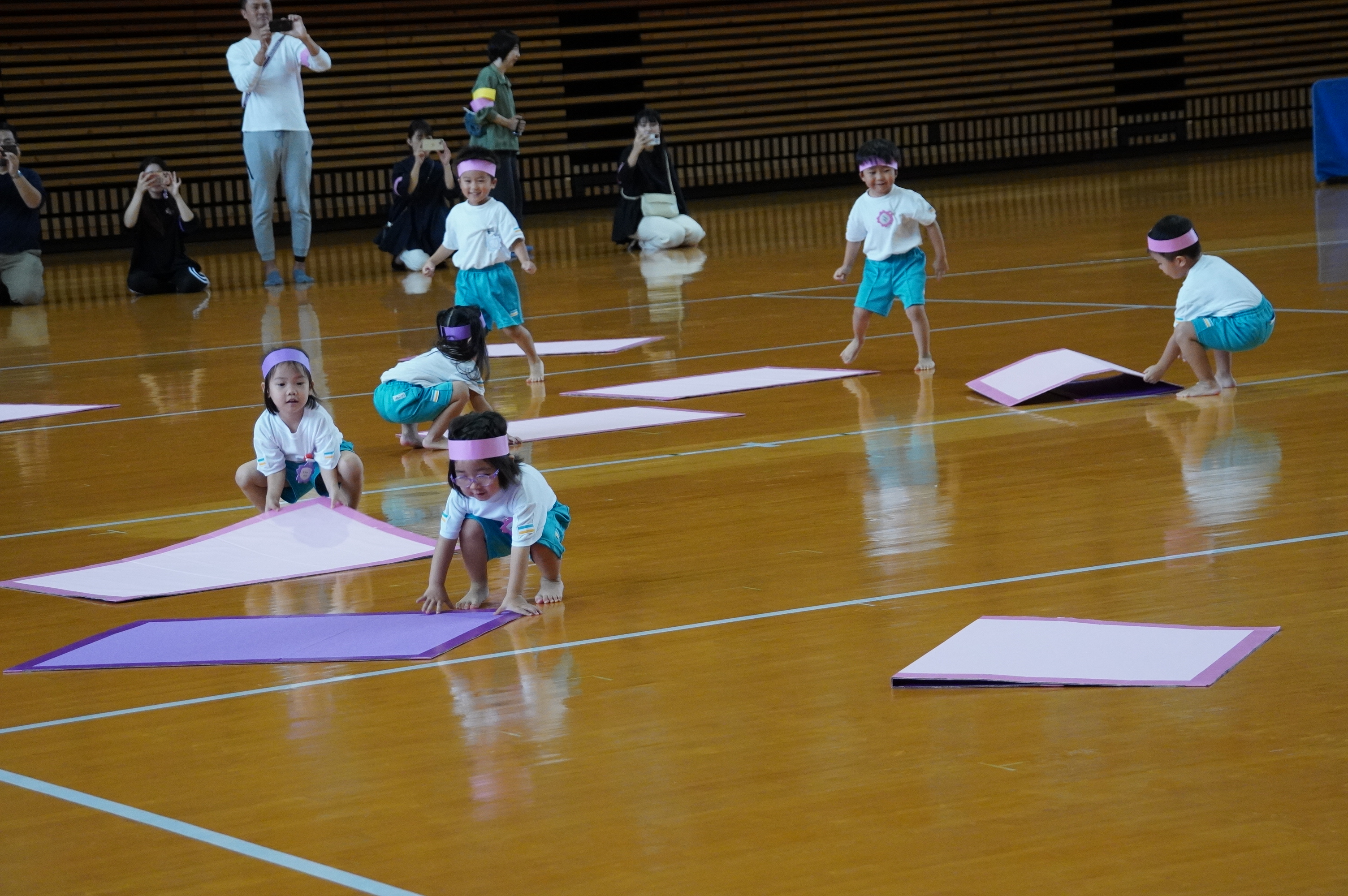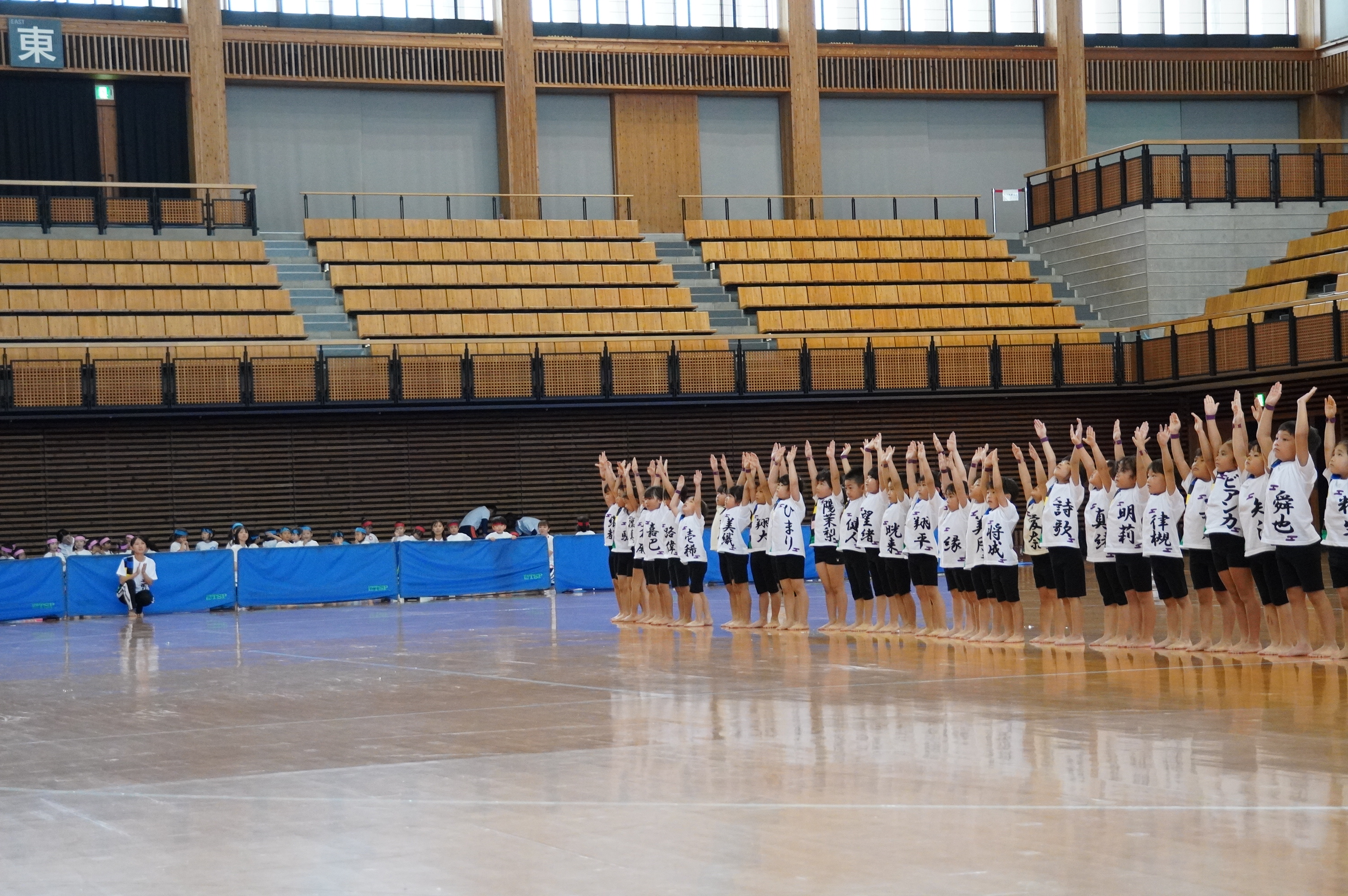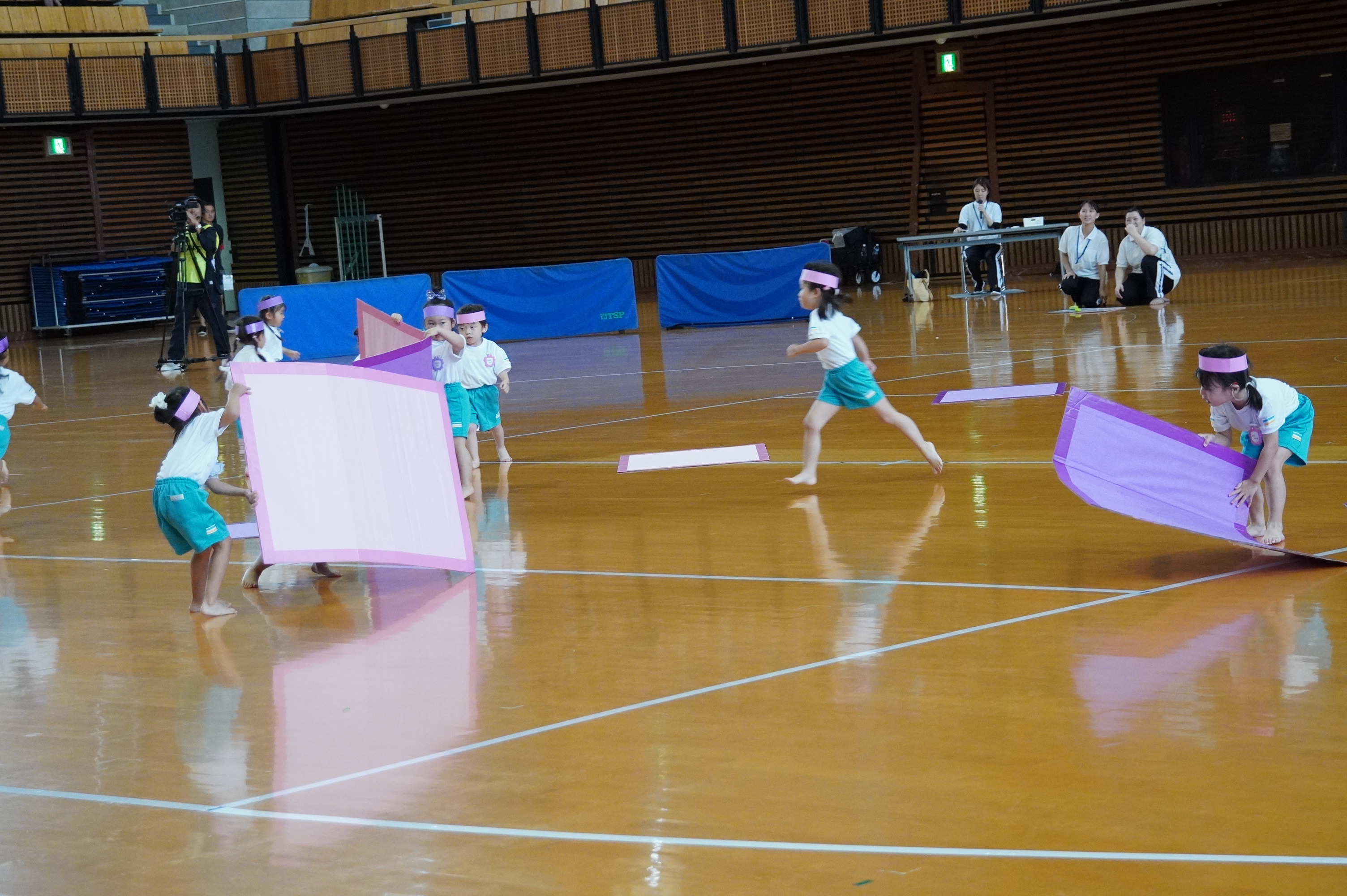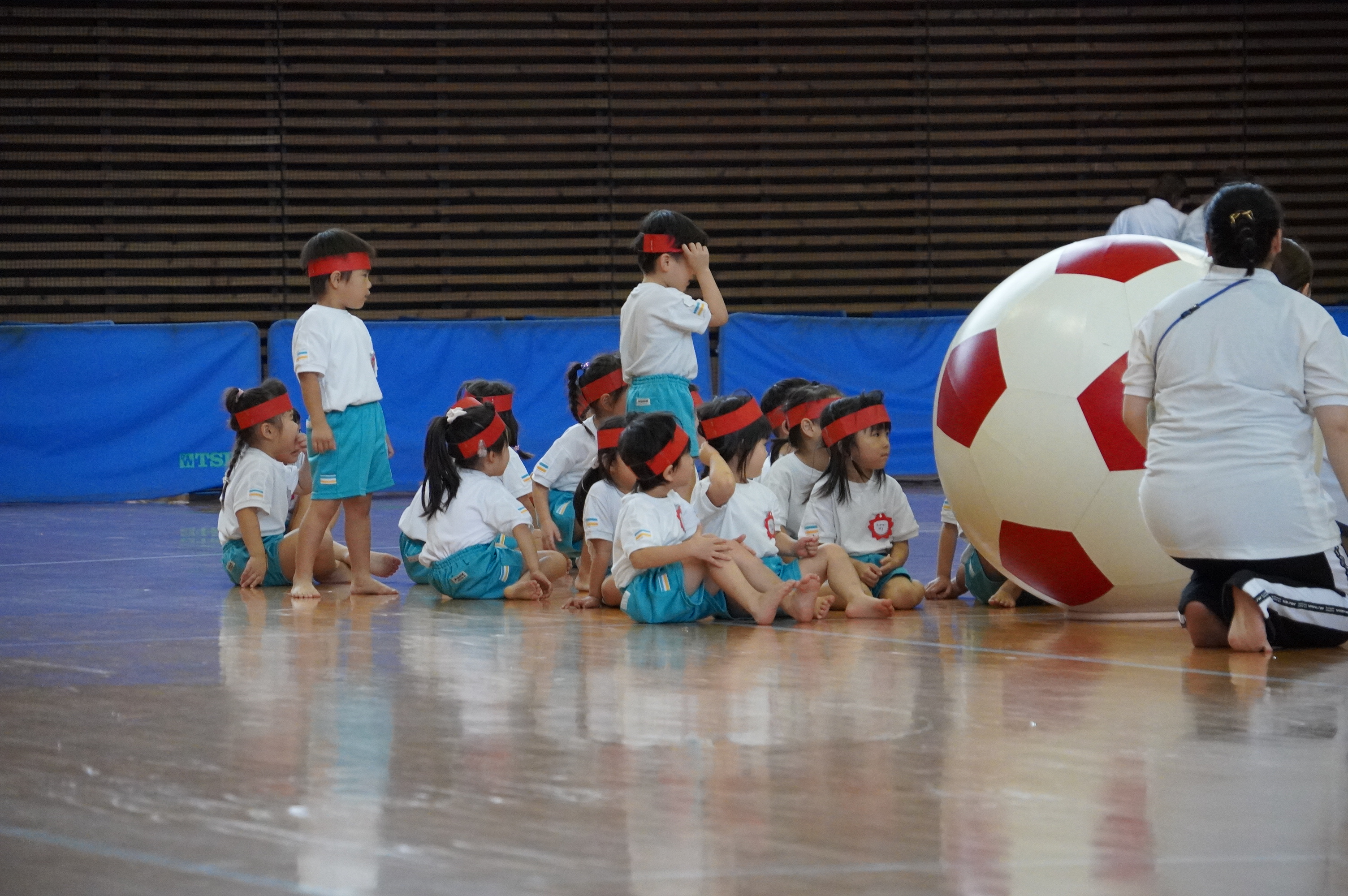 広い武道館でおもいっきり走ったり、踊ったり、みんな頑張りました!
