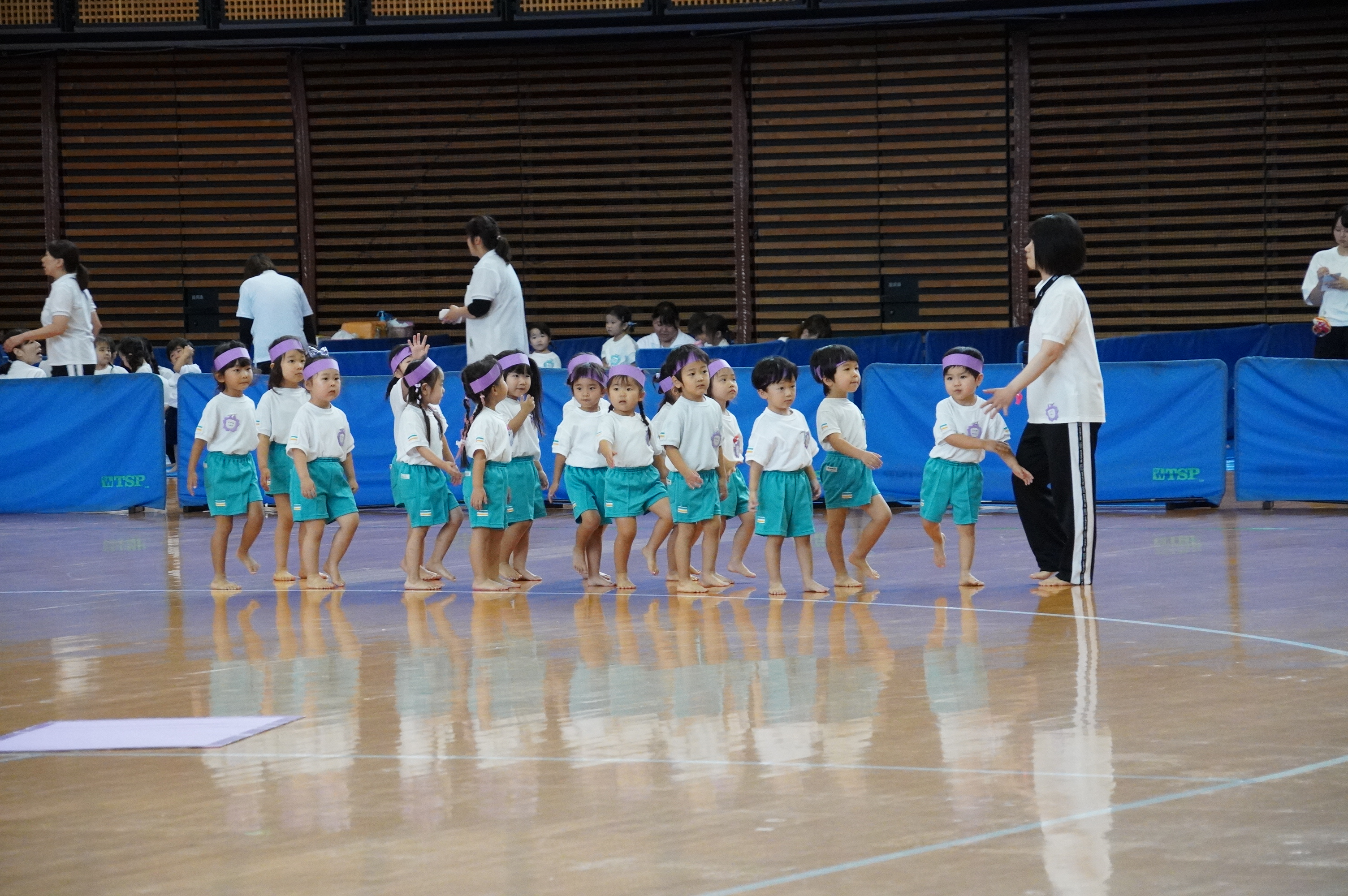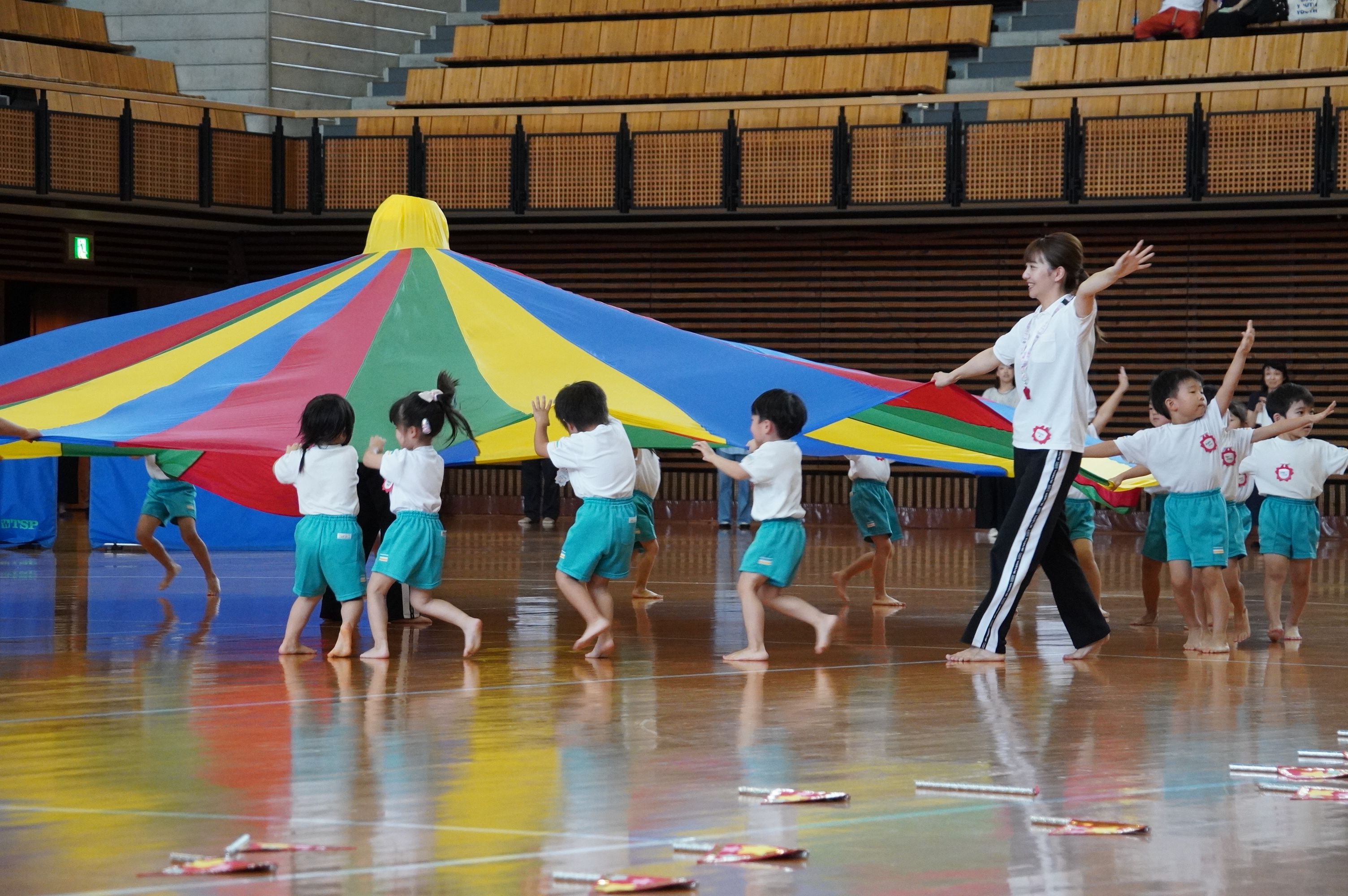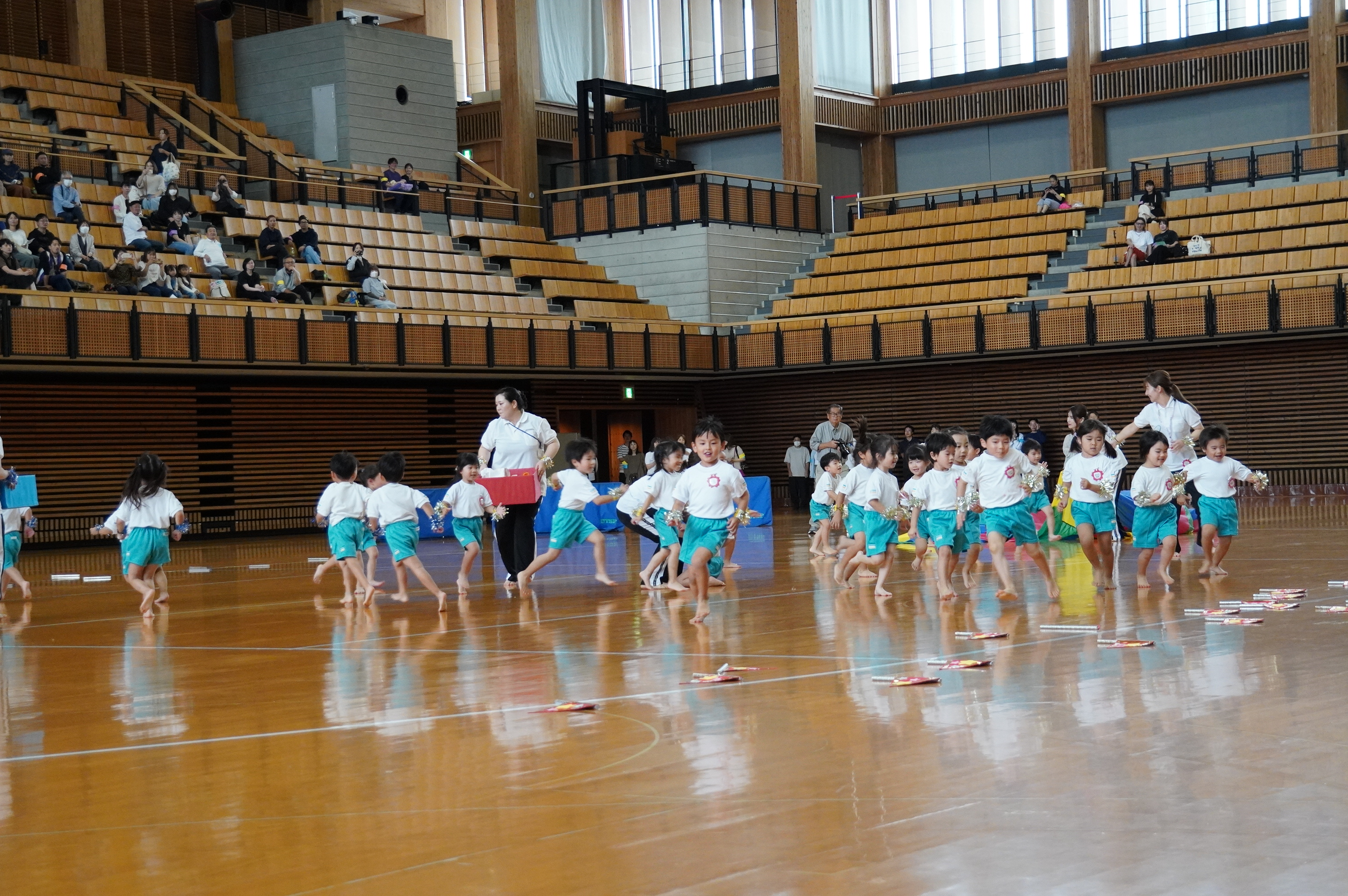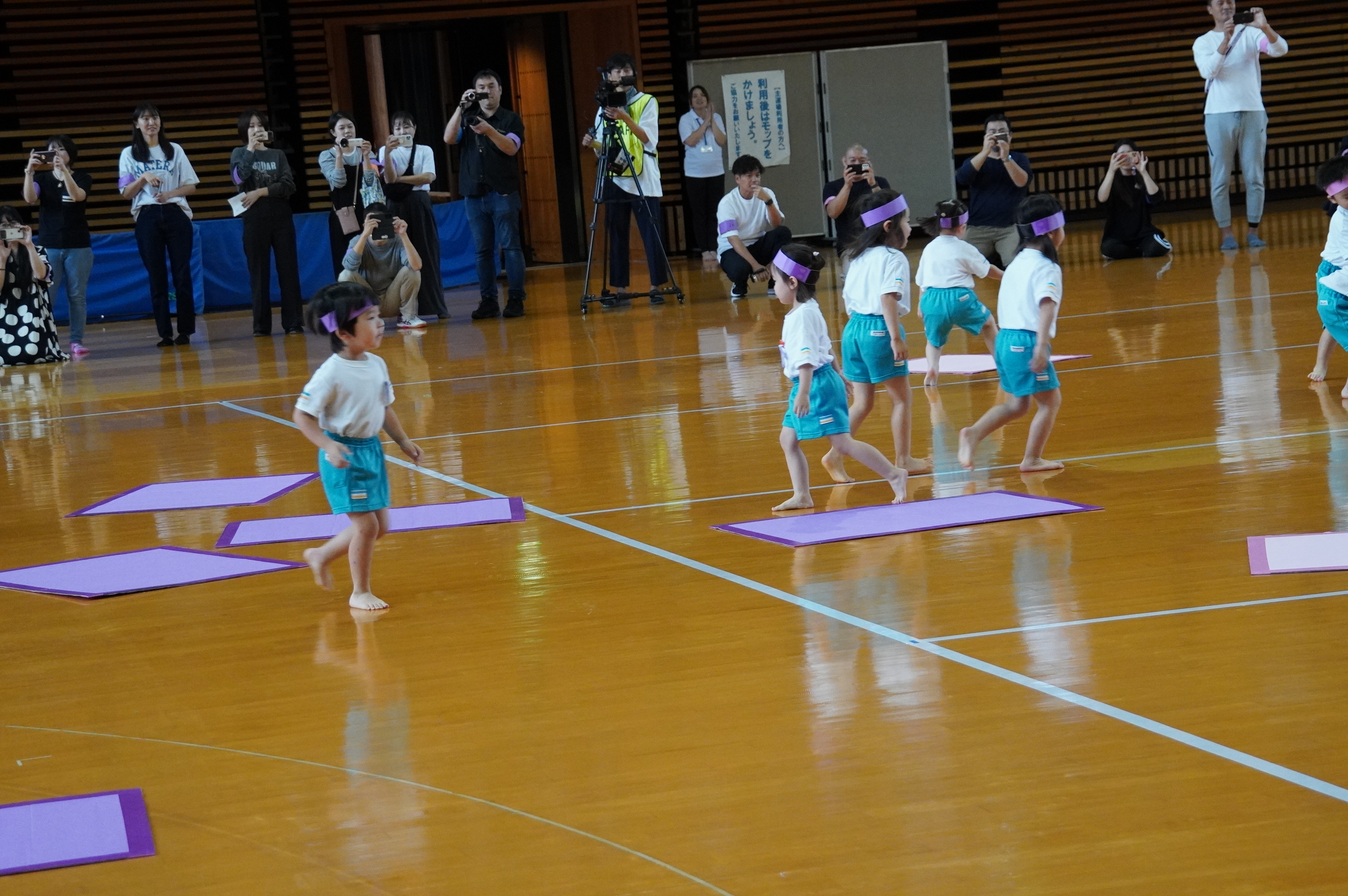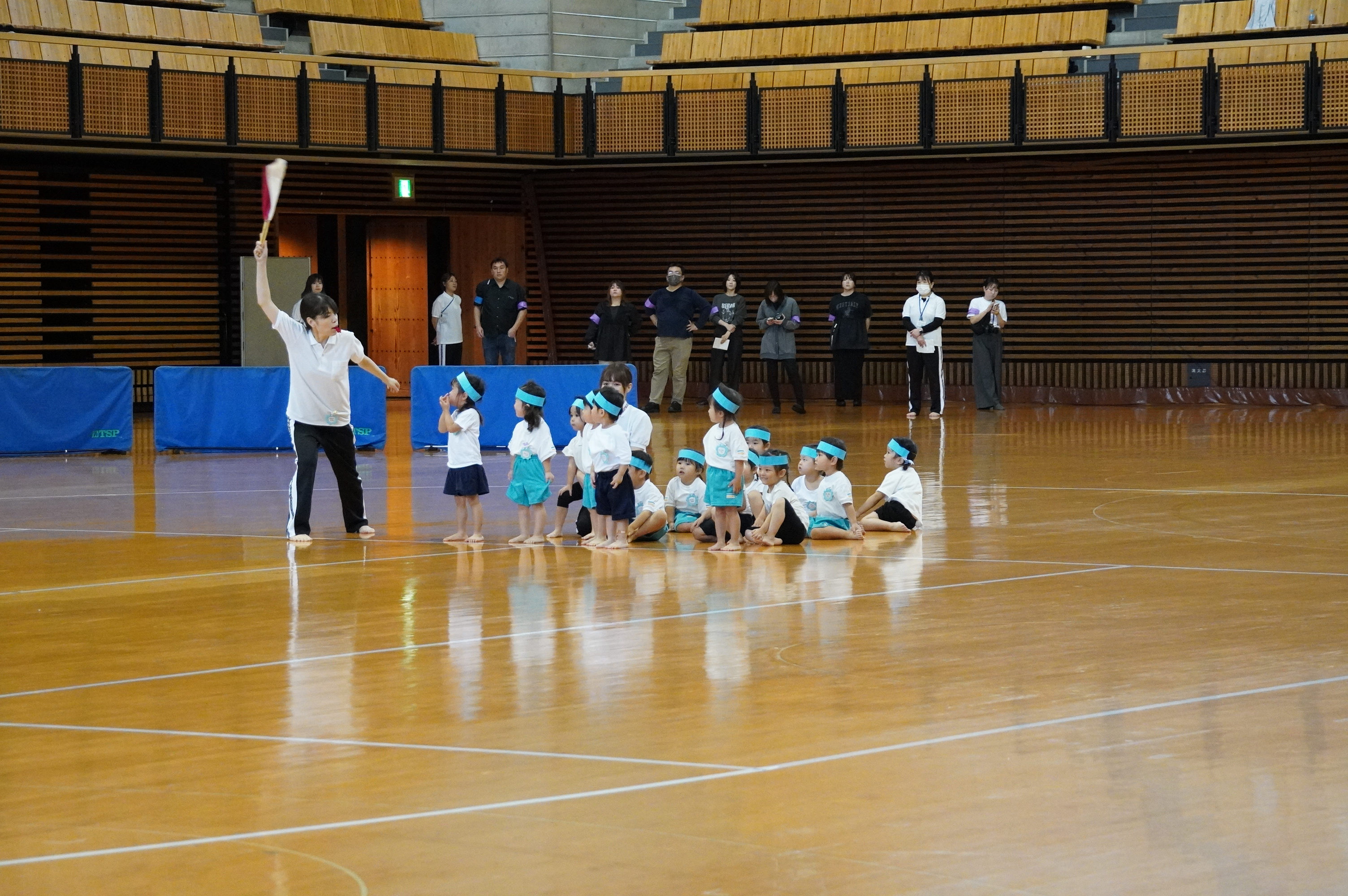 広い武道館でおもいっきり走ったり、踊ったり、みんな頑張りました!