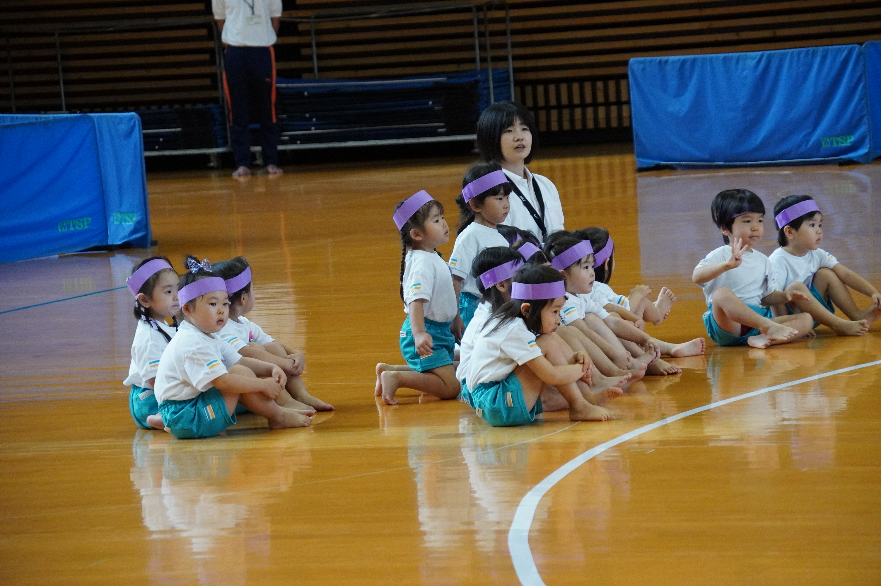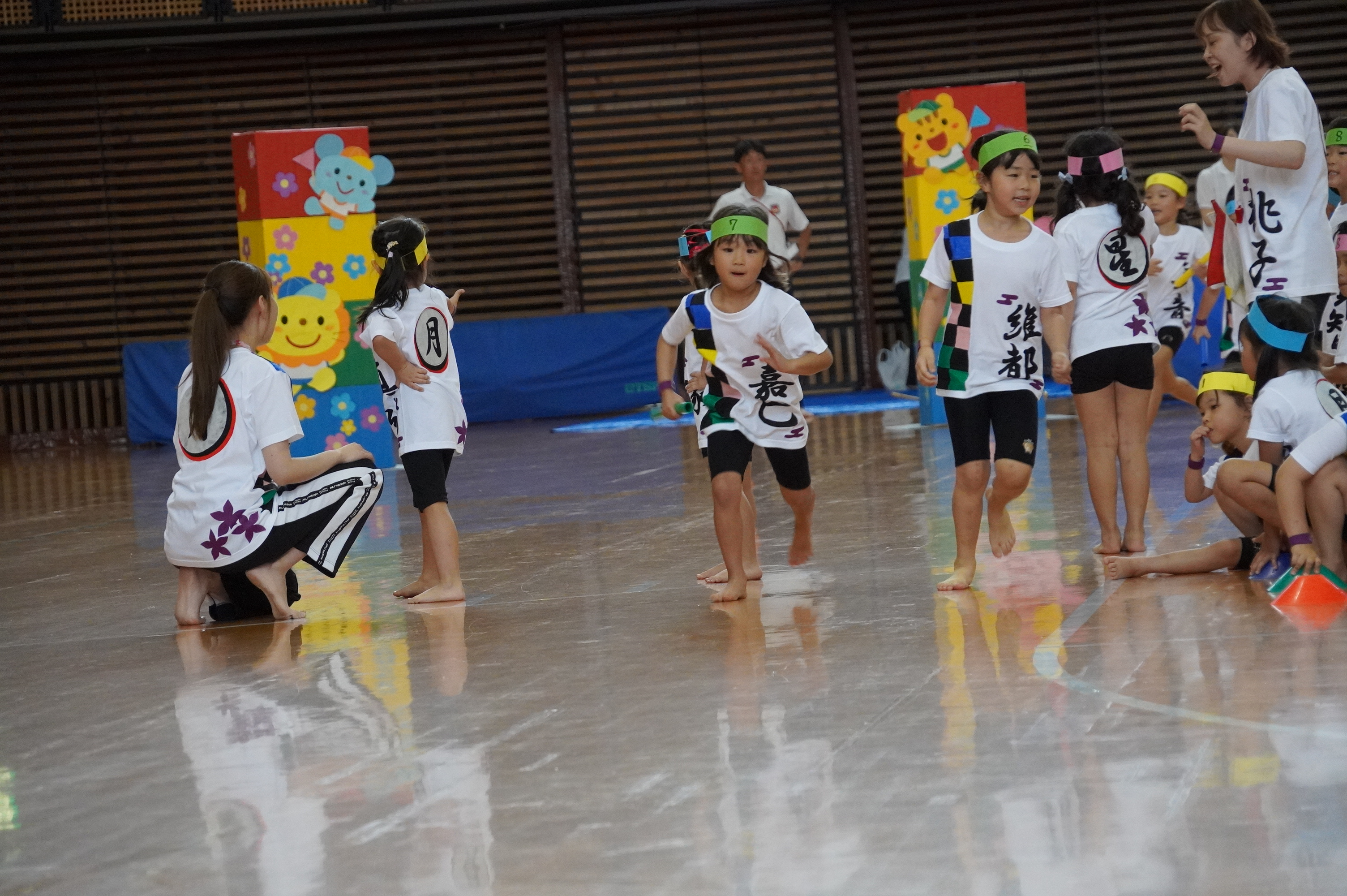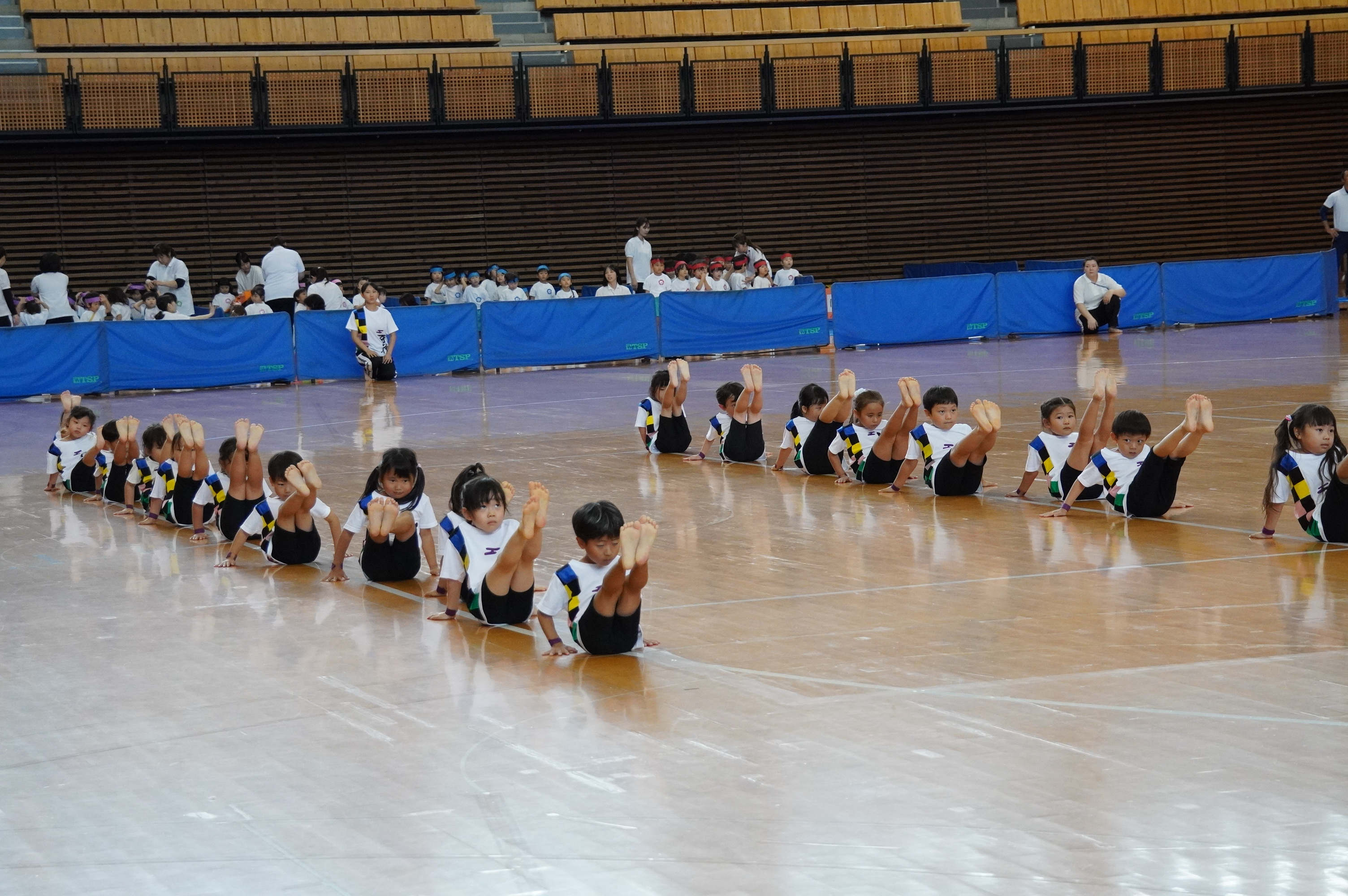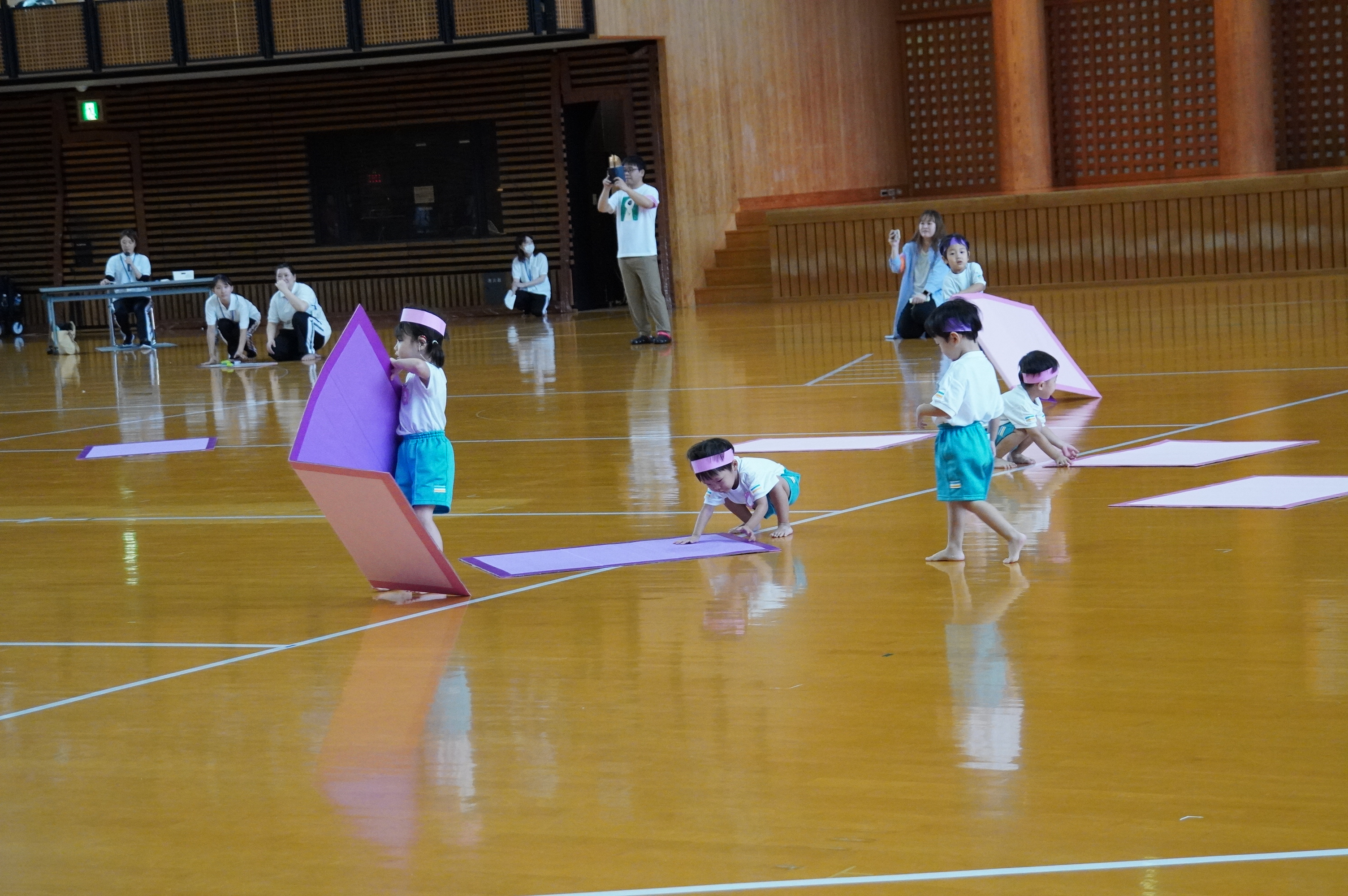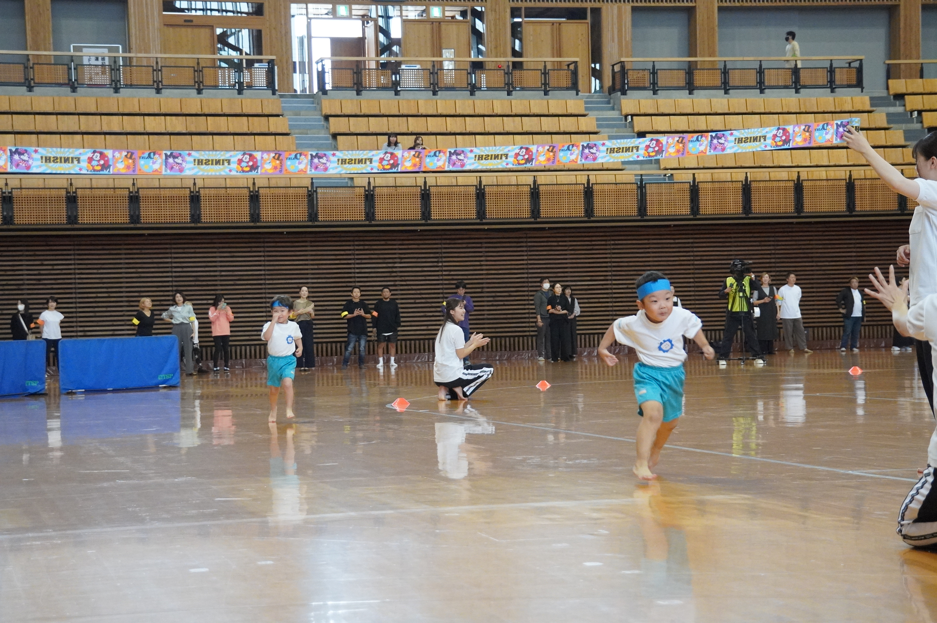 広い武道館でおもいっきり走ったり、踊ったり、みんな頑張りました!