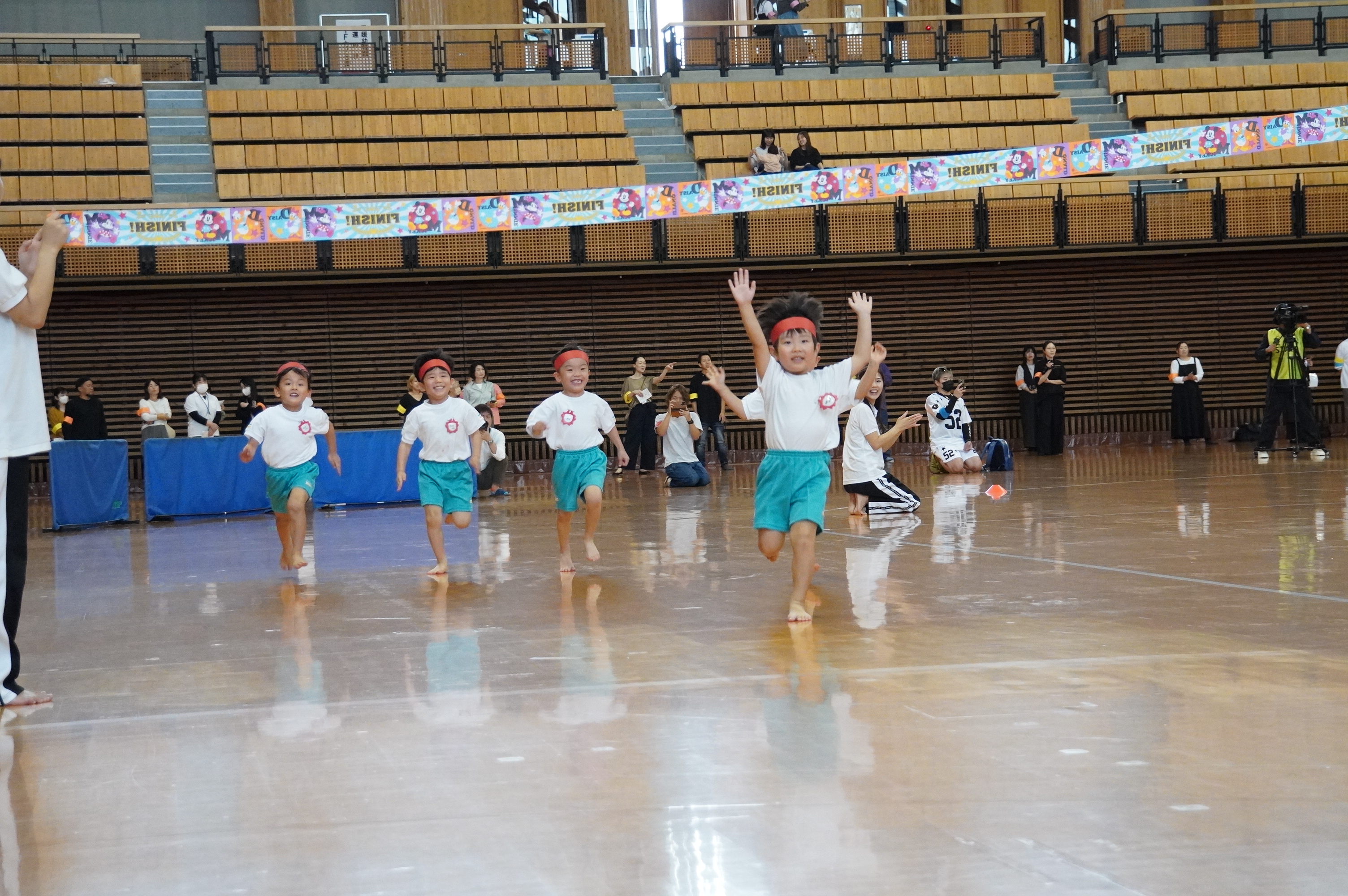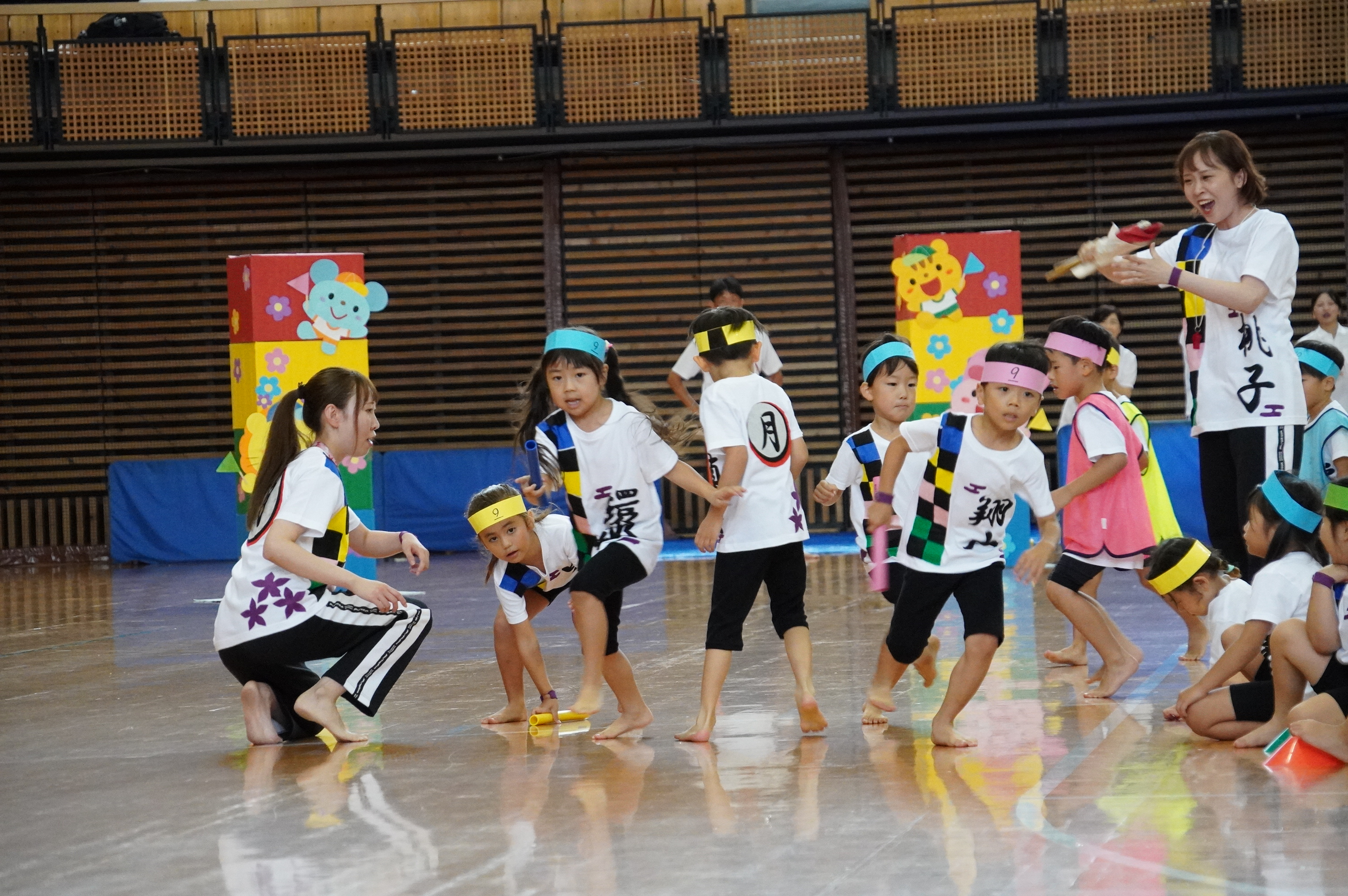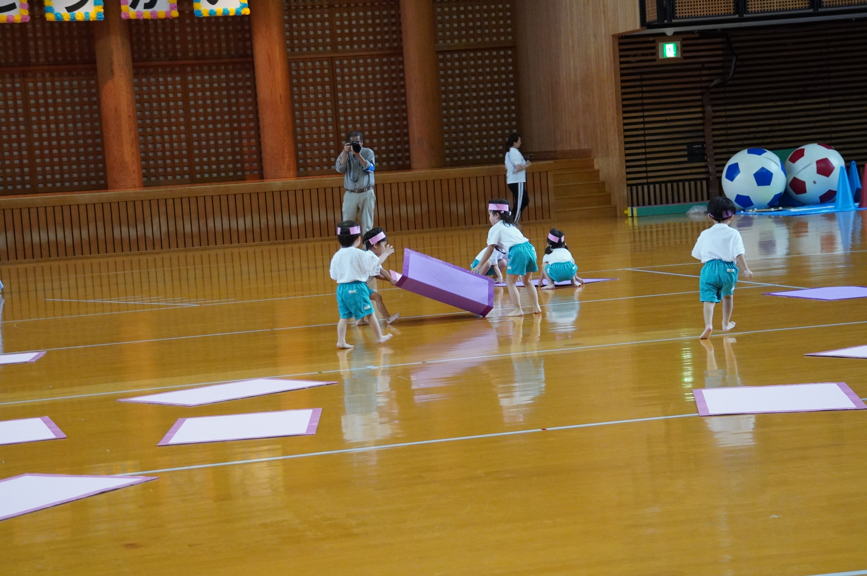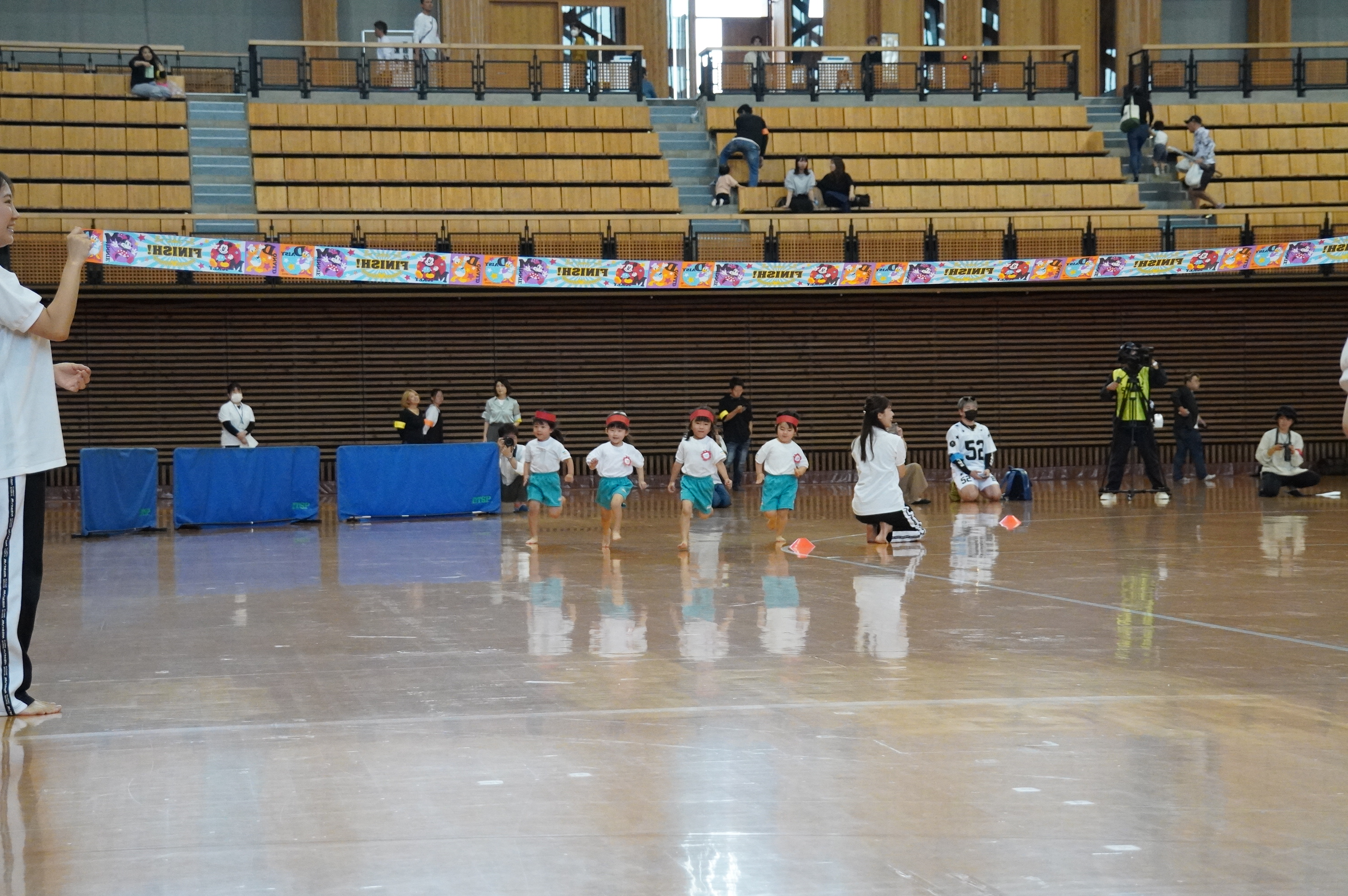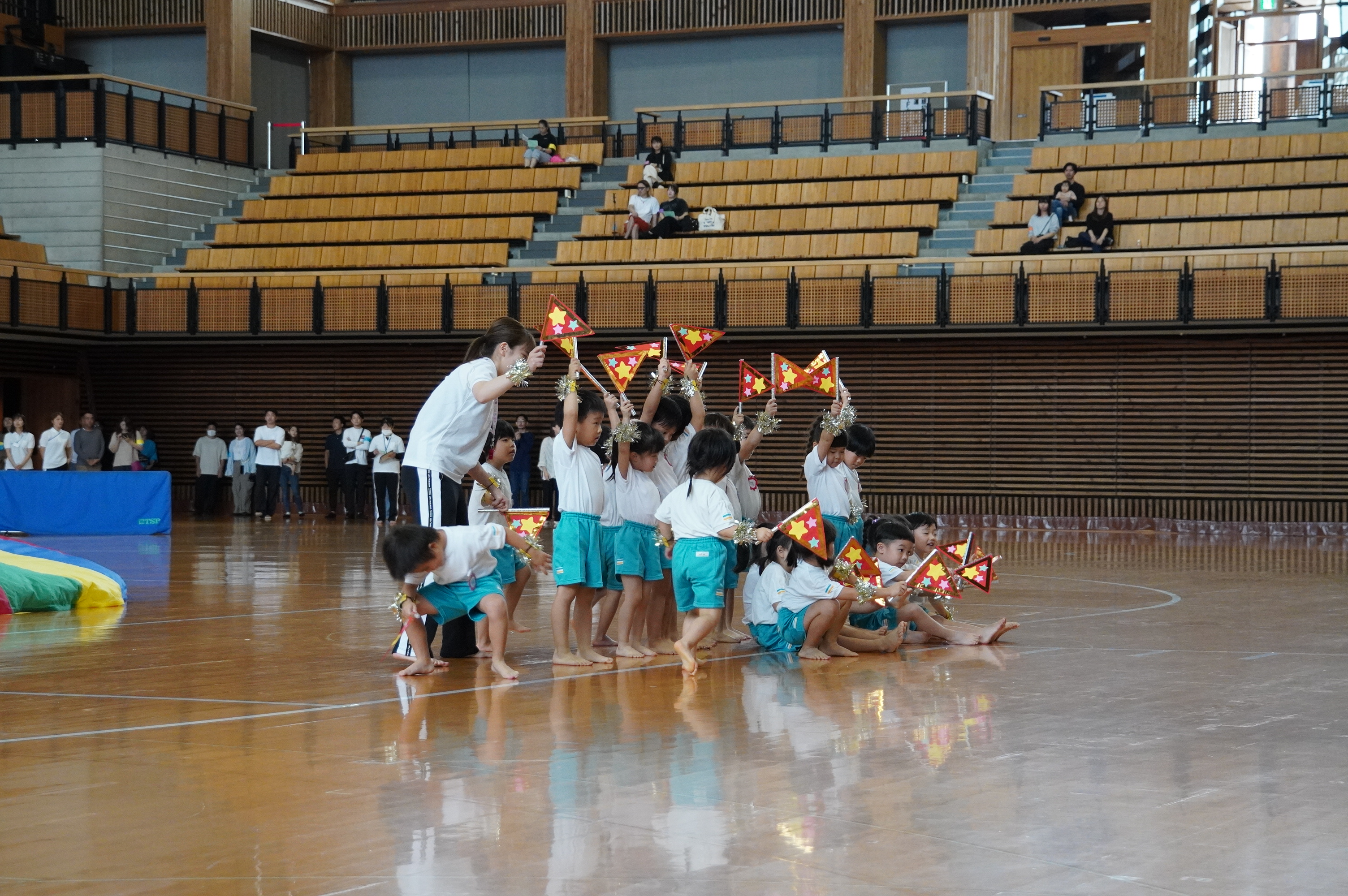 広い武道館でおもいっきり走ったり、踊ったり、みんな頑張りました!