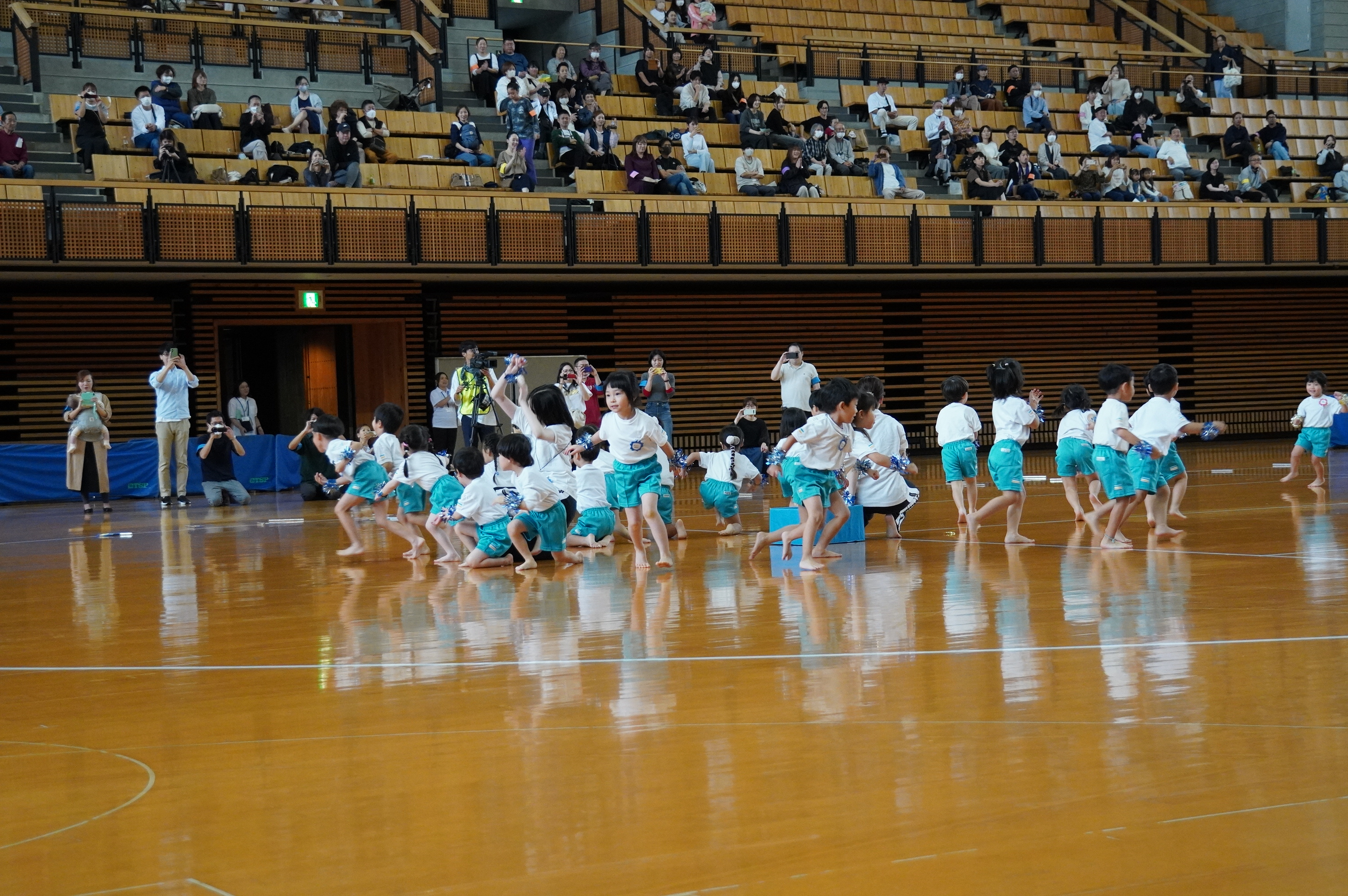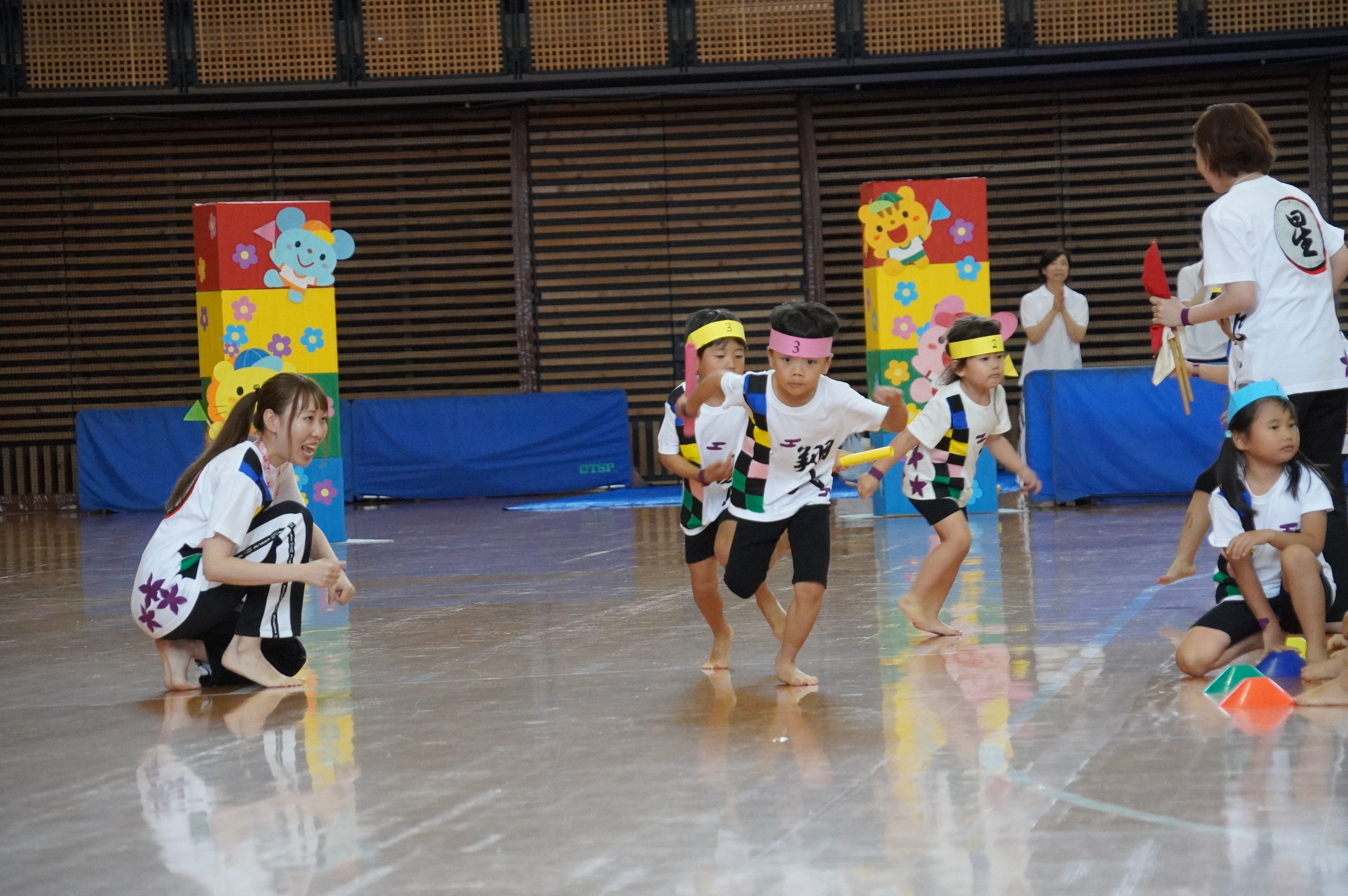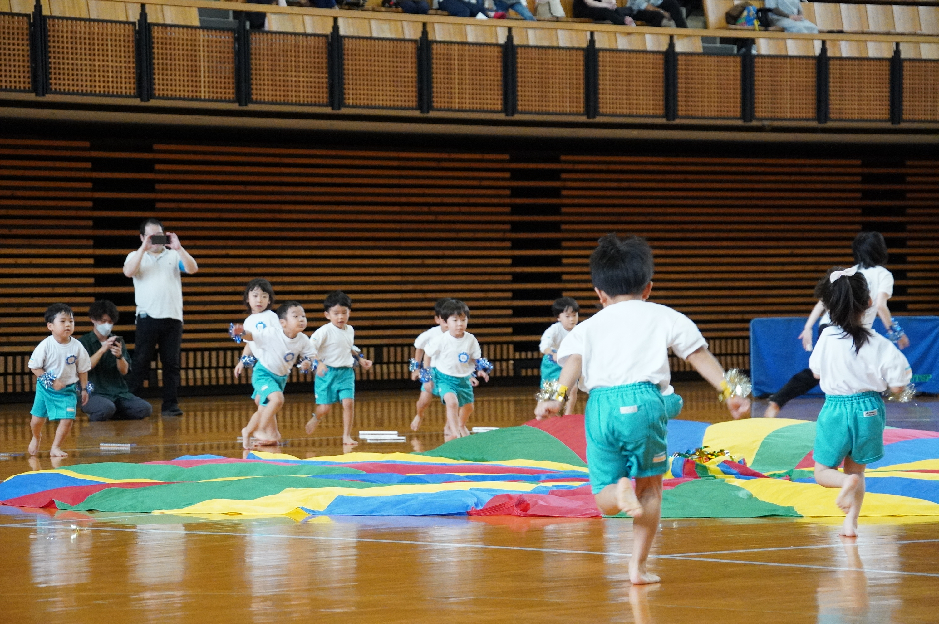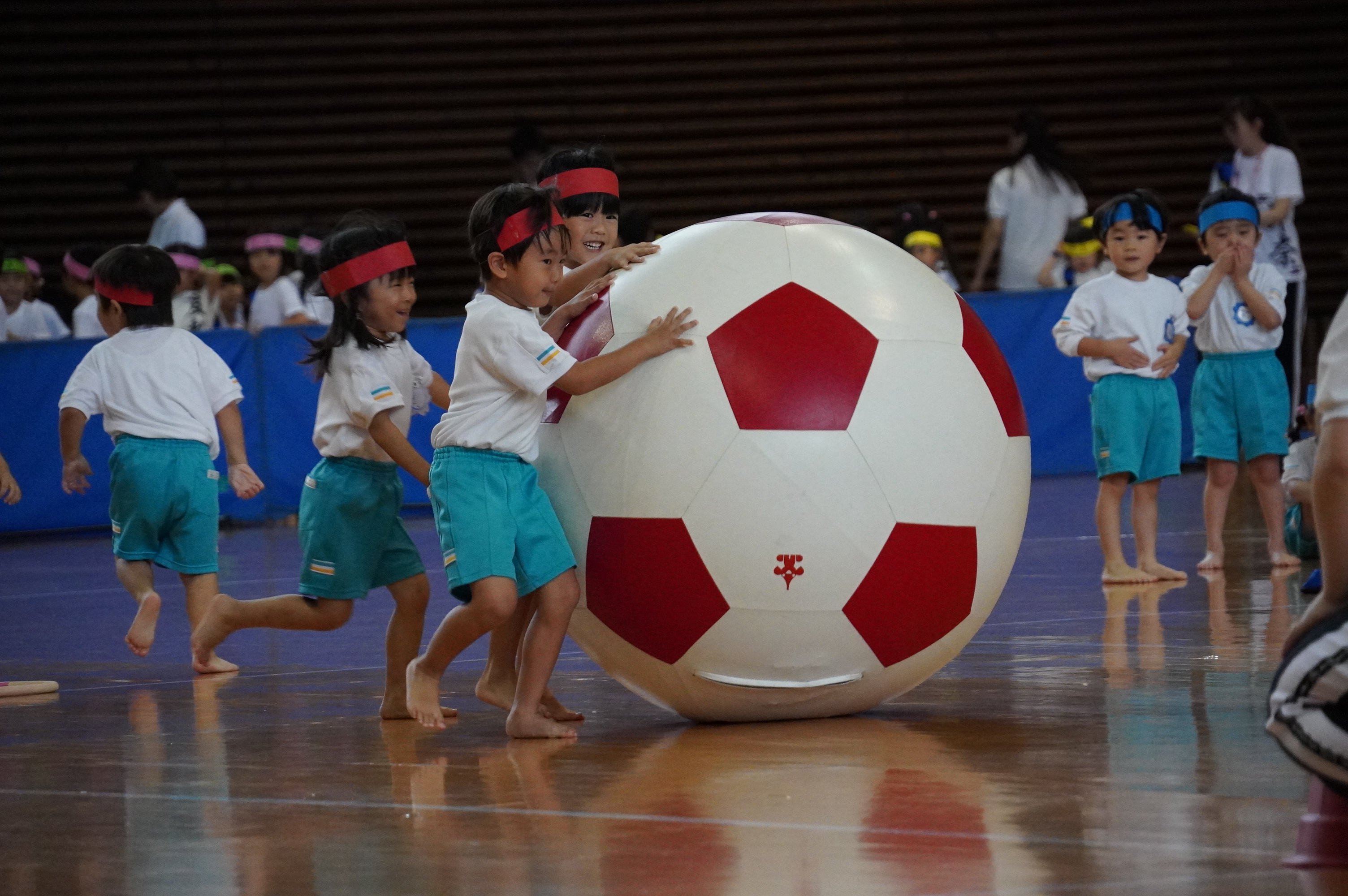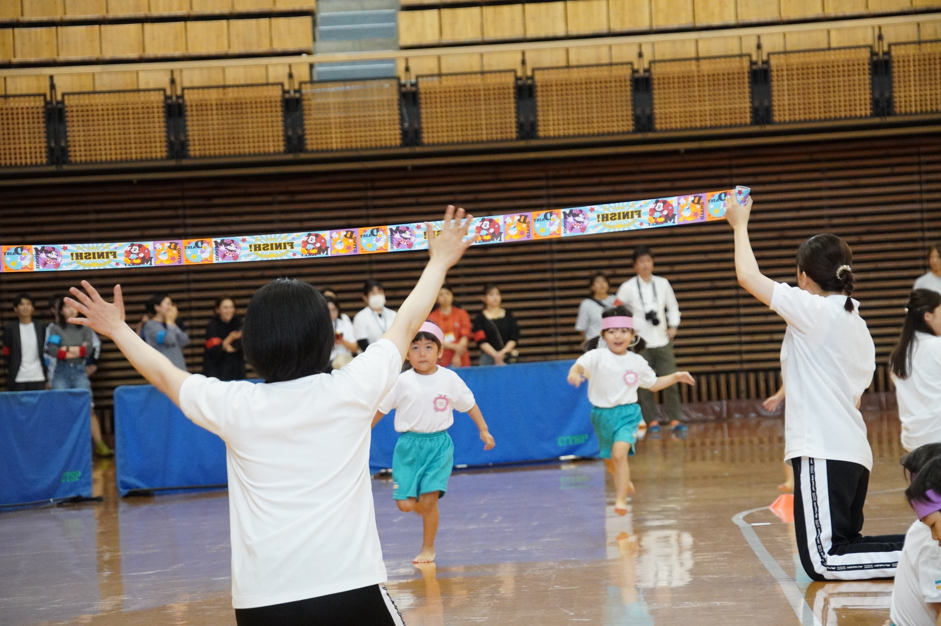 広い武道館でおもいっきり走ったり、踊ったり、みんな頑張りました!