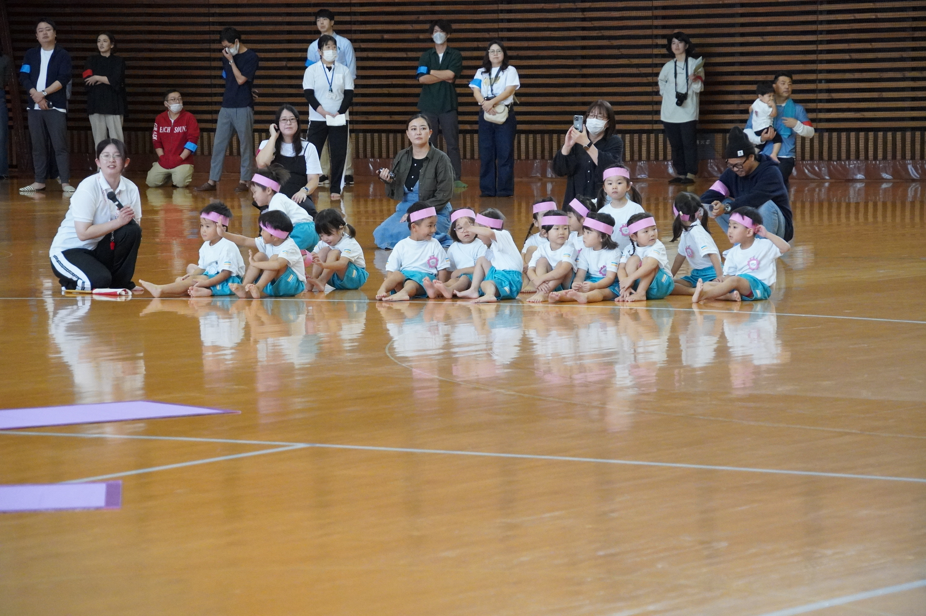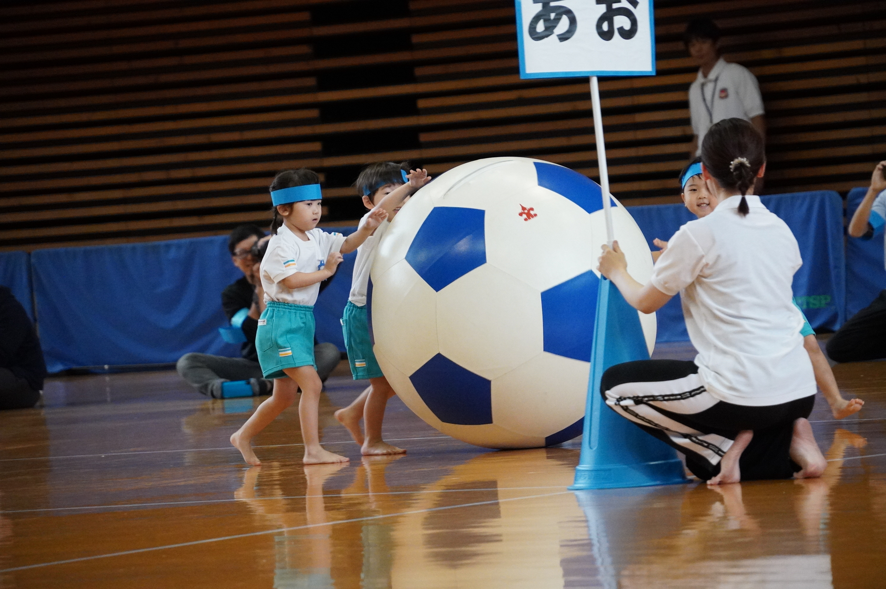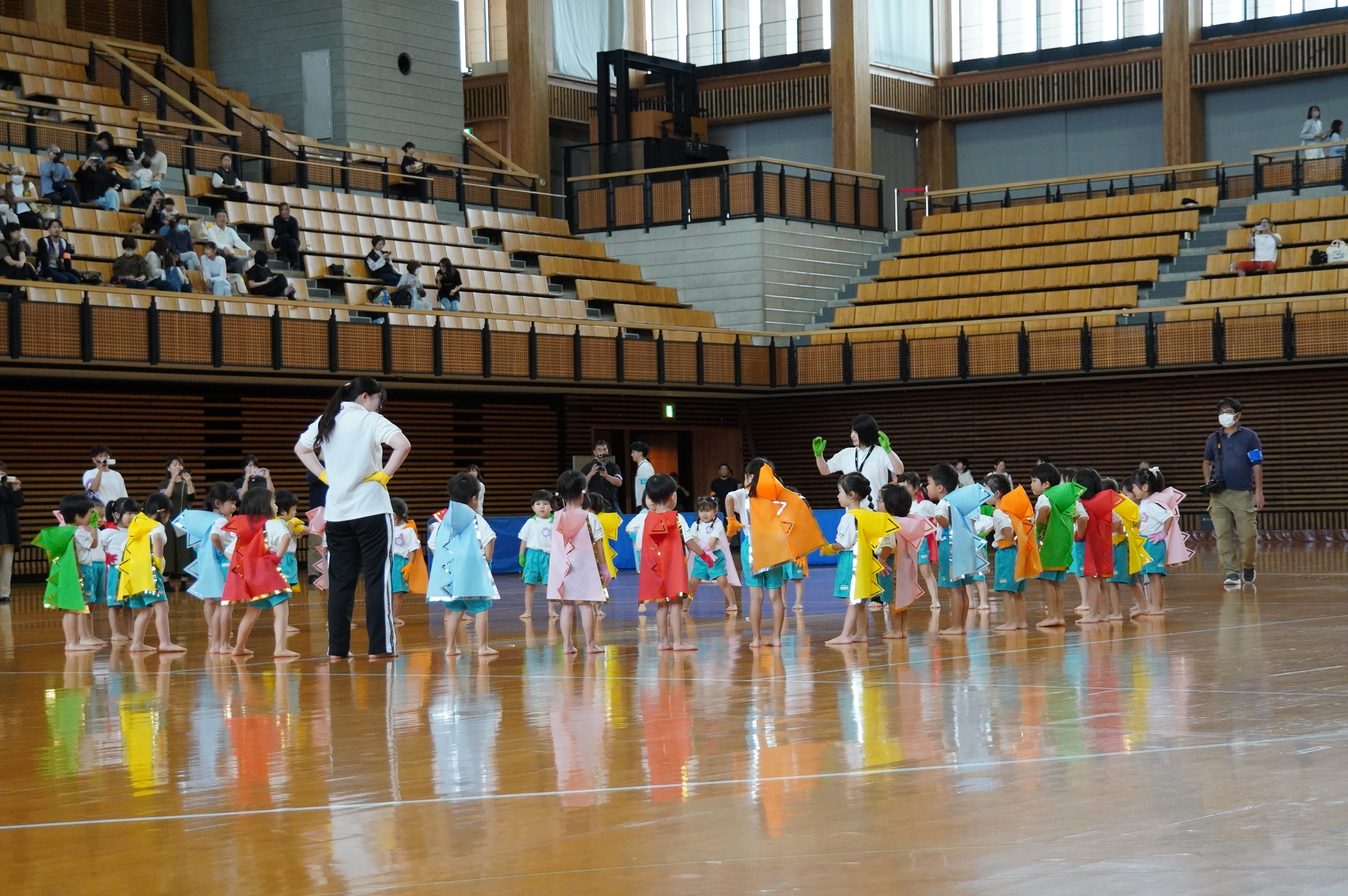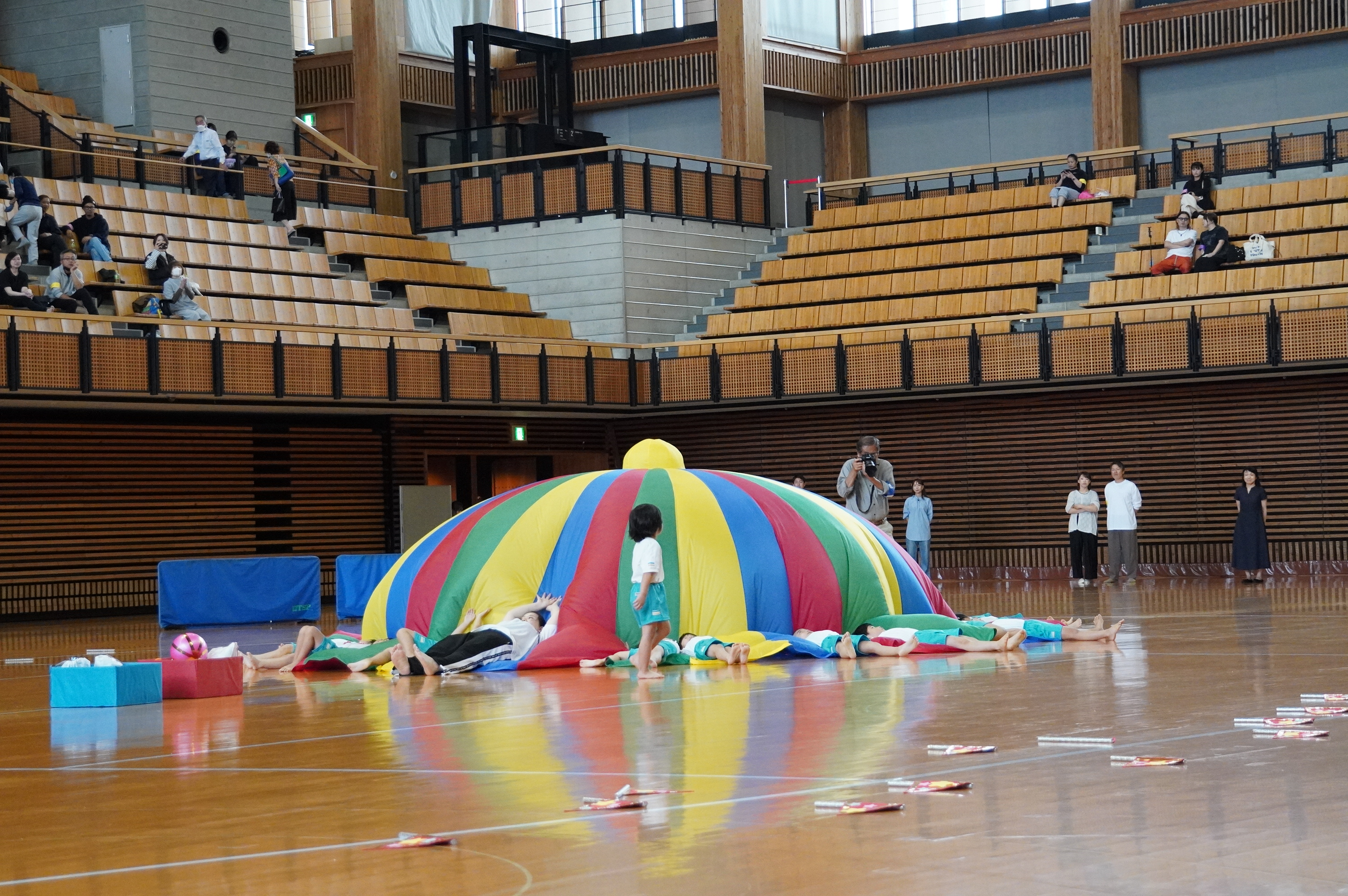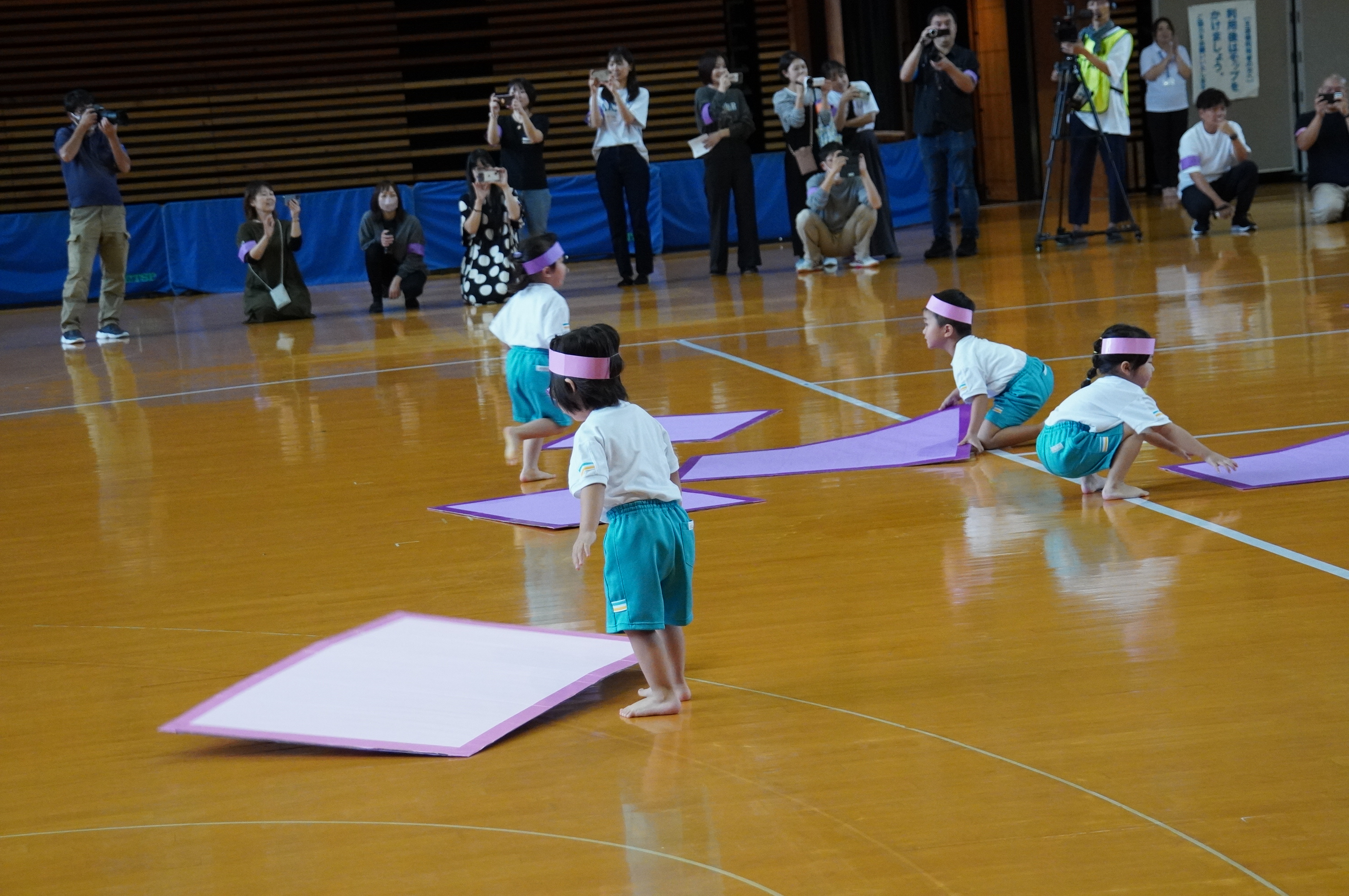 広い武道館でおもいっきり走ったり、踊ったり、みんな頑張りました!