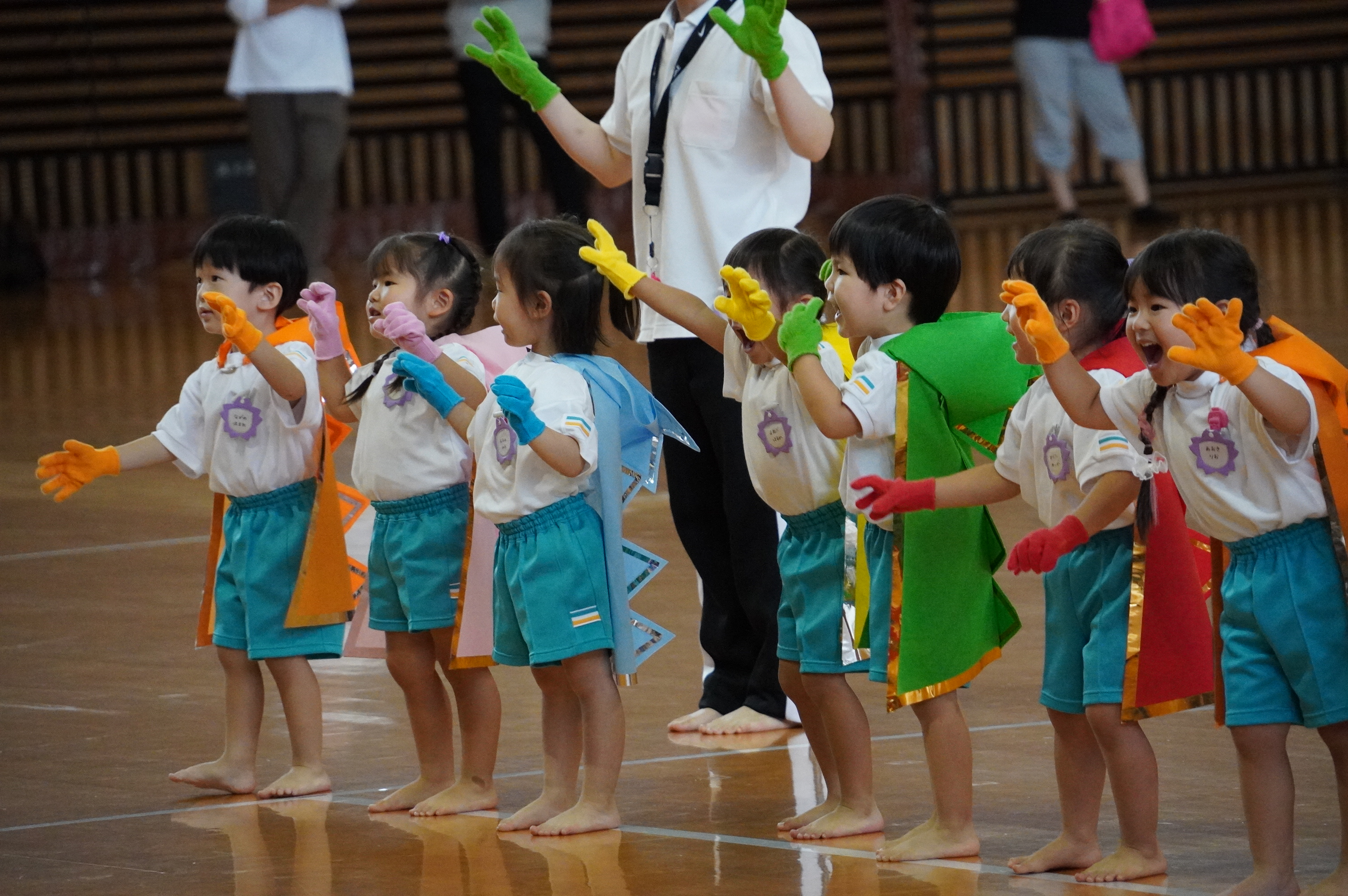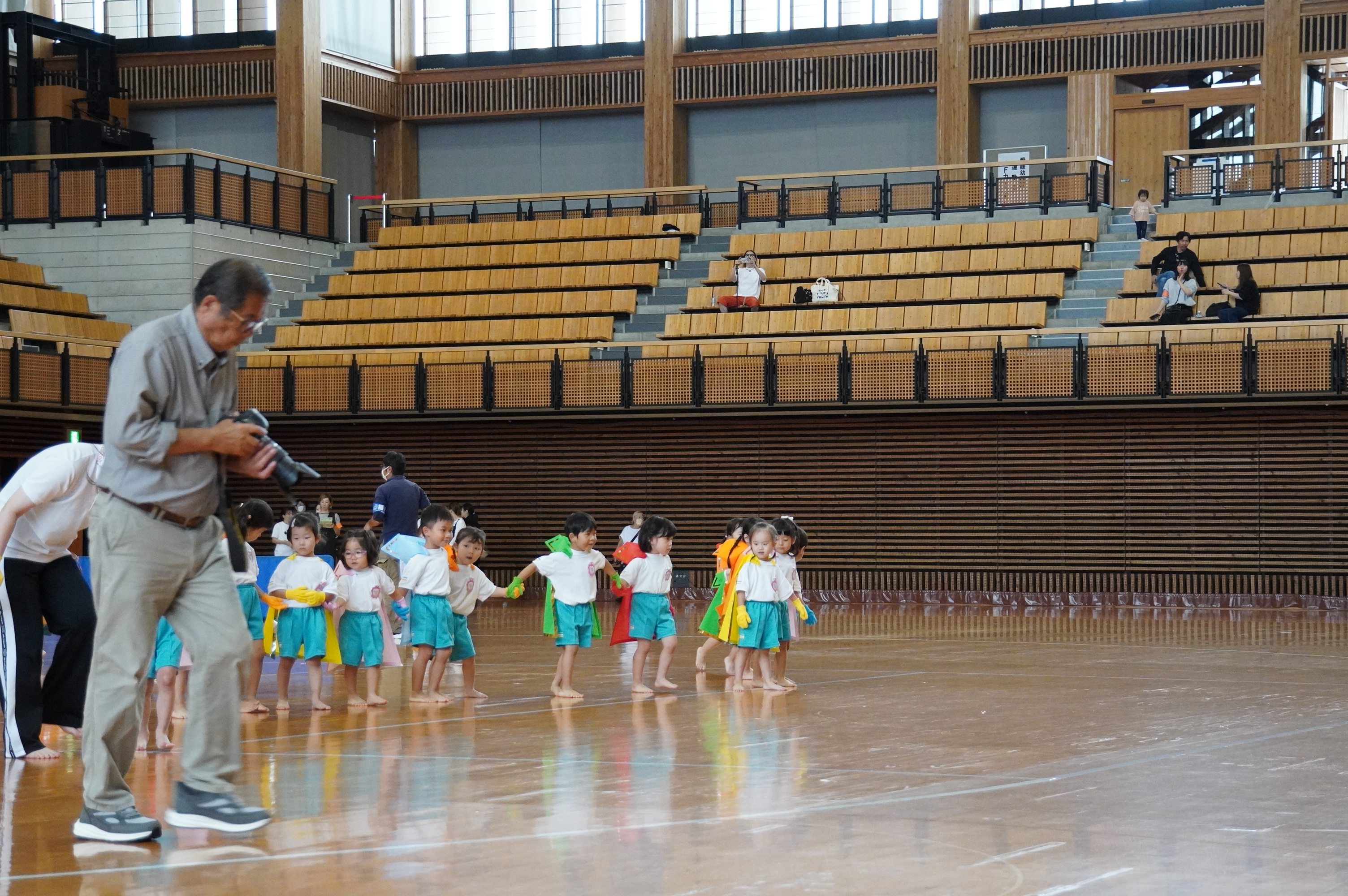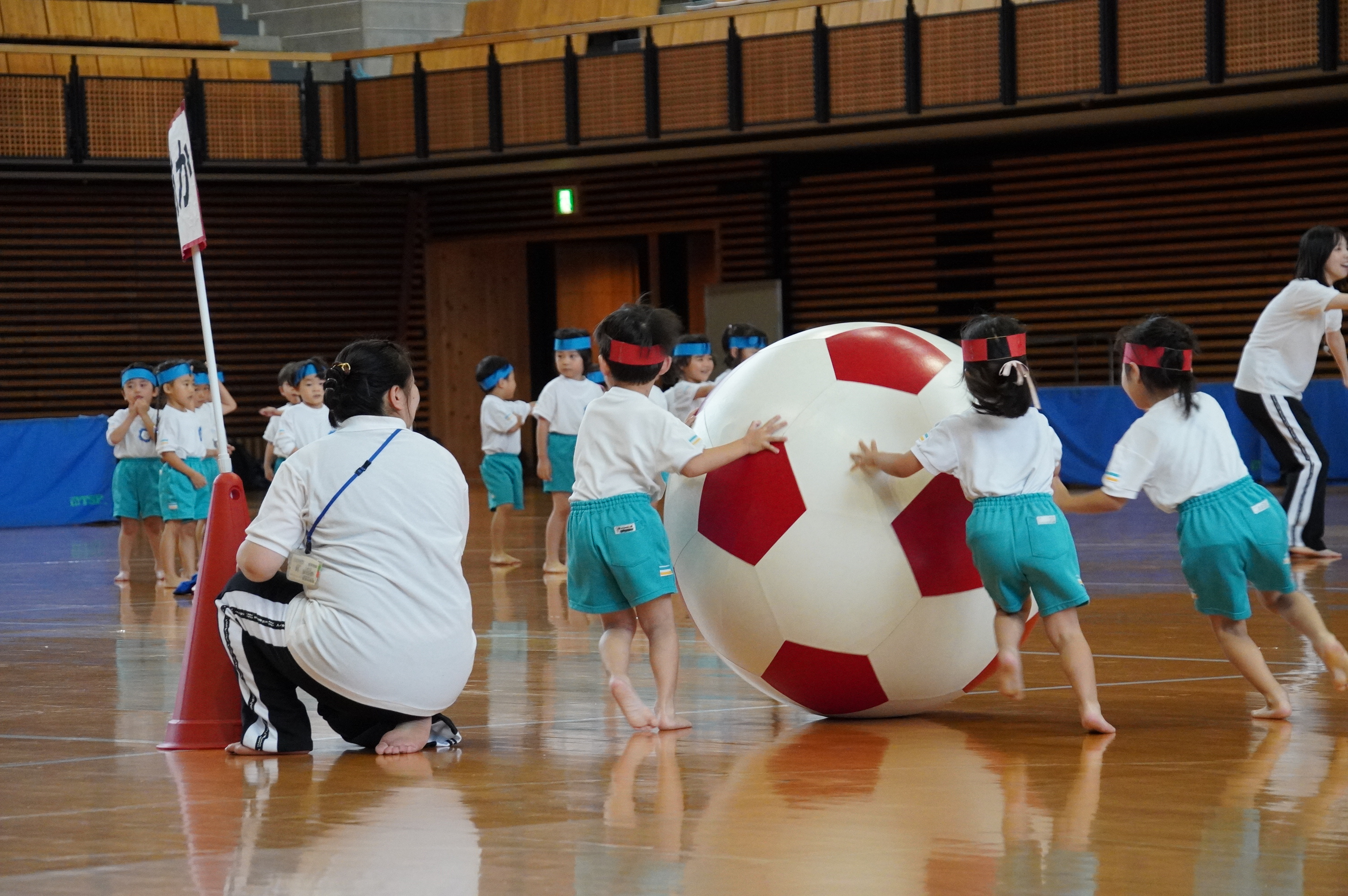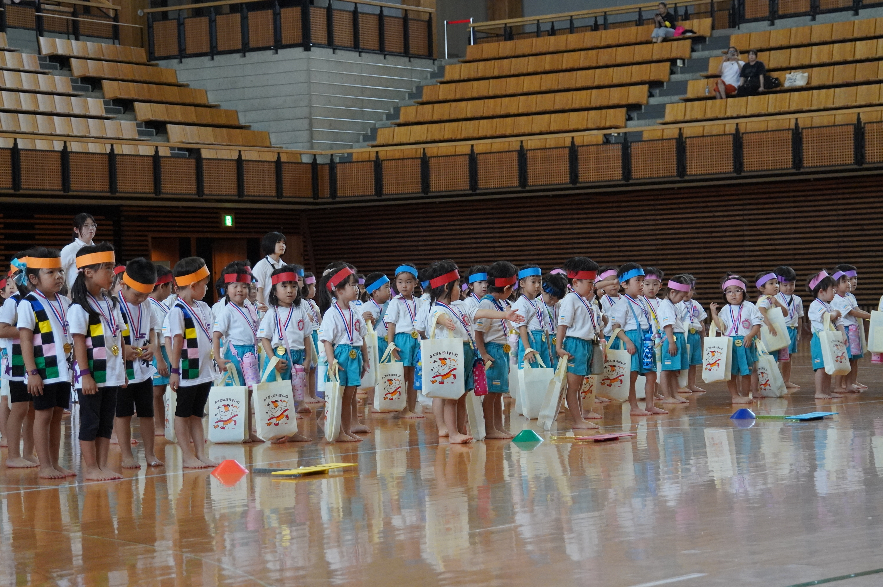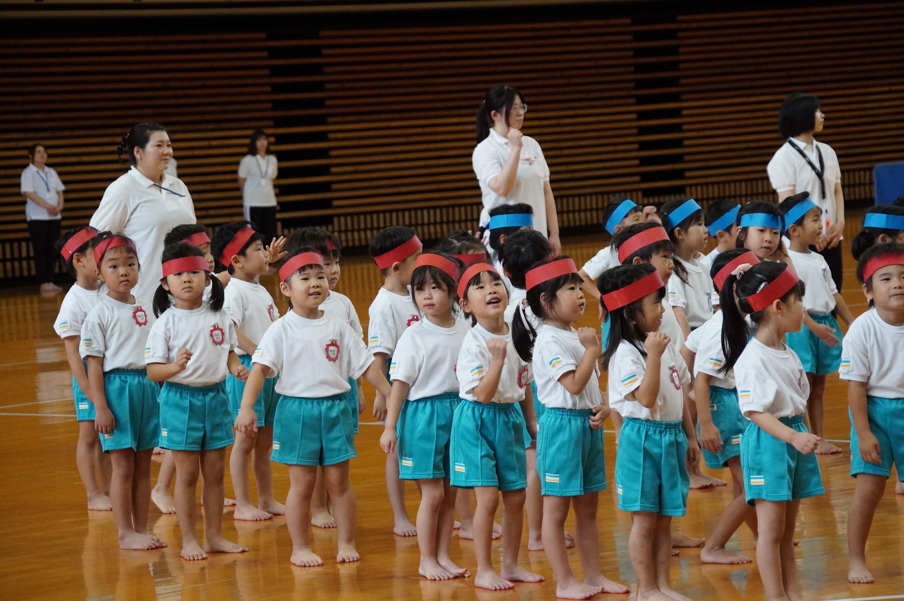 広い武道館でおもいっきり走ったり、踊ったり、みんな頑張りました!