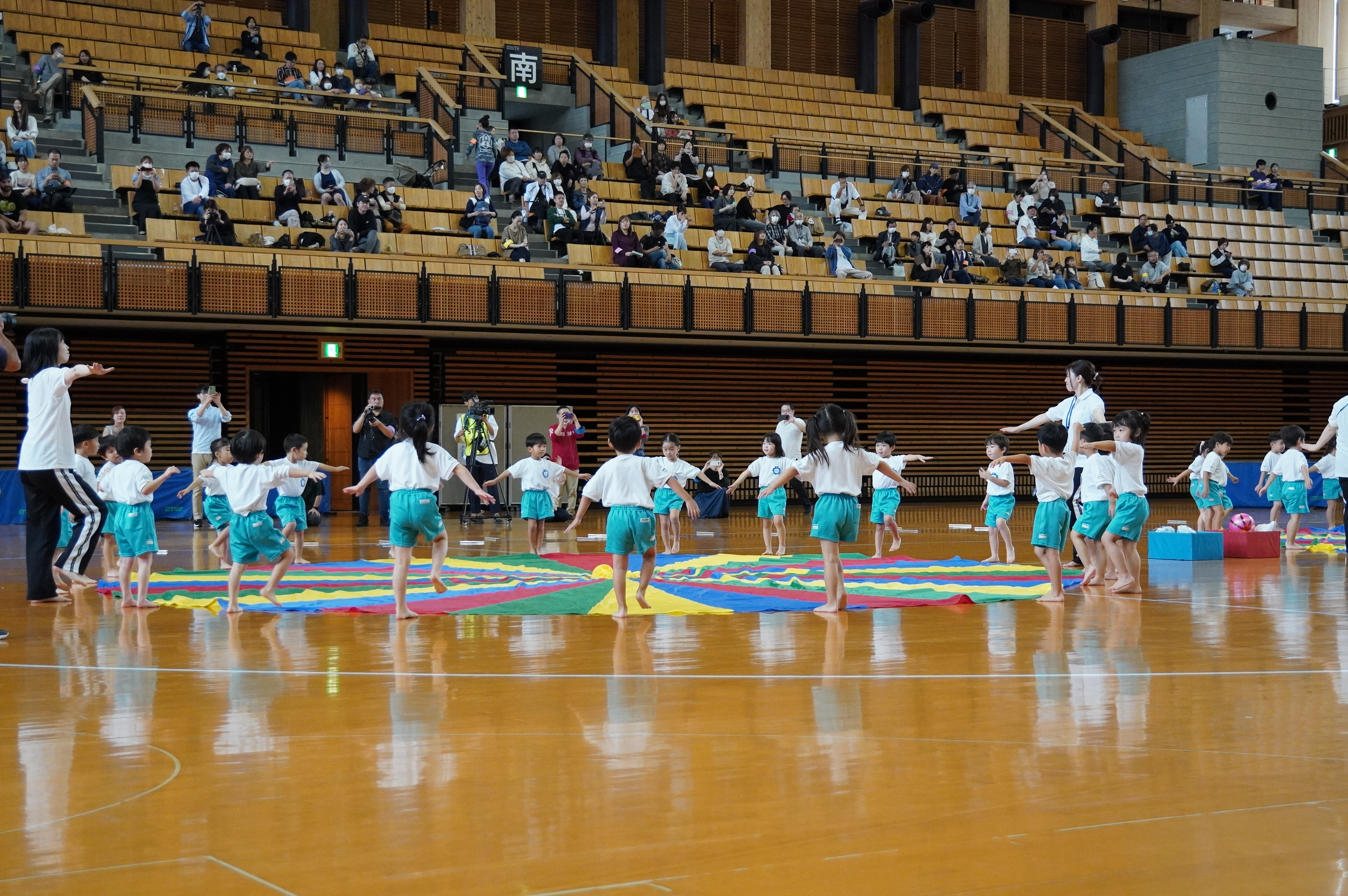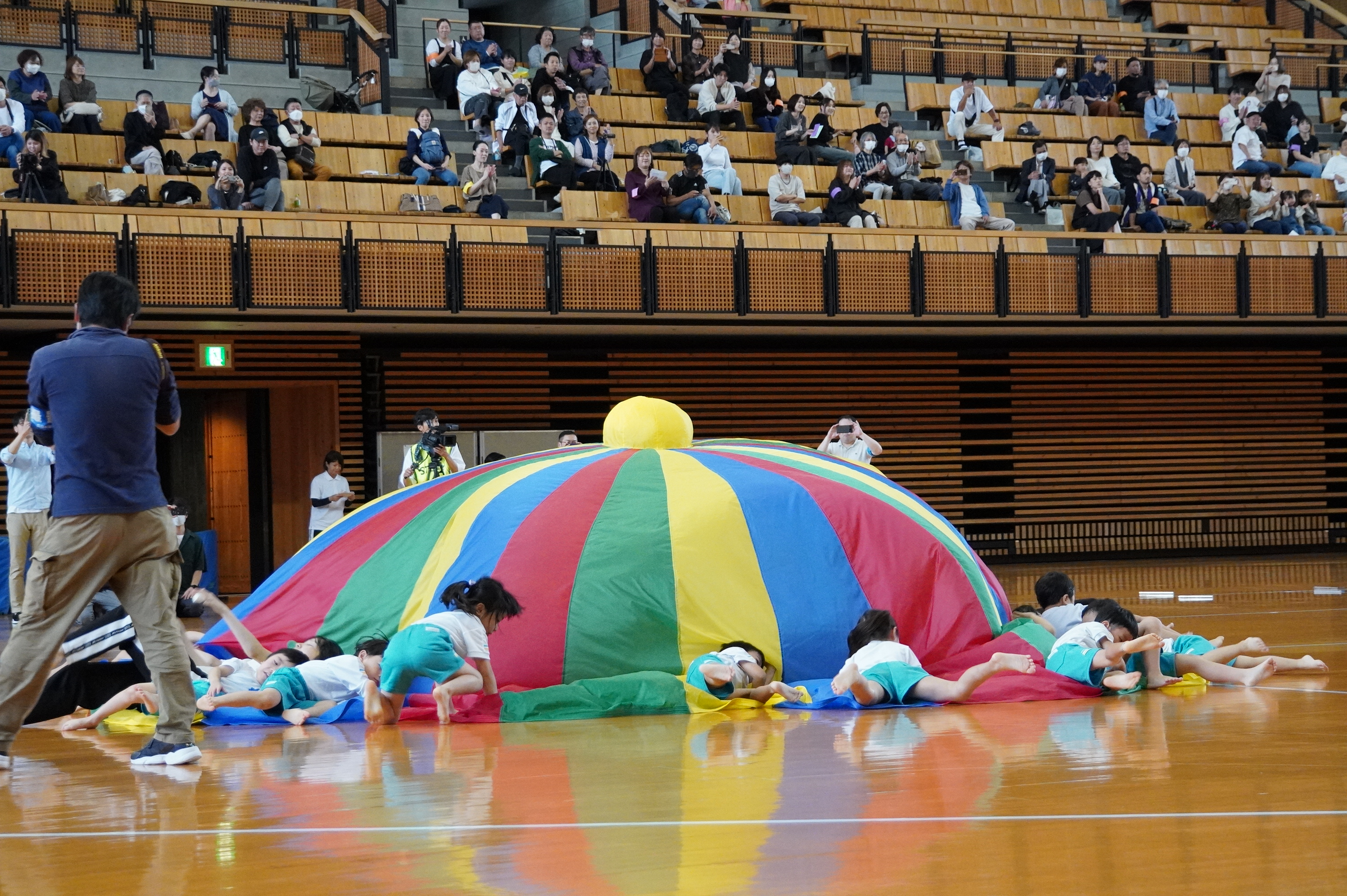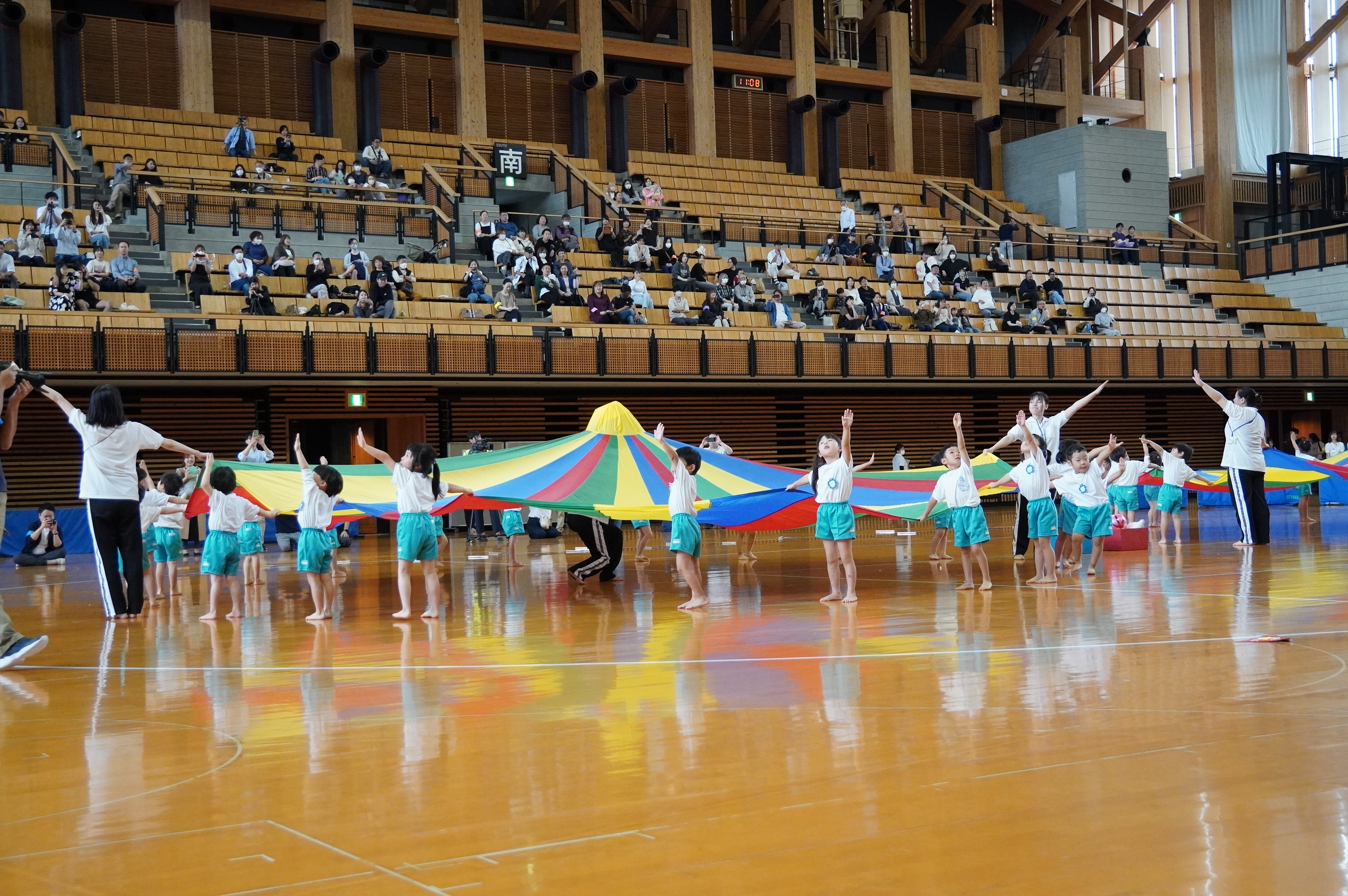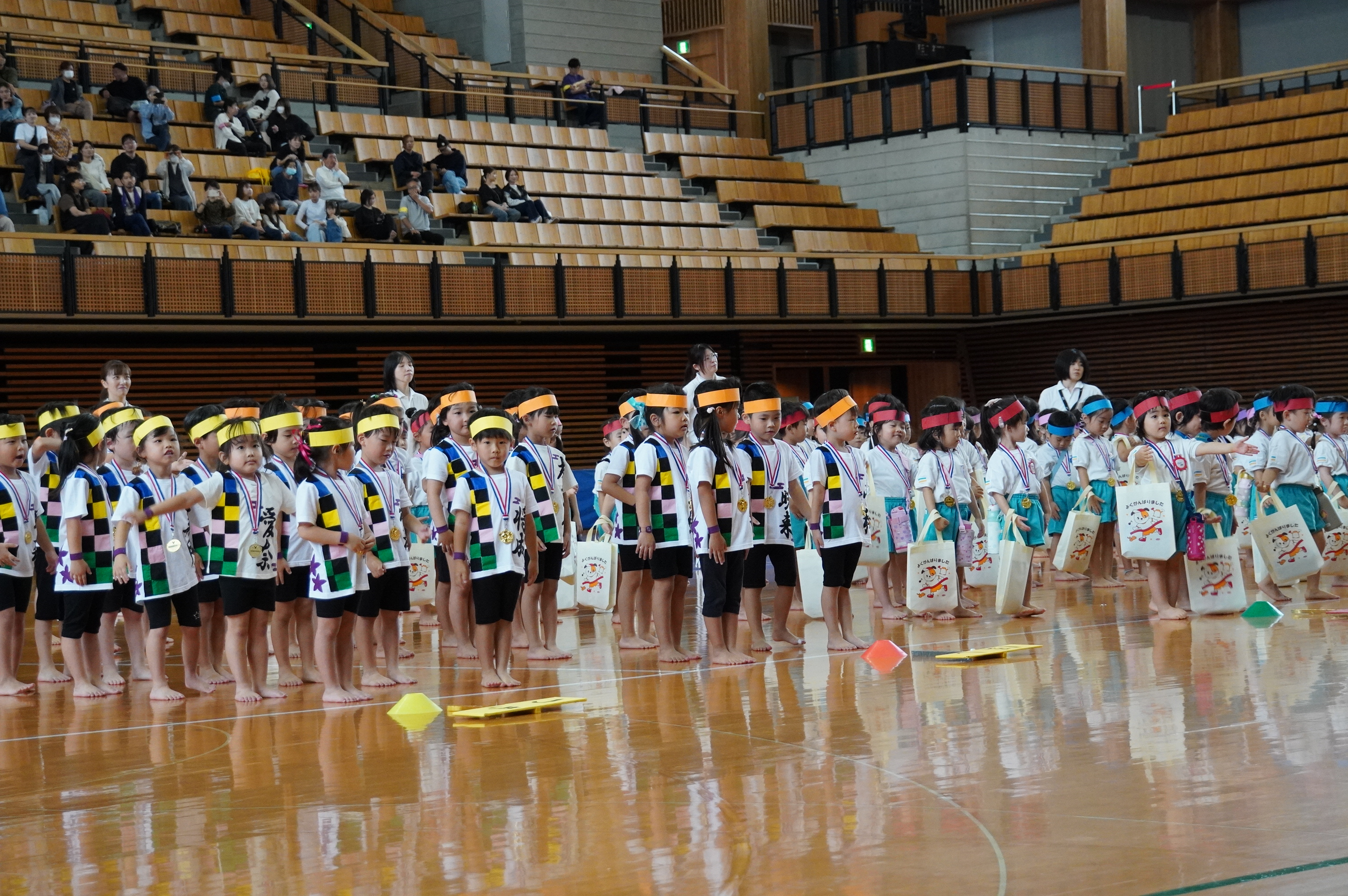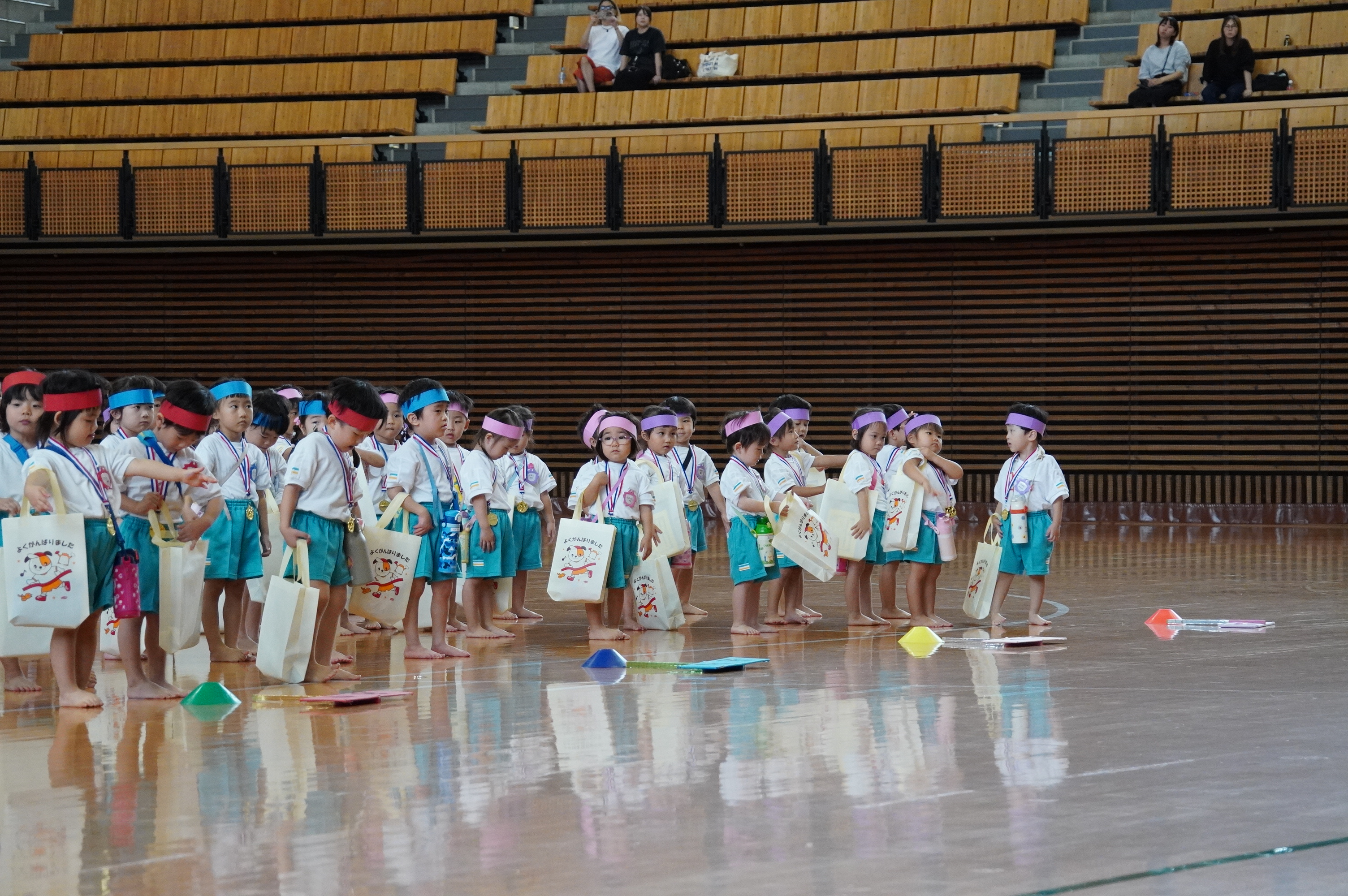 広い武道館でおもいっきり走ったり、踊ったり、みんな頑張りました!