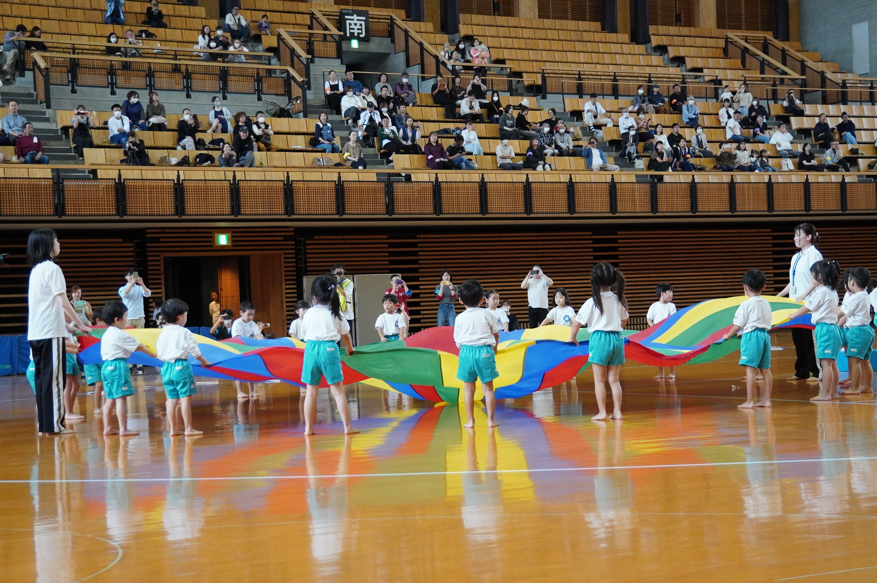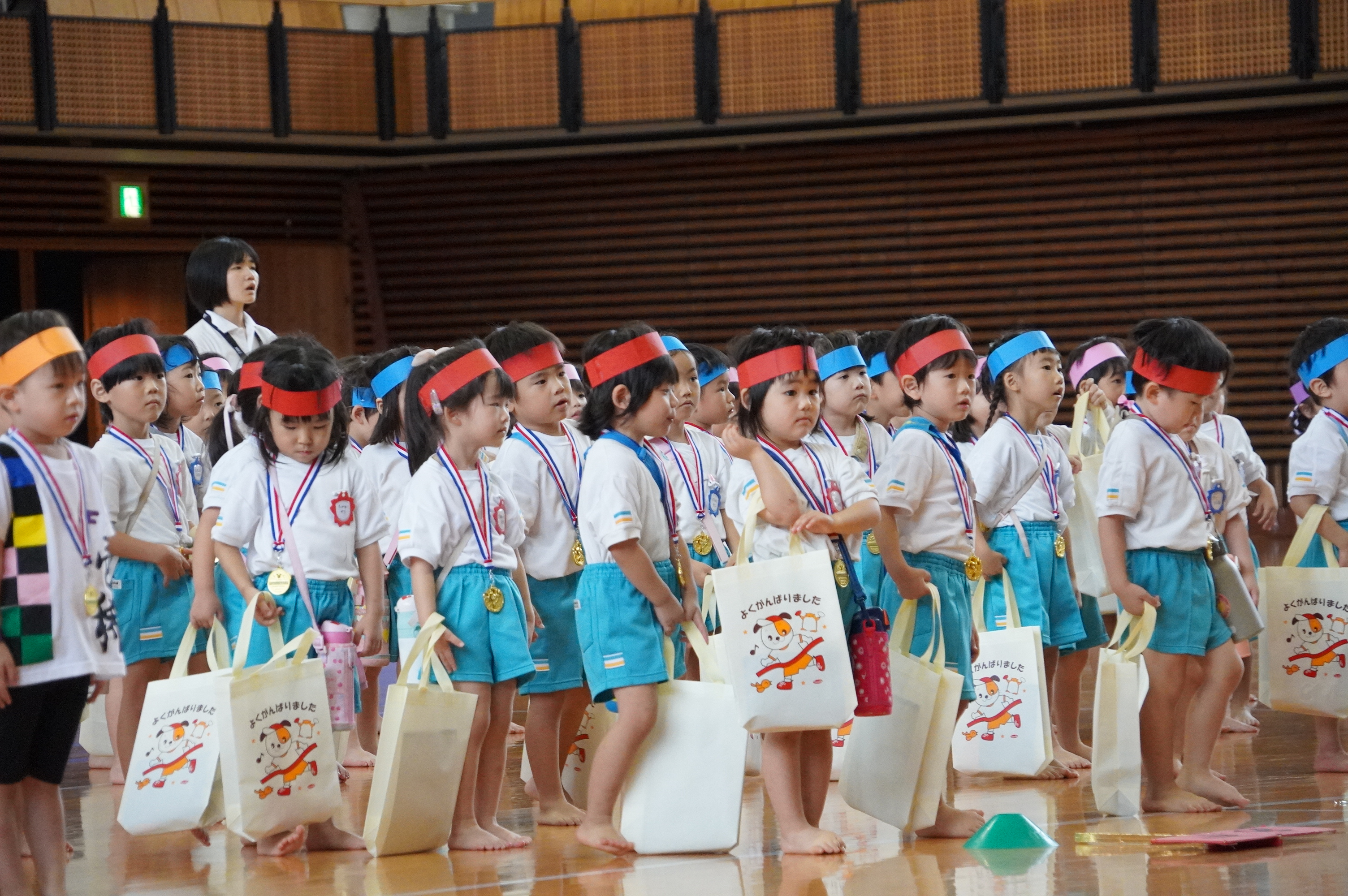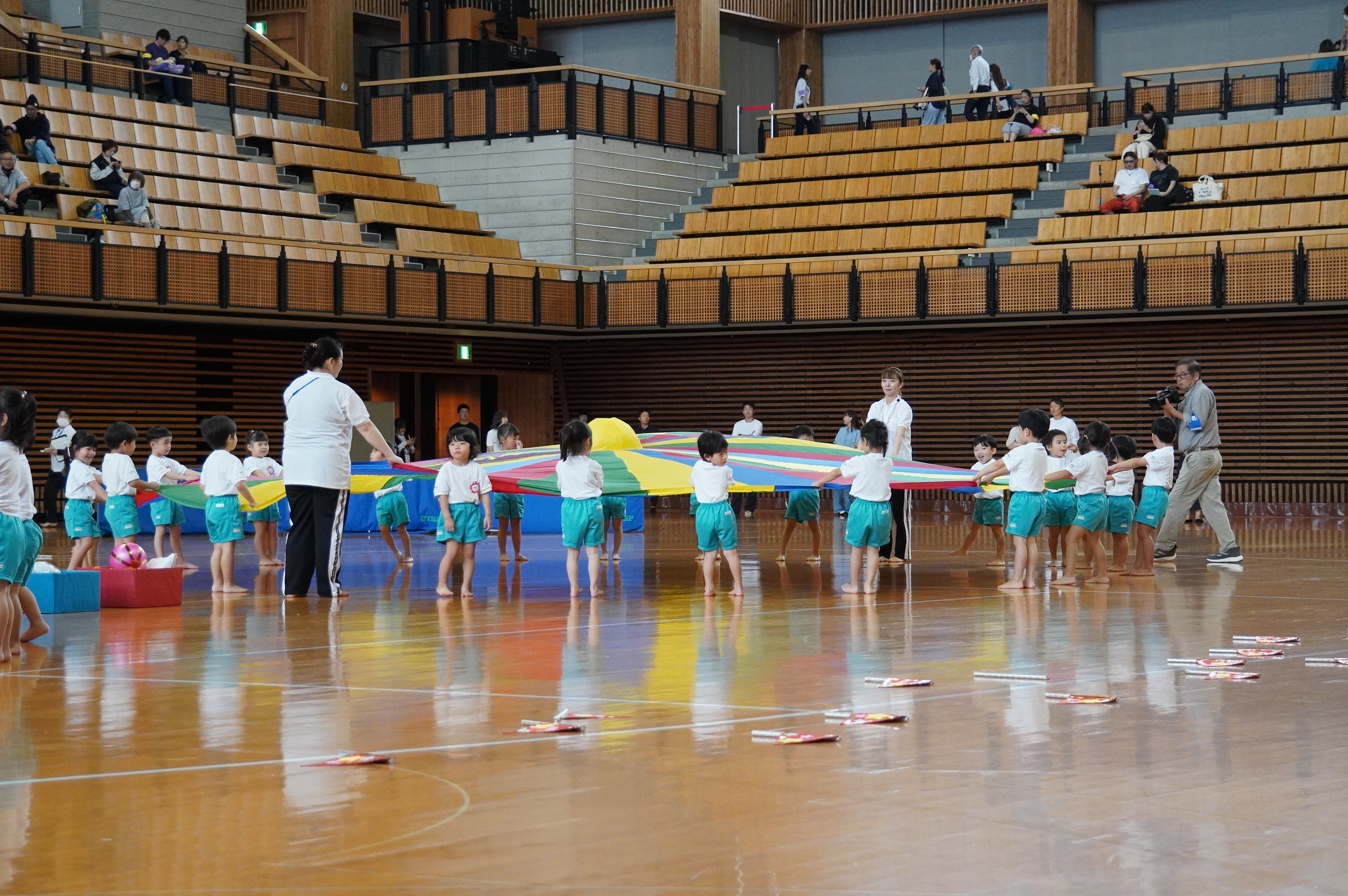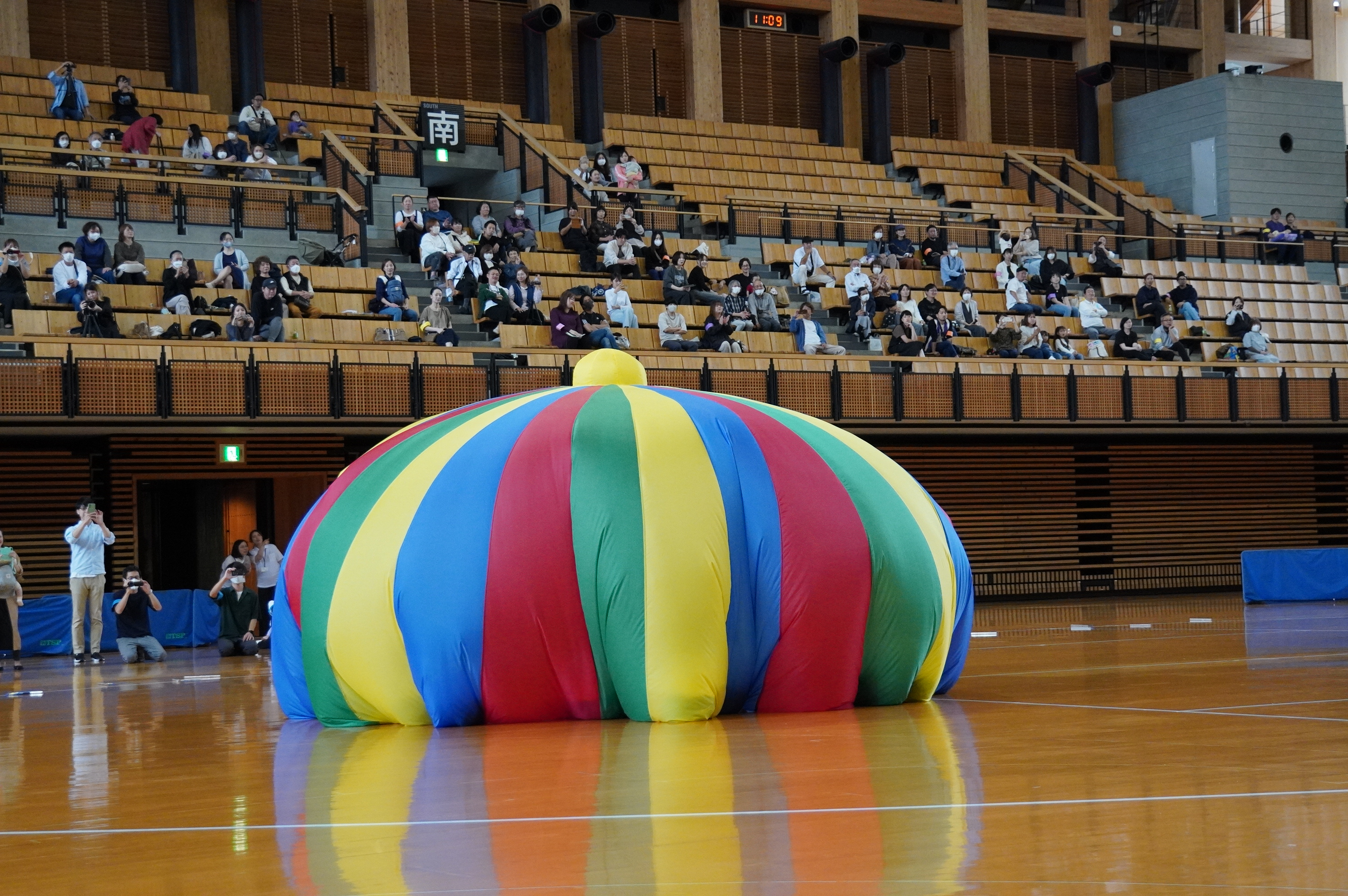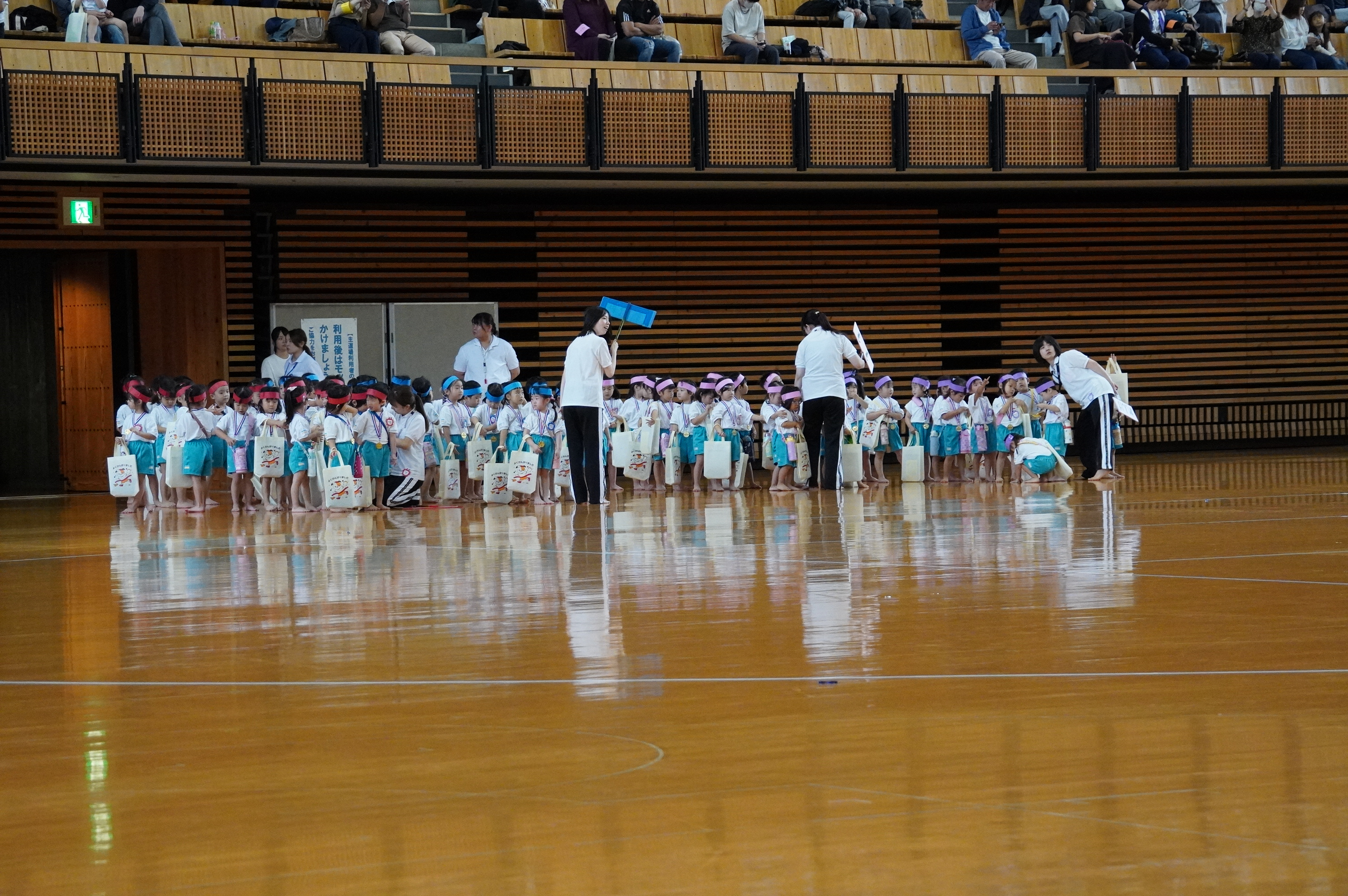 広い武道館でおもいっきり走ったり、踊ったり、みんな頑張りました!