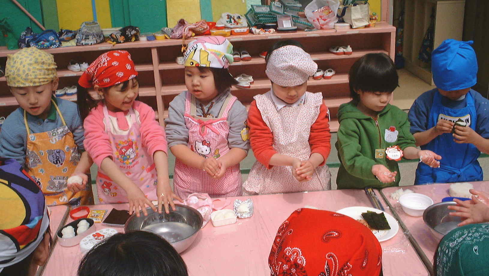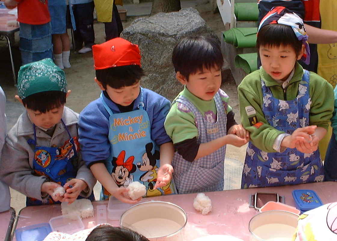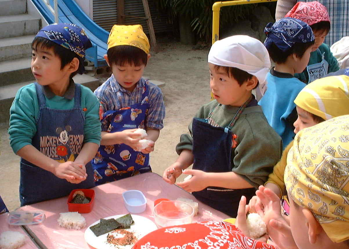 卒園していく年長児のために、みんなでおにぎりを握って、お別れパーティーをしました