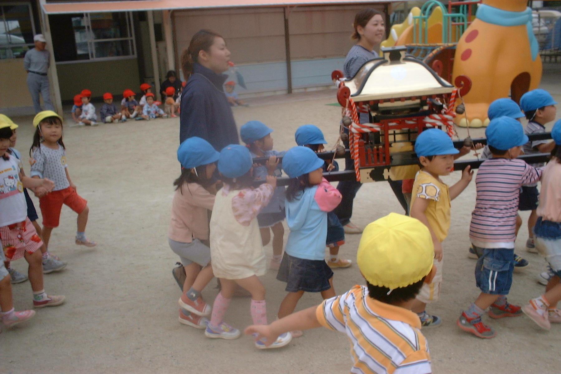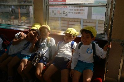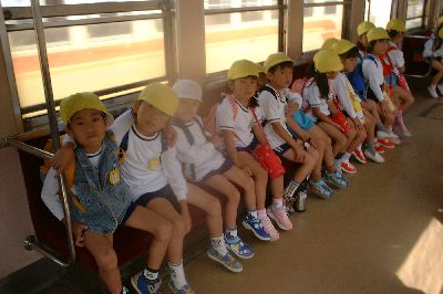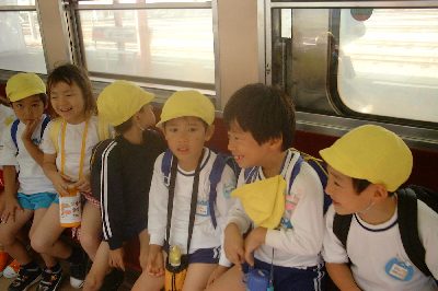 園内でみこしをかついだり、電車に乗って園外に遊びにいったり.... もう社会にでても大丈夫?