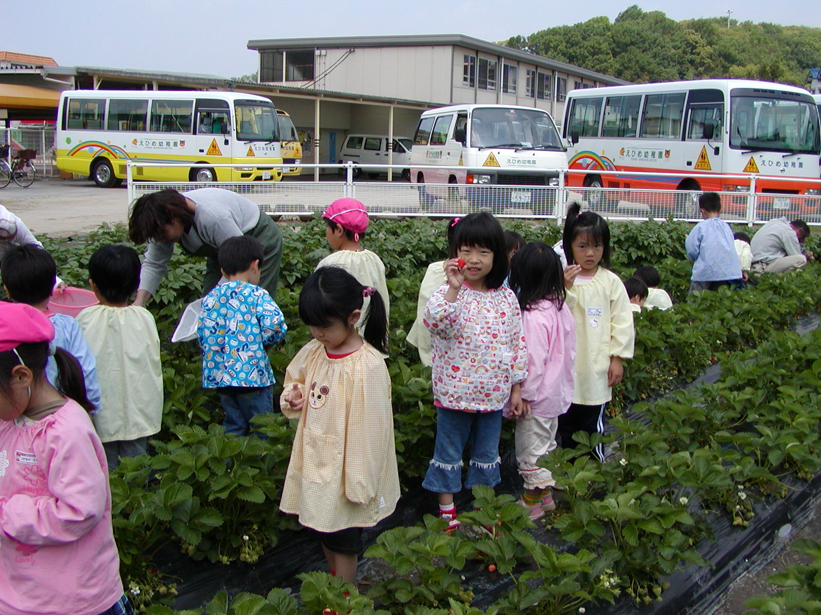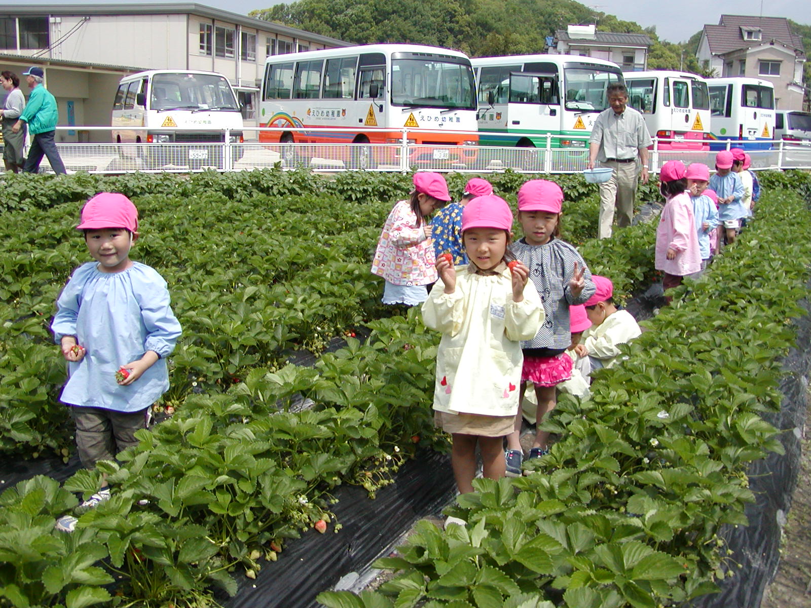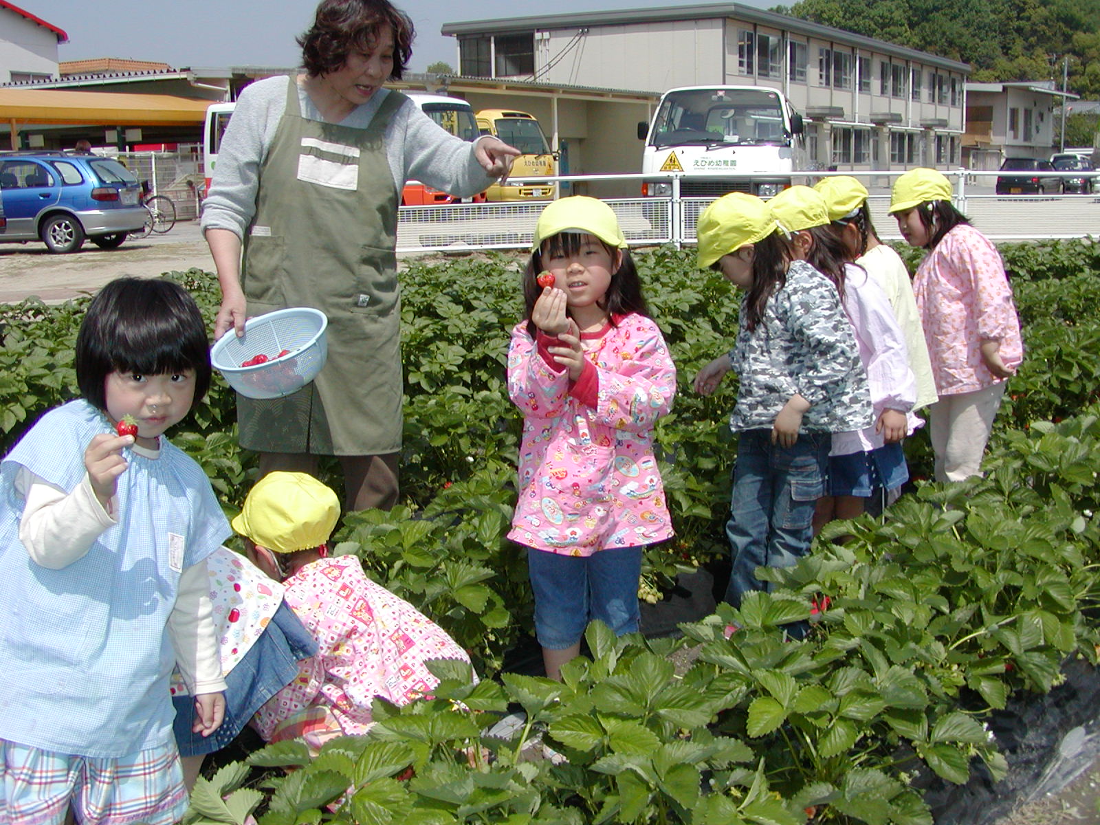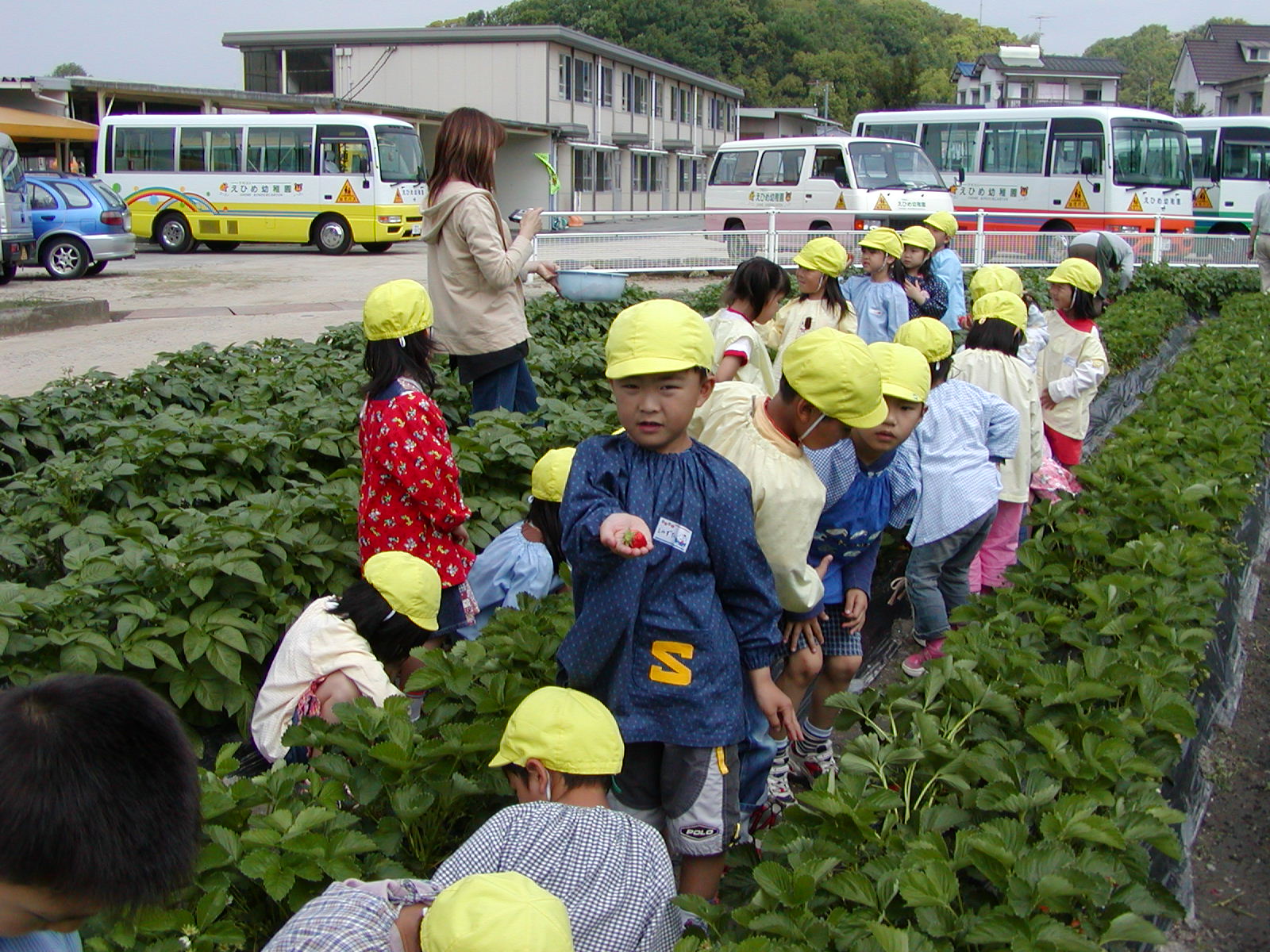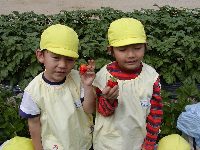 イチゴ摘み(その1) (愛媛星岡幼稚園)