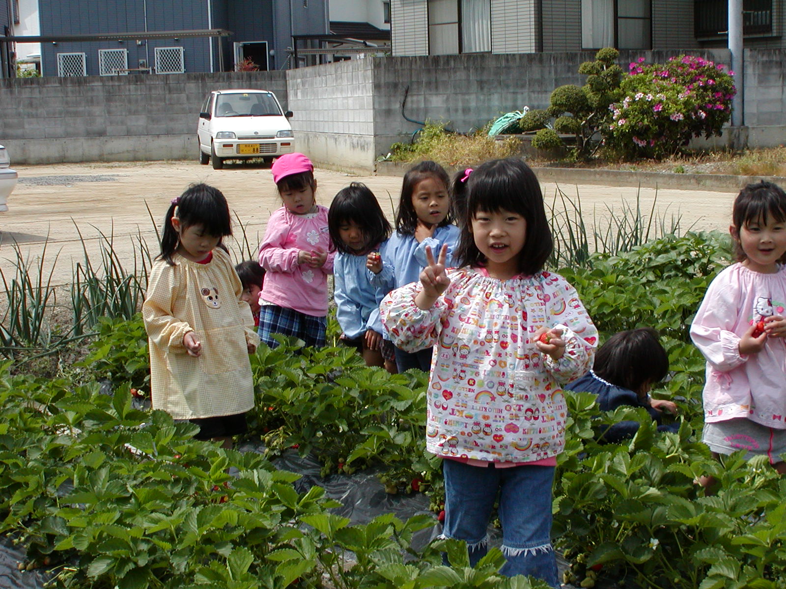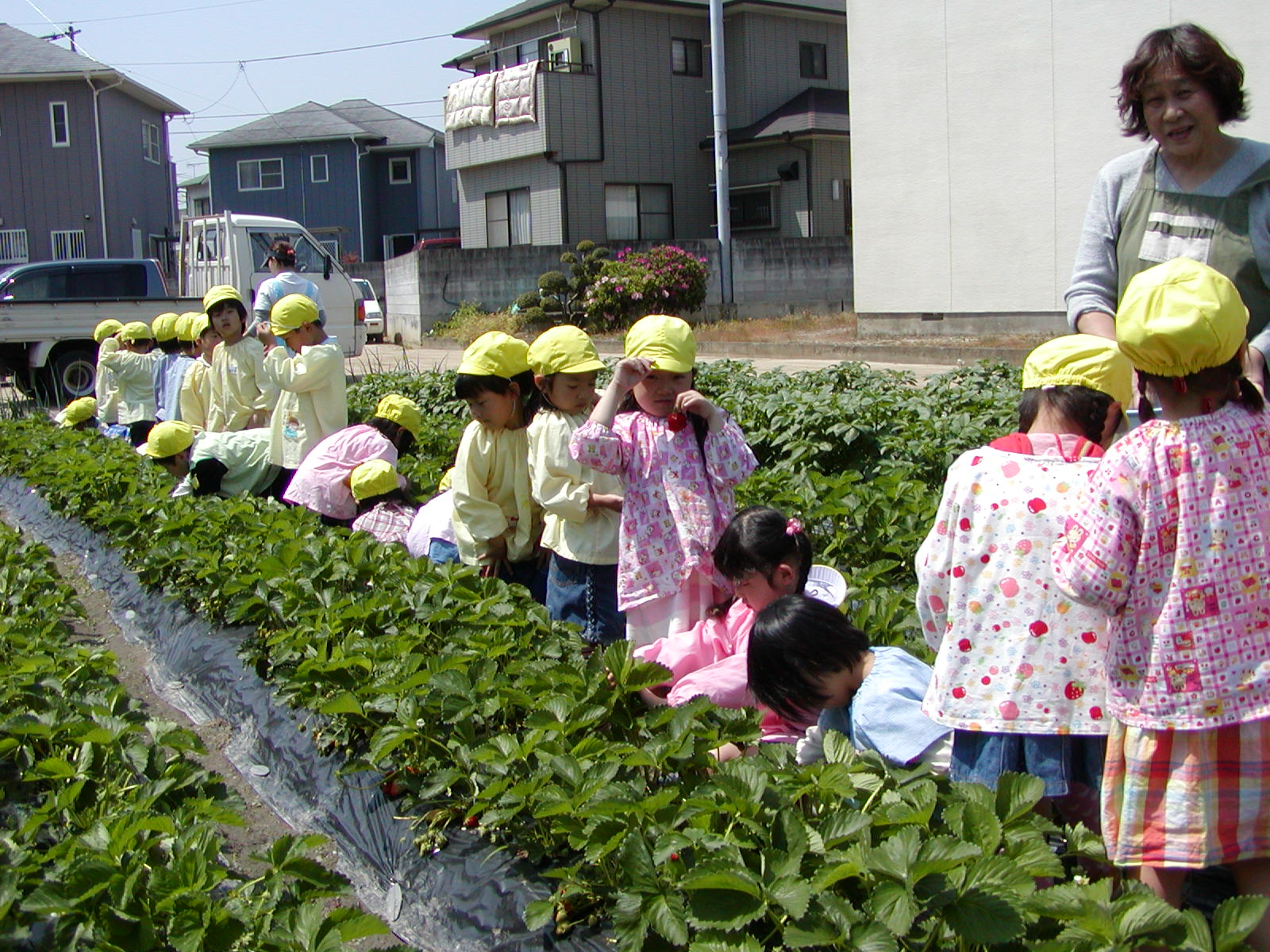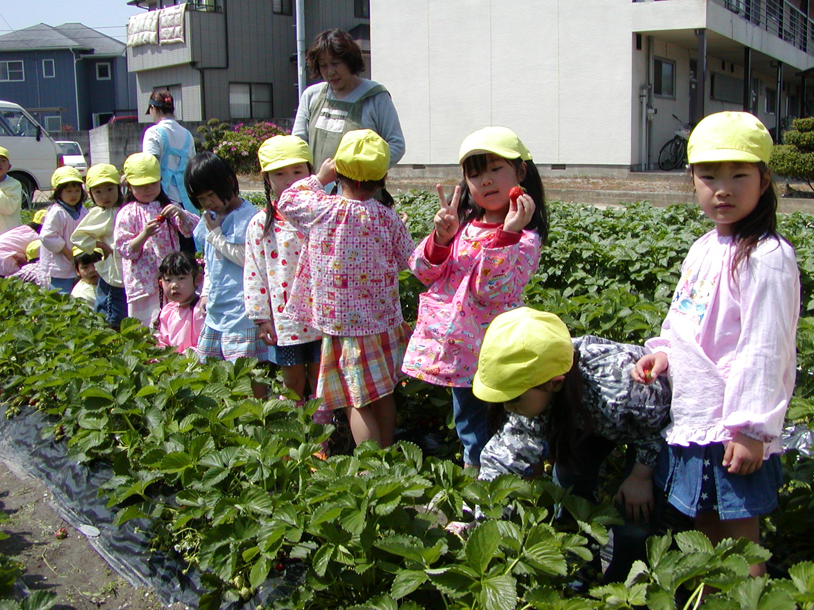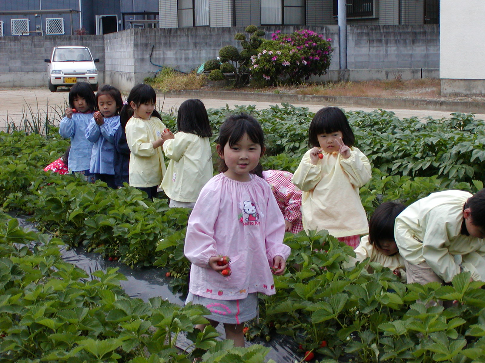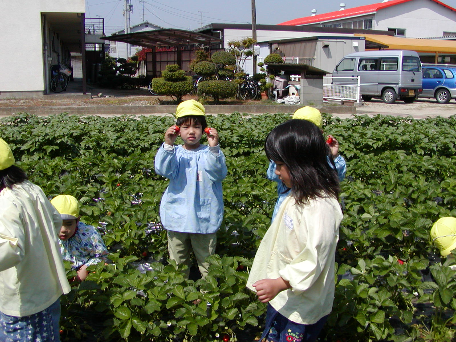 イチゴ摘み(その1) (愛媛星岡幼稚園)
