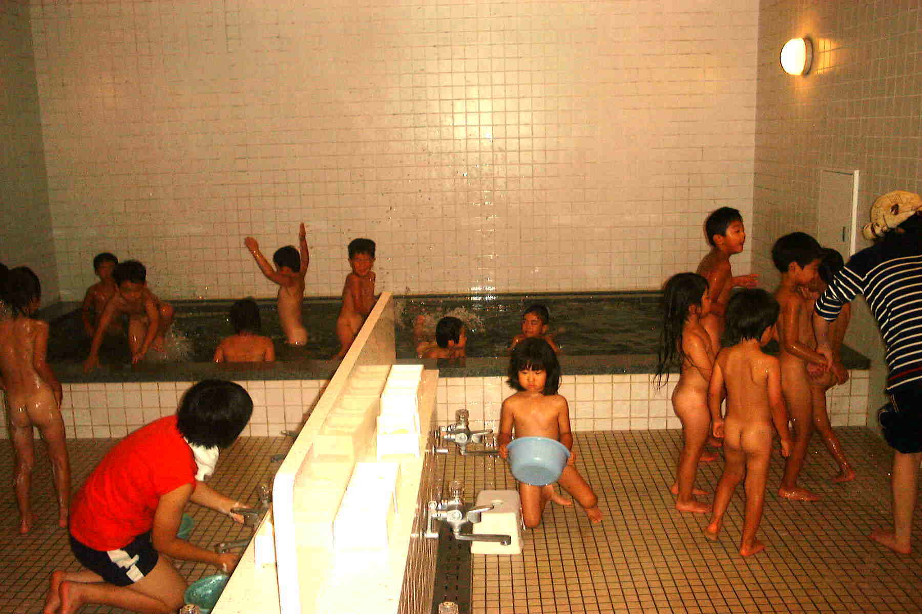 良く汗ををかいたので、お風呂が気持ちいい。先生に頭と体を洗ってもらって。逆に先生は汗だくです。