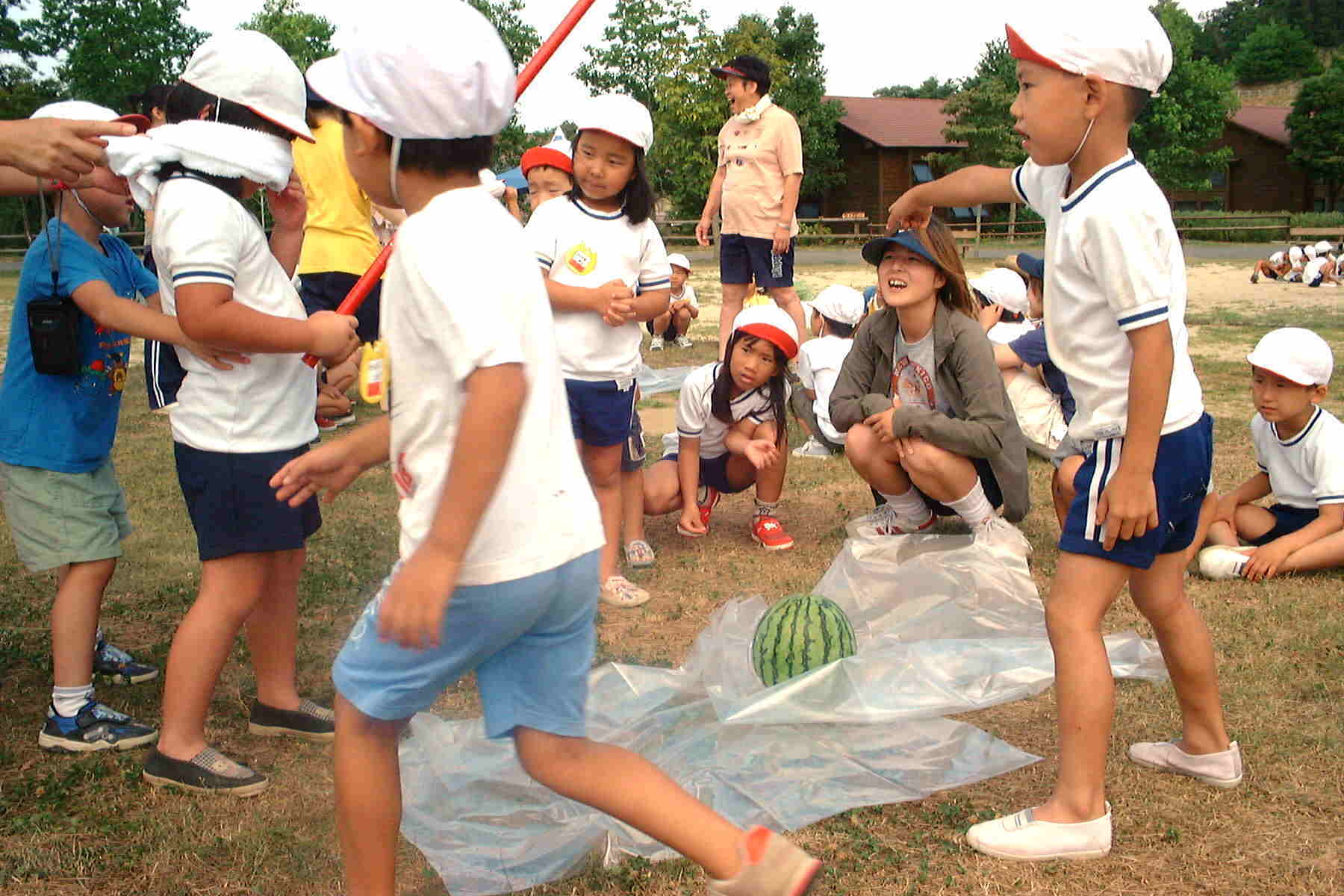 朝食後は、スイカ割りなど楽しみました。