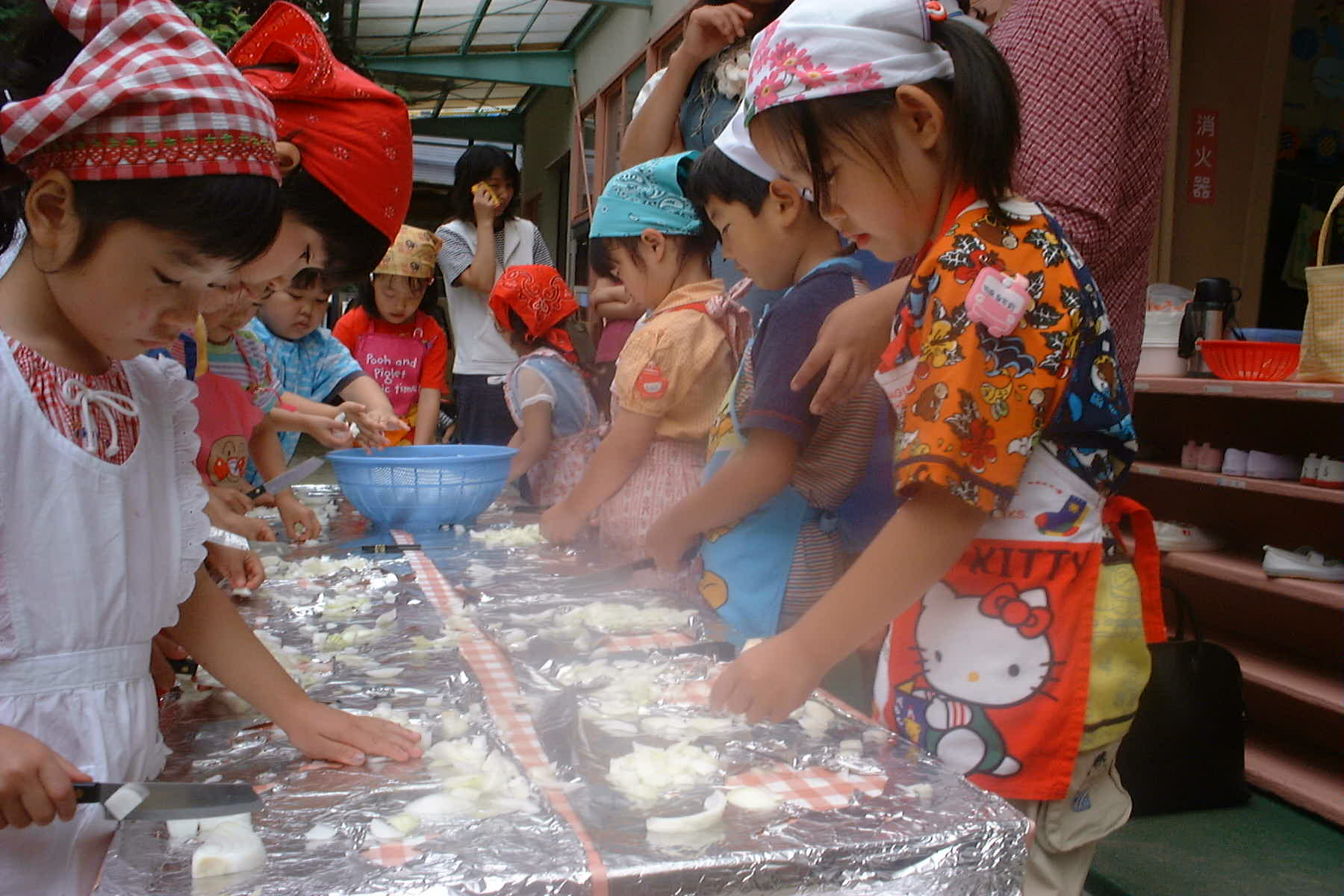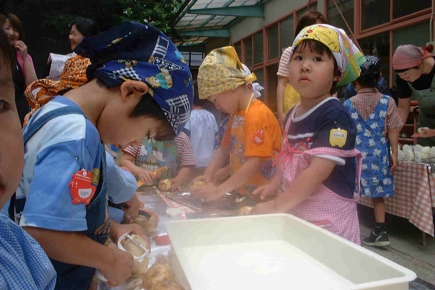有志のおかあさんたちに手伝ってもらって、収穫した野菜を使ったカレー作りをしました。三番町の写真が多くなりましたが、星岡でも同じように作りました。